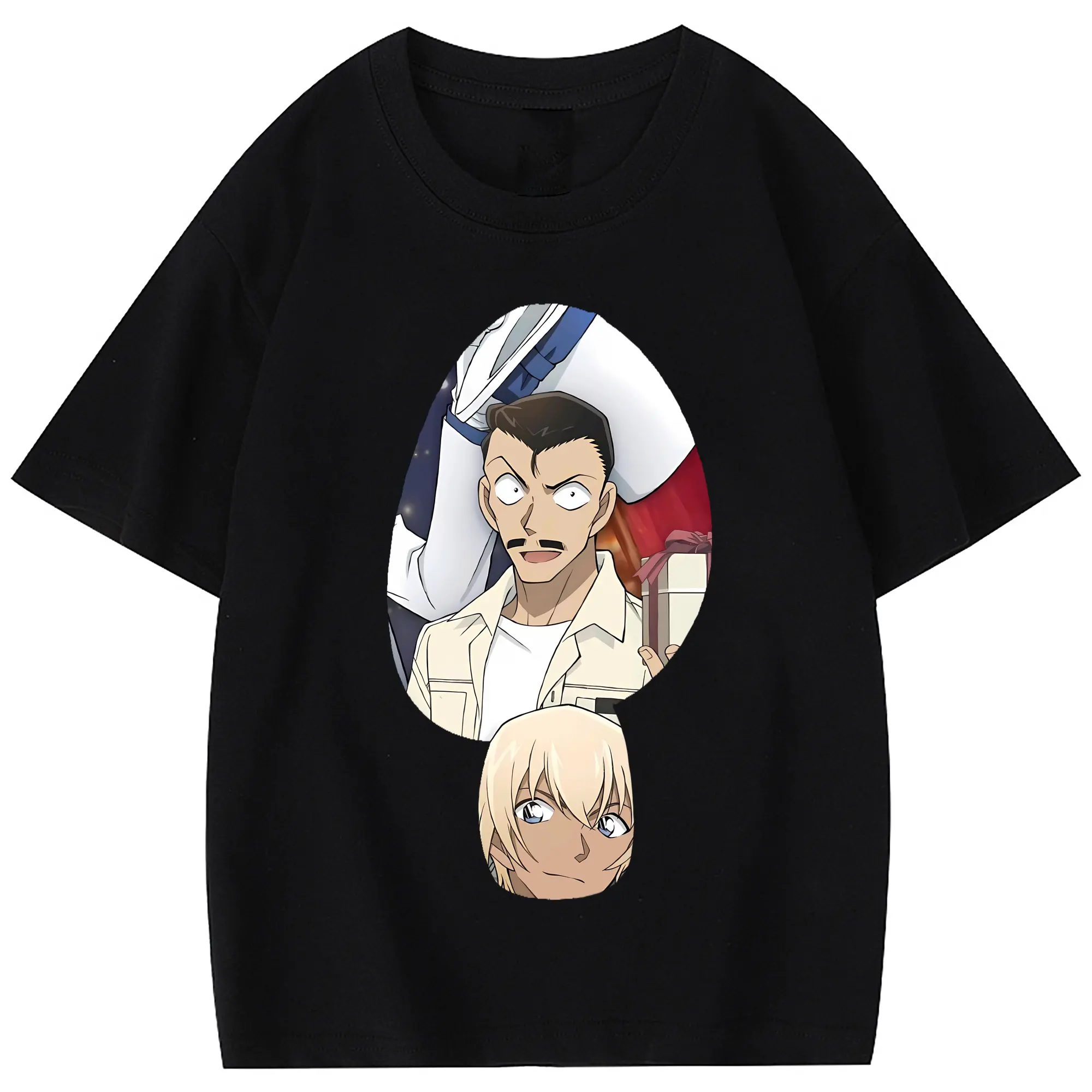 名探偵コナン グッズ 毛利 小五郎 - 綿100% 半袖Tシャツ ・ フロントプリント ・ 快適 通気性 ・ 日常使い 散歩 スポーツ用
