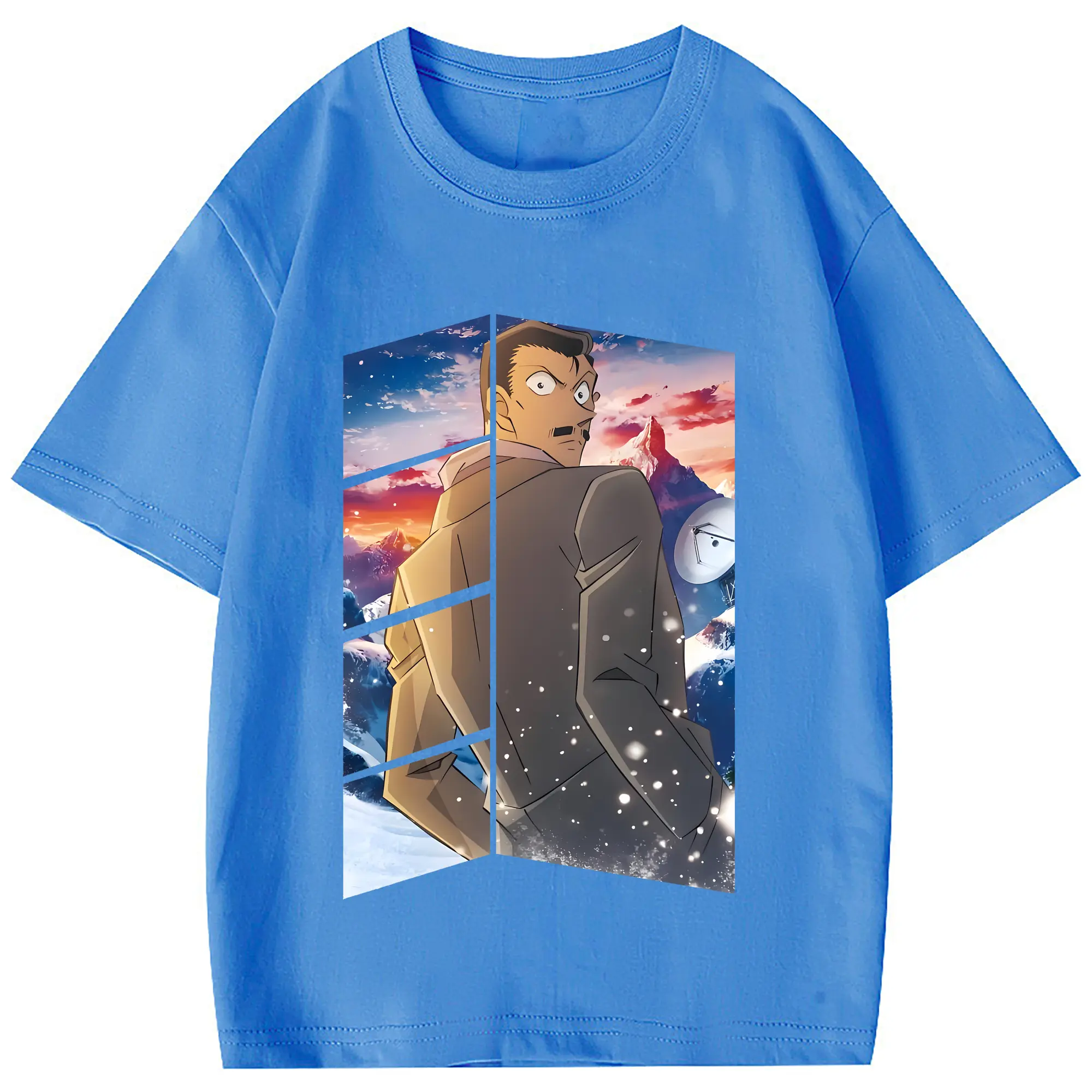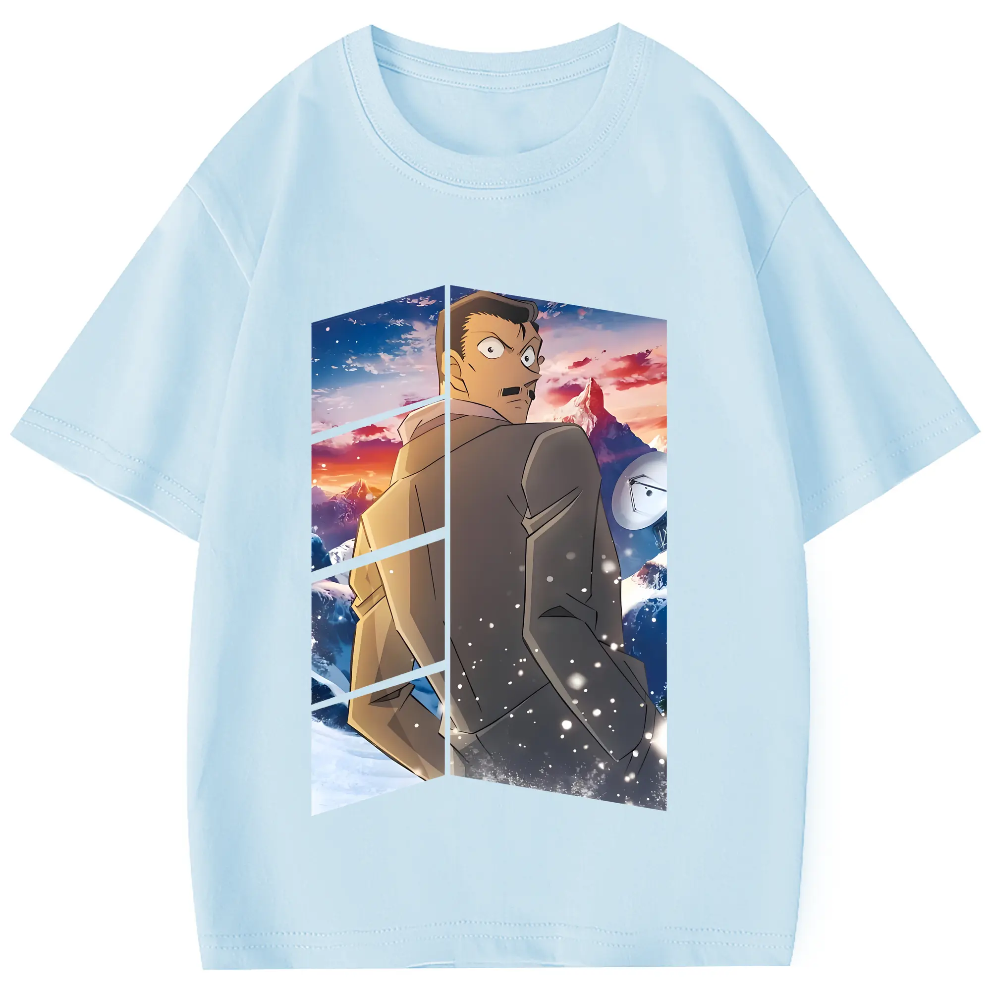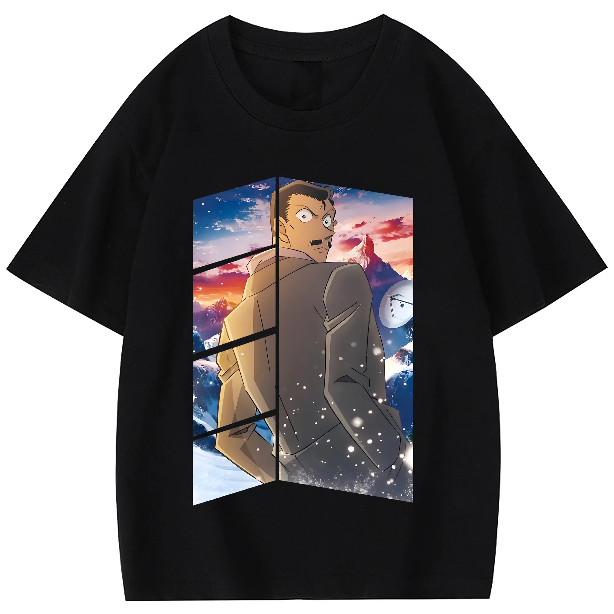 名探偵コナン グッズ 毛利 小五郎 - 綿100% 半袖Tシャツ ・ フロントプリント ・ 快適 通気性 ・ 日常使い 散歩 スポーツ用