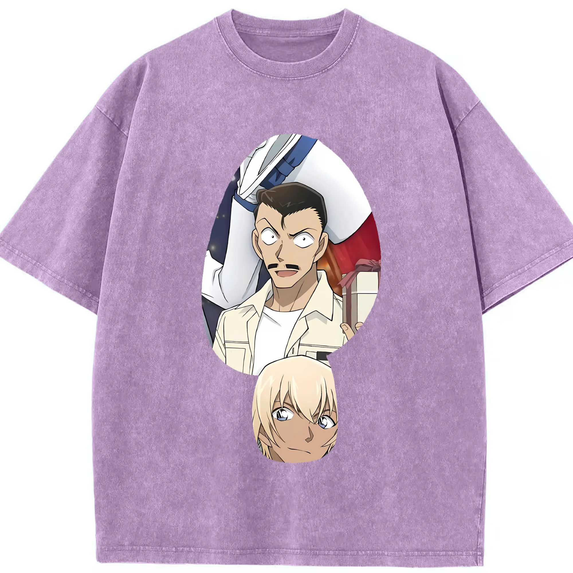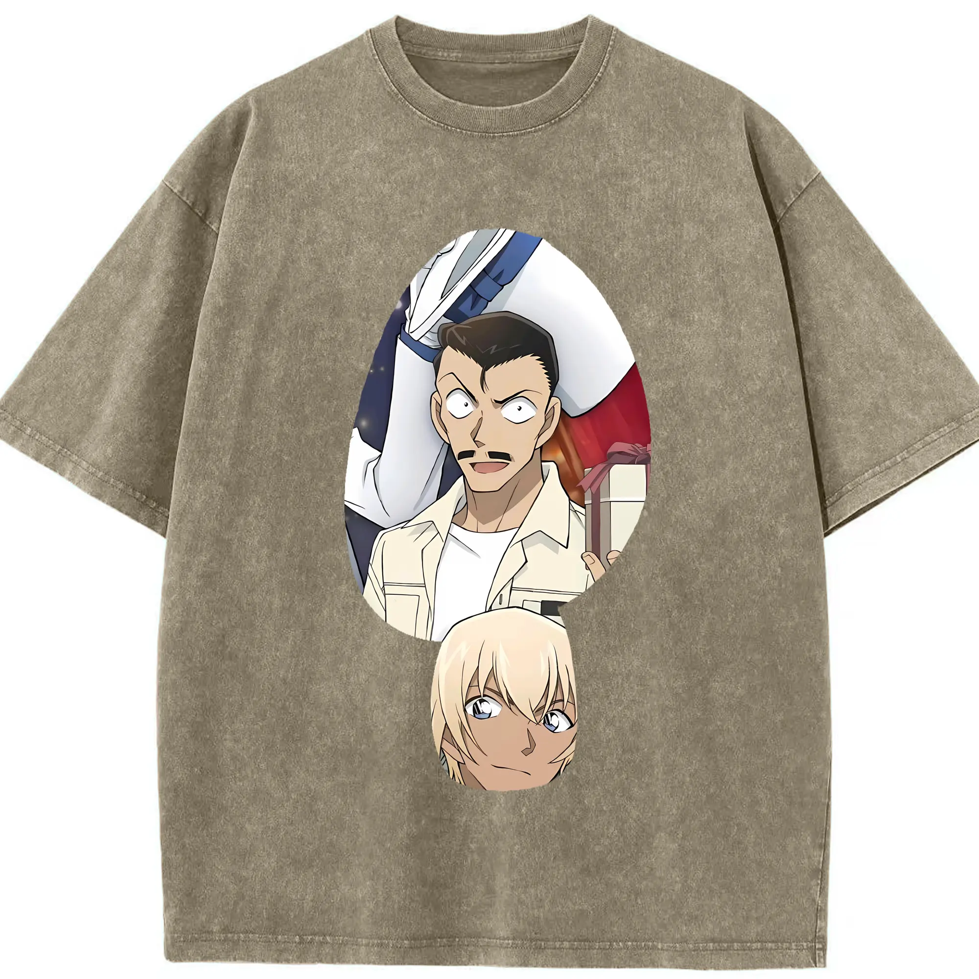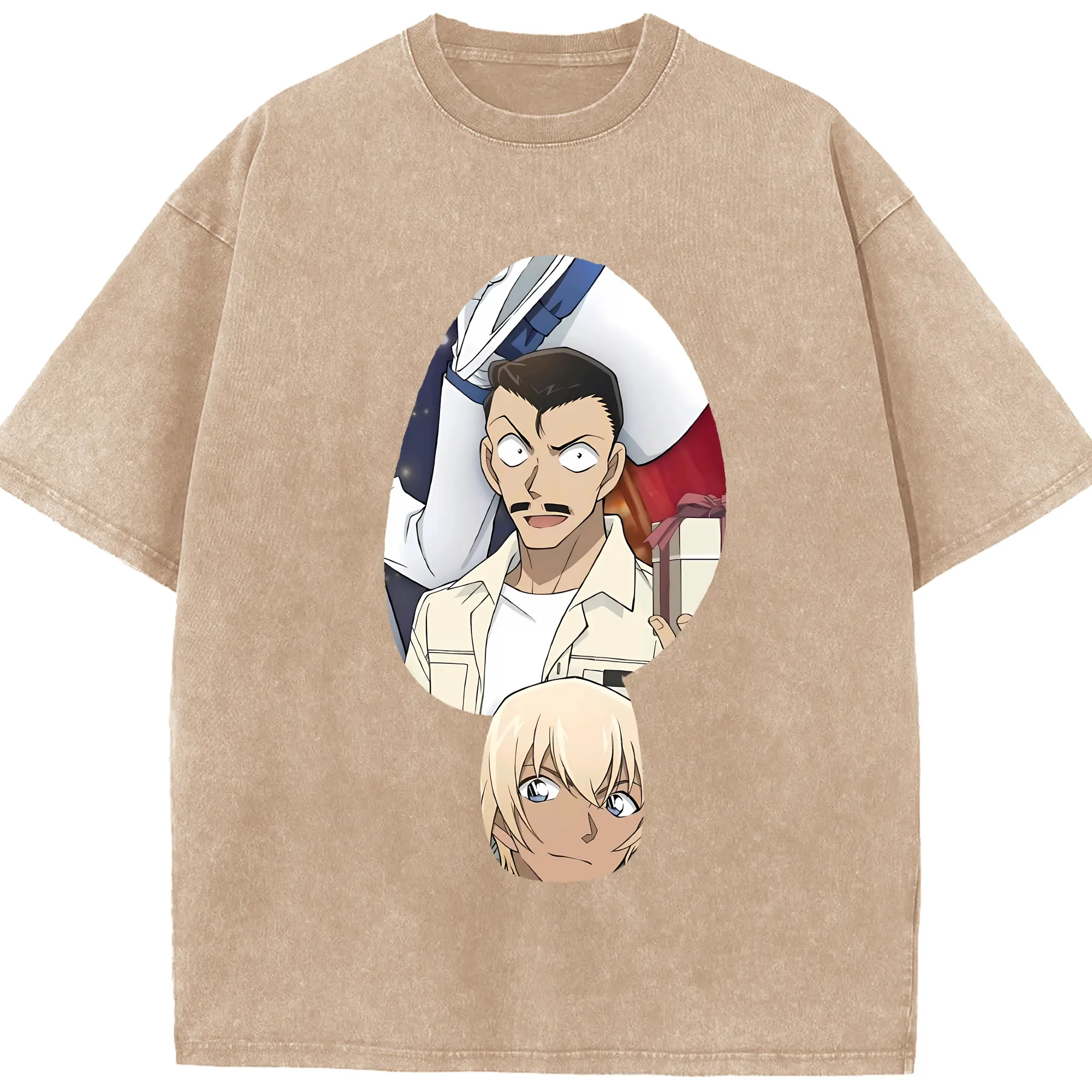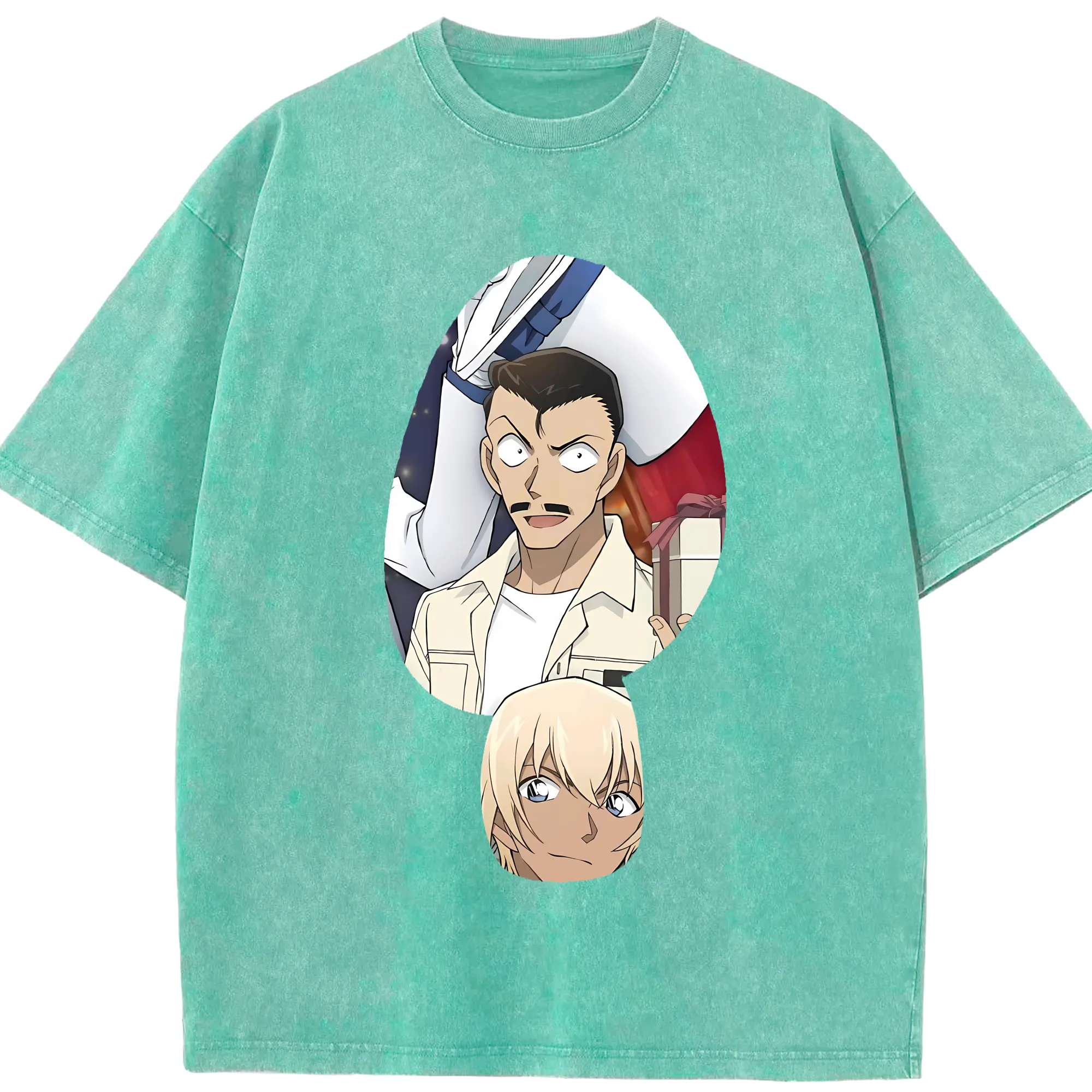 名探偵コナン グッズ 毛利 小五郎 - 綿100% ヴィンテージ風 半袖Tシャツ ・ 背面プリント ・ 柔らか肌触り ・ 通気性 快適 ・ スポーツ カジュアル 外出用