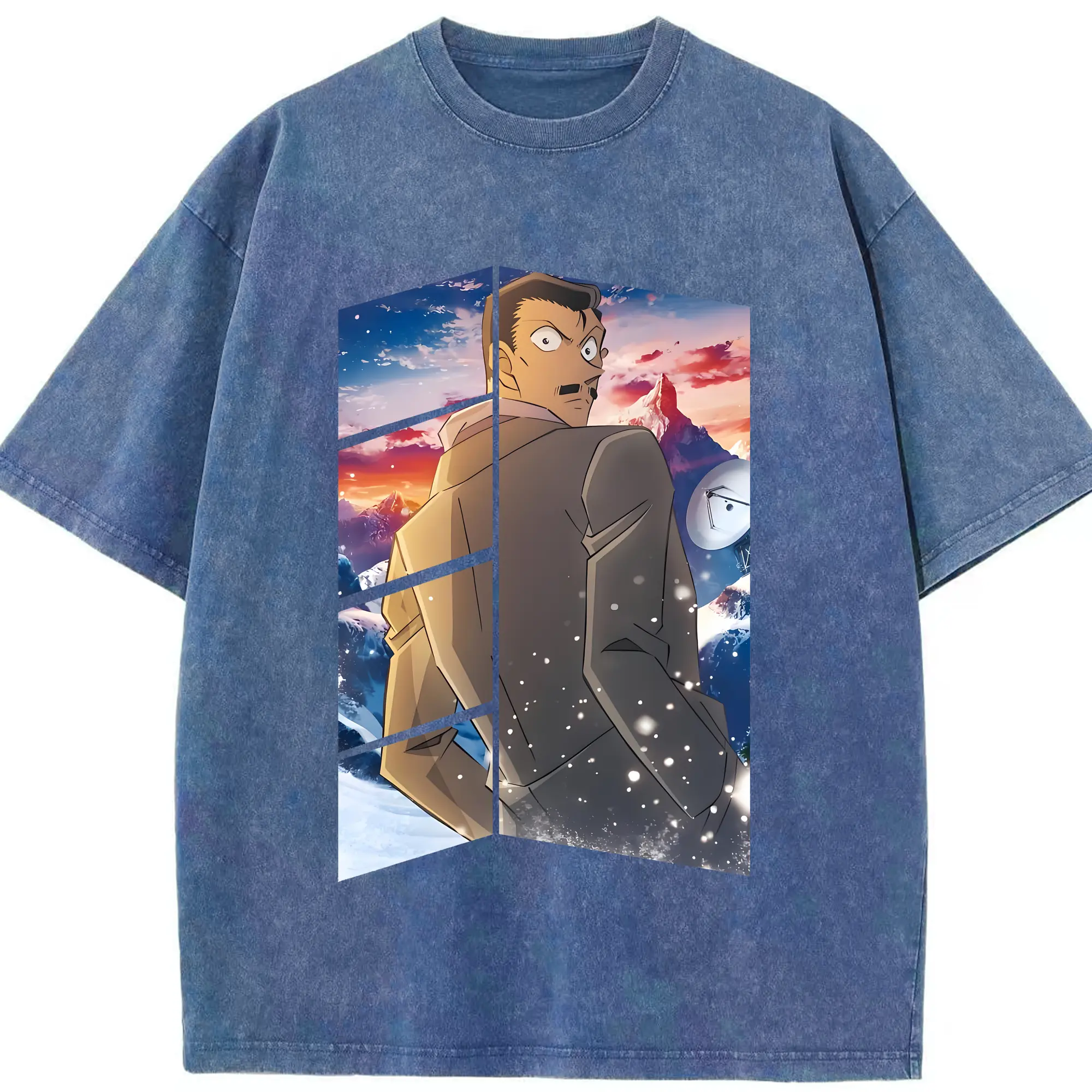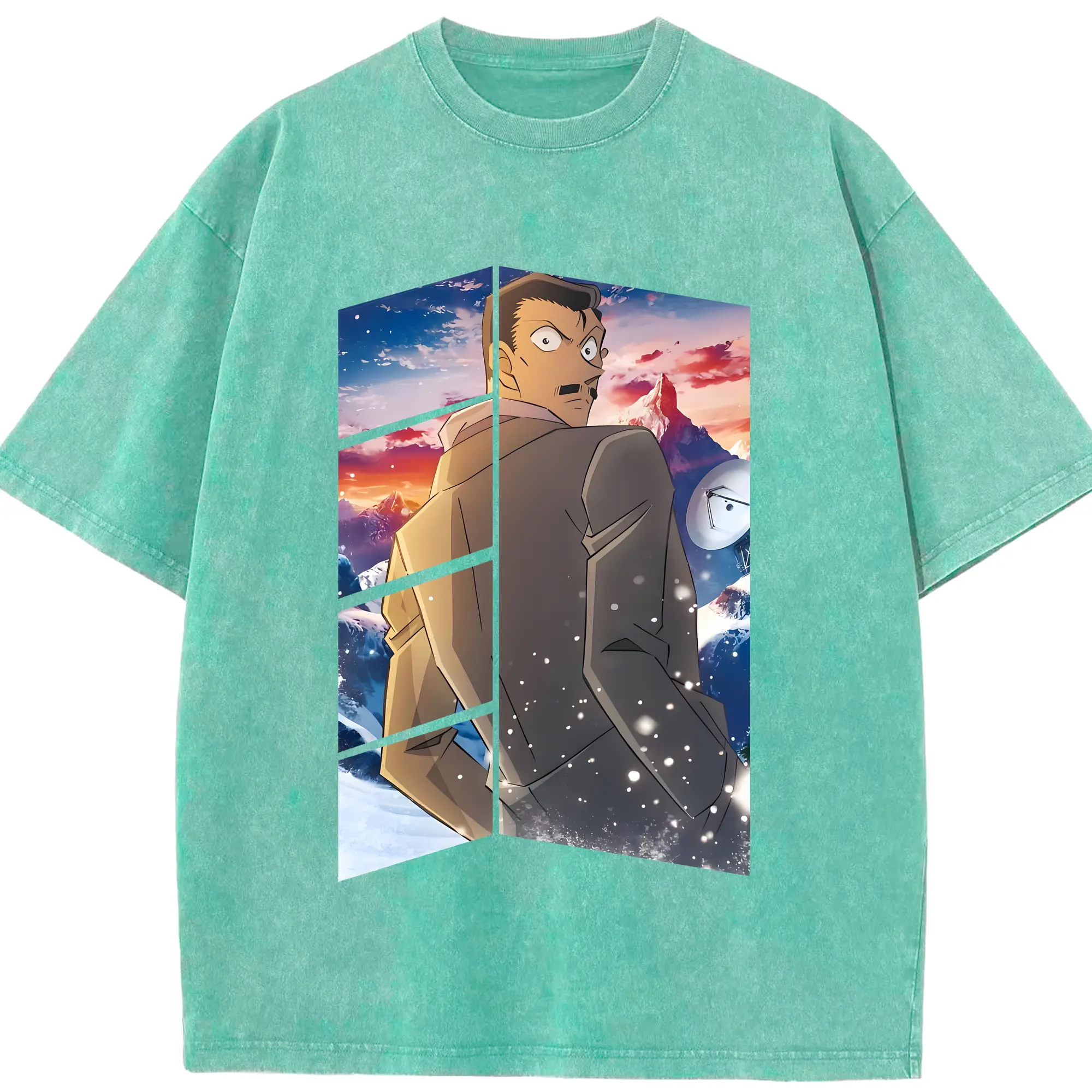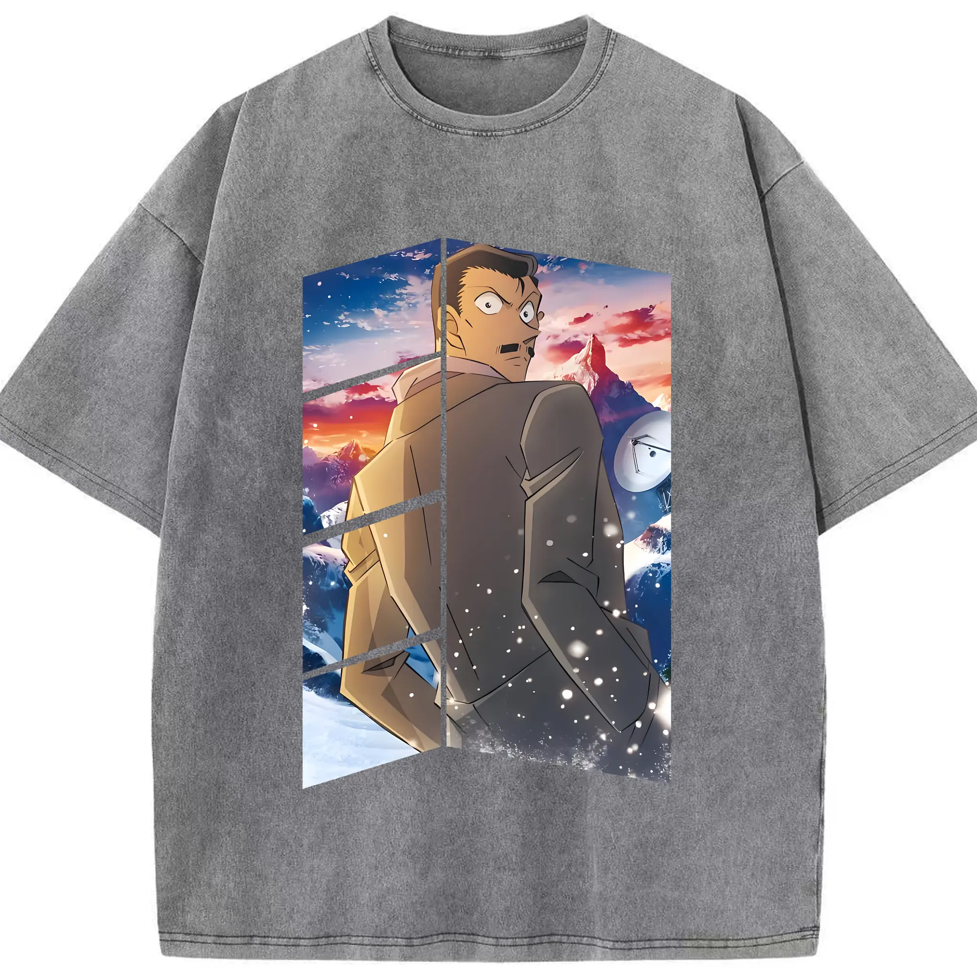名探偵コナン グッズ 毛利 小五郎 - 綿100% ヴィンテージ風 半袖Tシャツ ・ 背面プリント ・ 柔らか肌触り ・ 通気性 快適 ・ スポーツ カジュアル 外出用