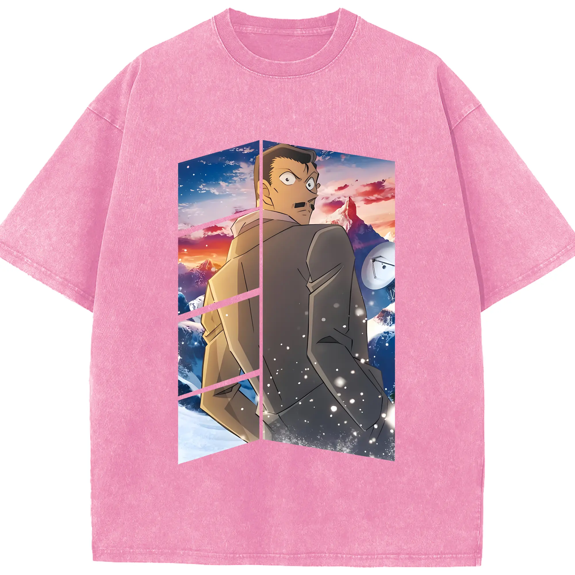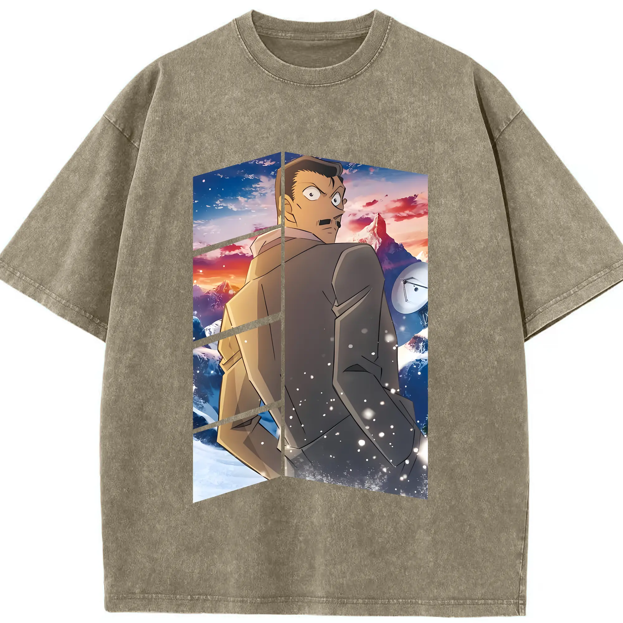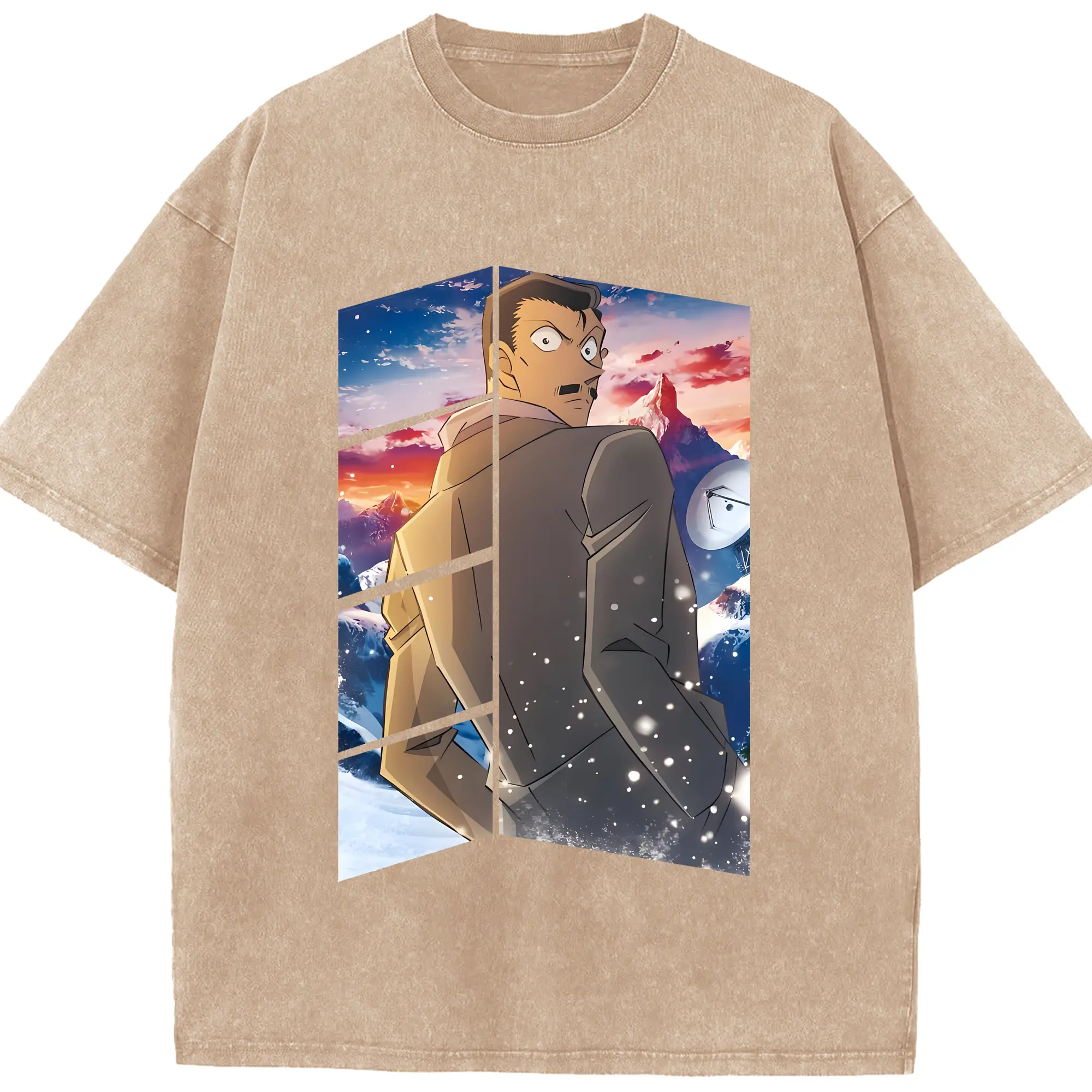 名探偵コナン グッズ 毛利 小五郎 - 綿100% ヴィンテージ風 半袖Tシャツ ・ 背面プリント ・ 柔らか肌触り ・ 通気性 快適 ・ スポーツ カジュアル 外出用