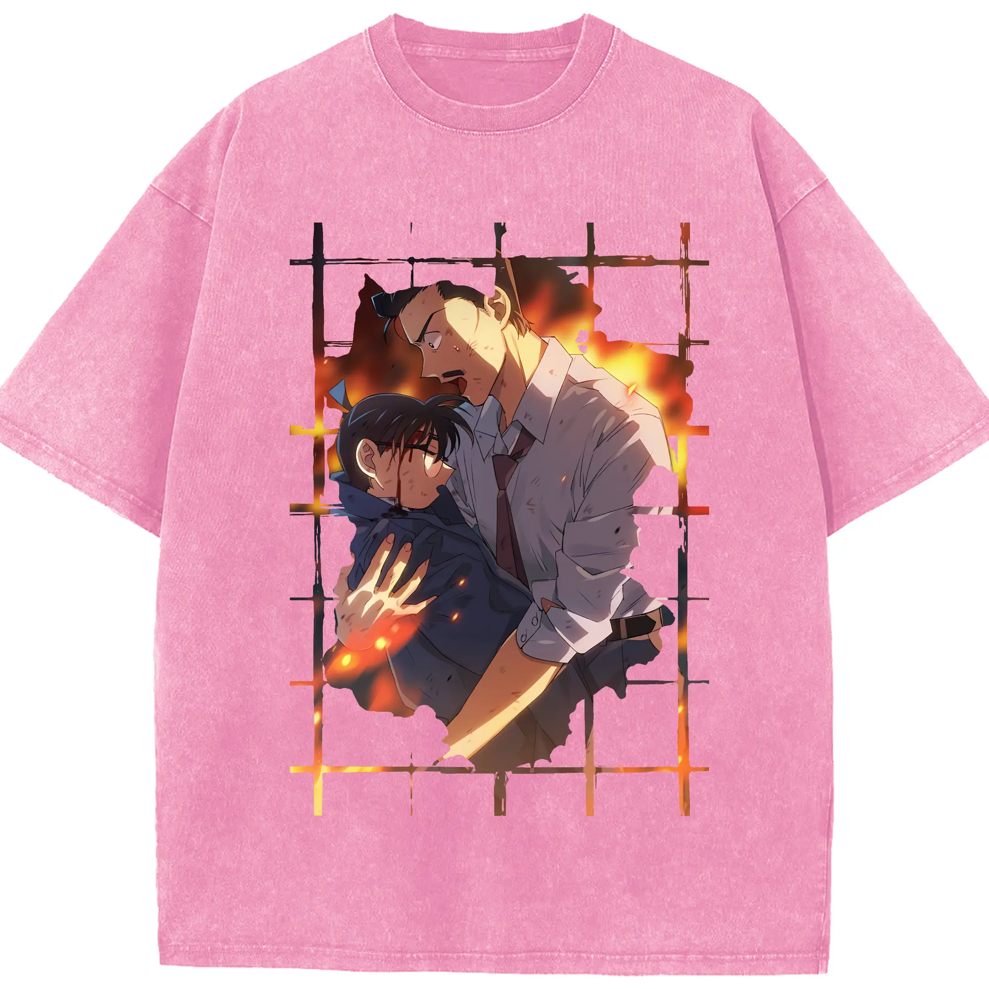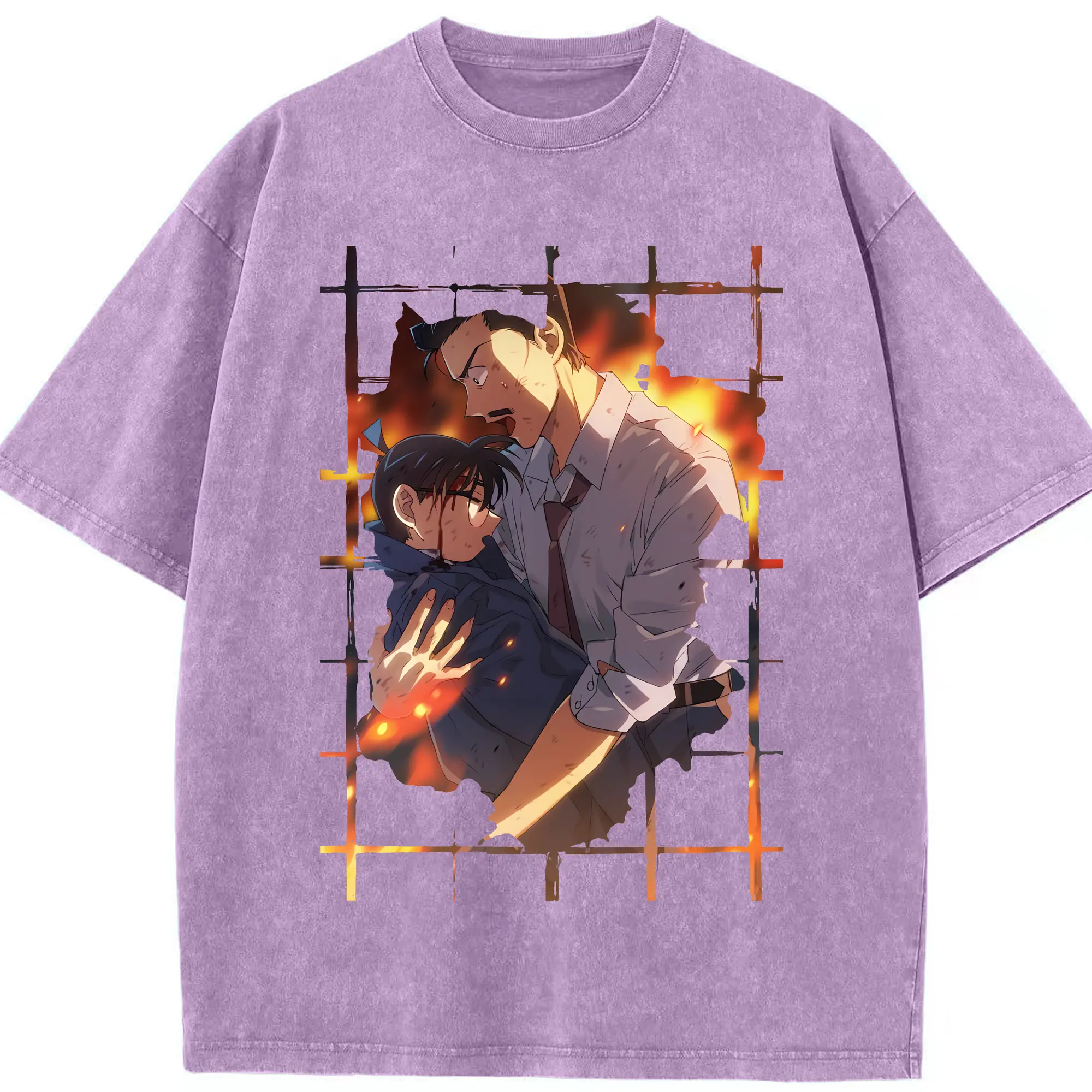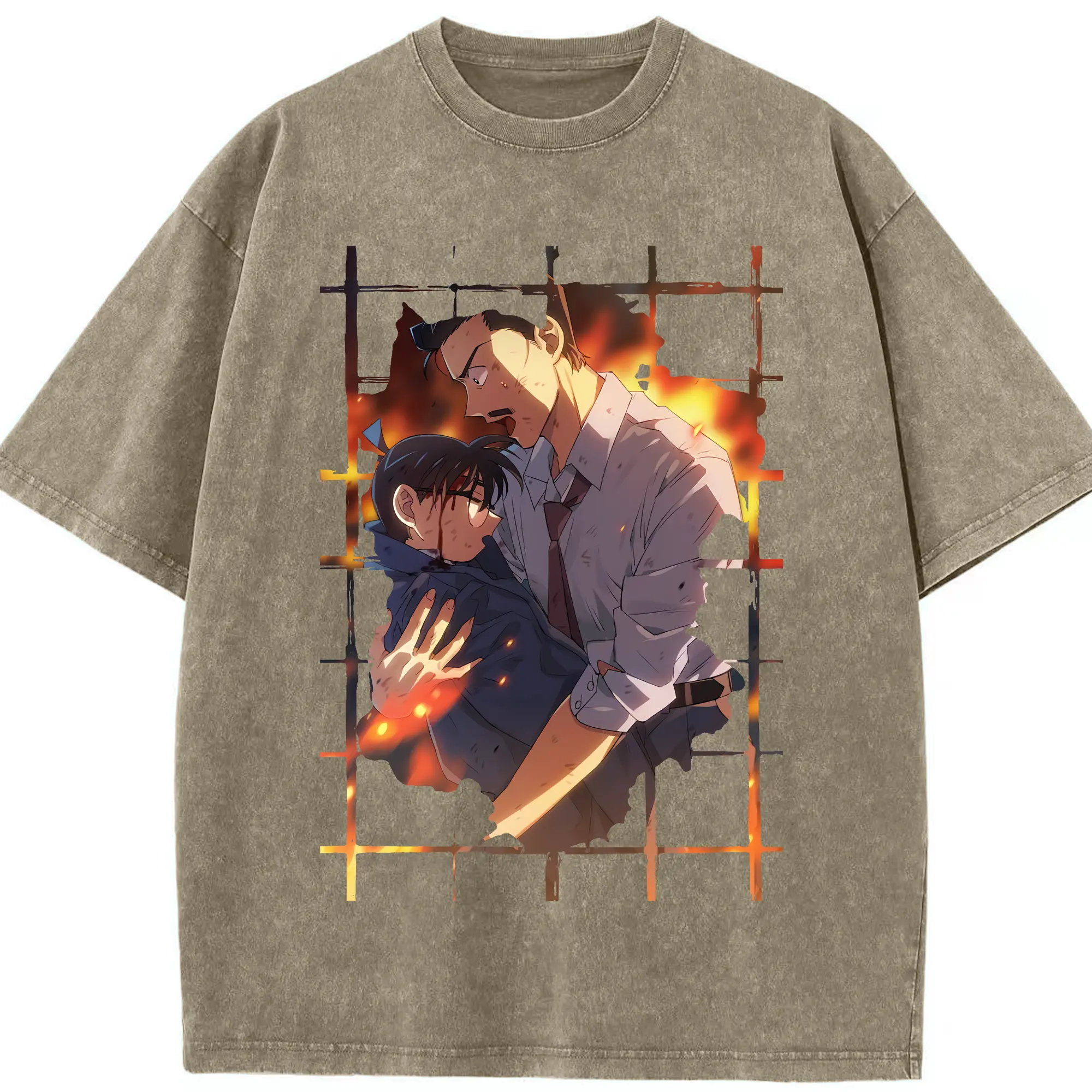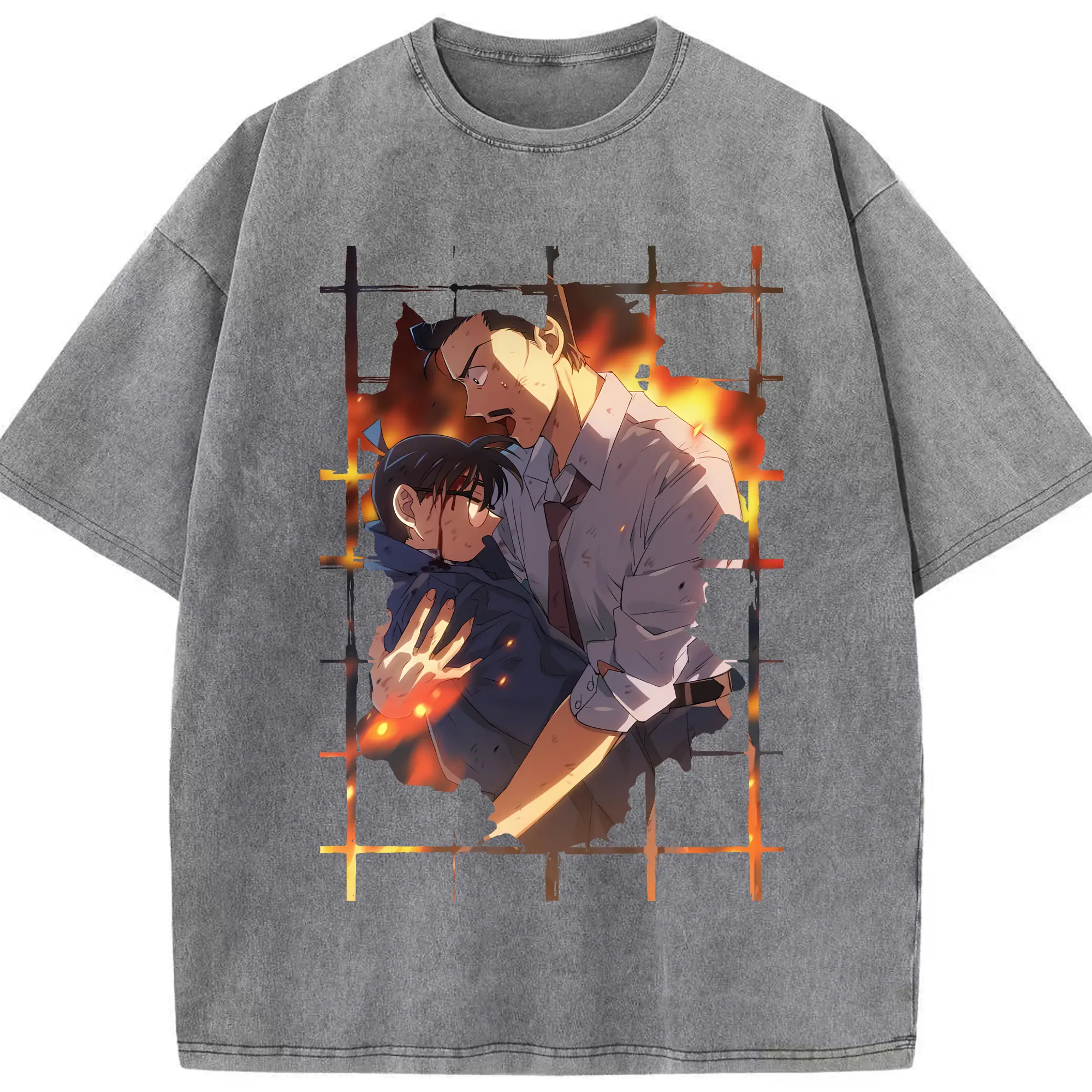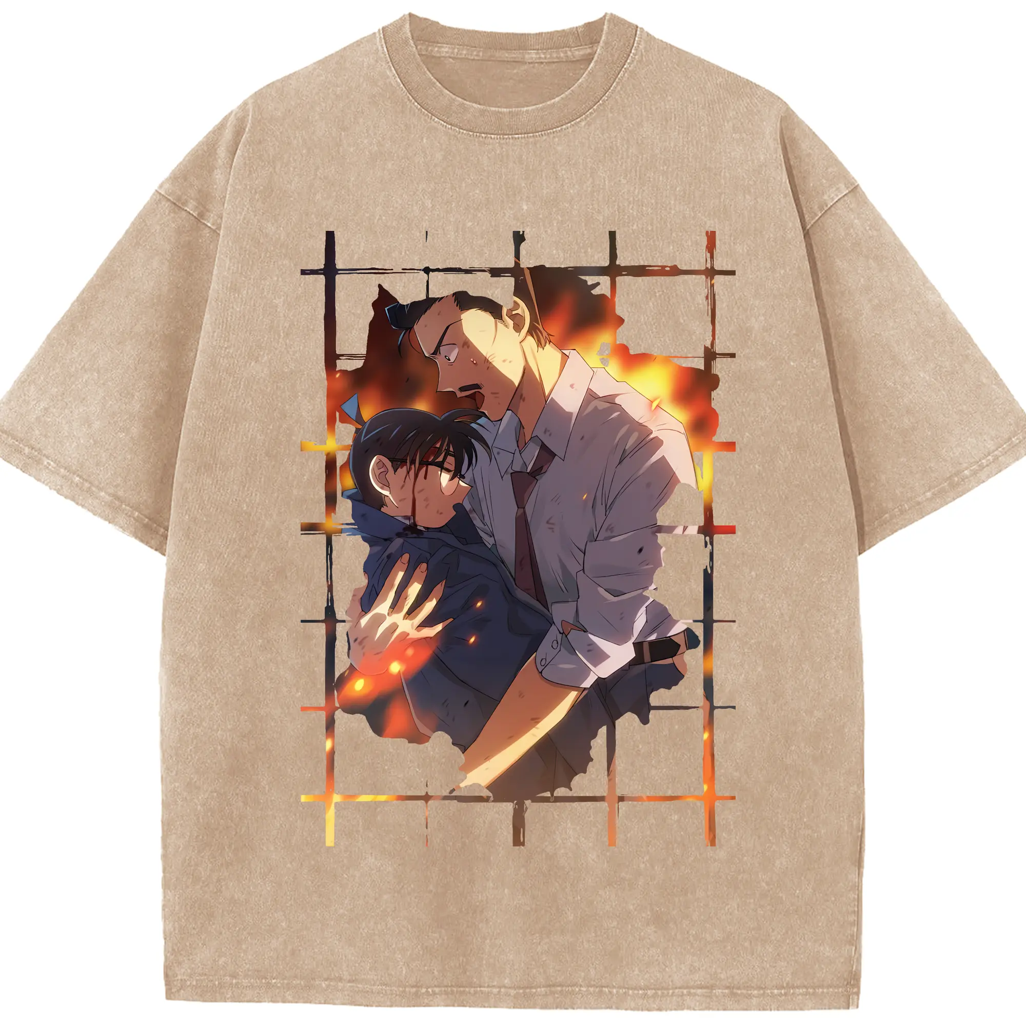 名探偵コナン グッズ 毛利 小五郎 - 綿100% ヴィンテージ風 半袖Tシャツ ・ 背面プリント ・ 柔らか肌触り ・ 通気性 快適 ・ スポーツ カジュアル 外出用