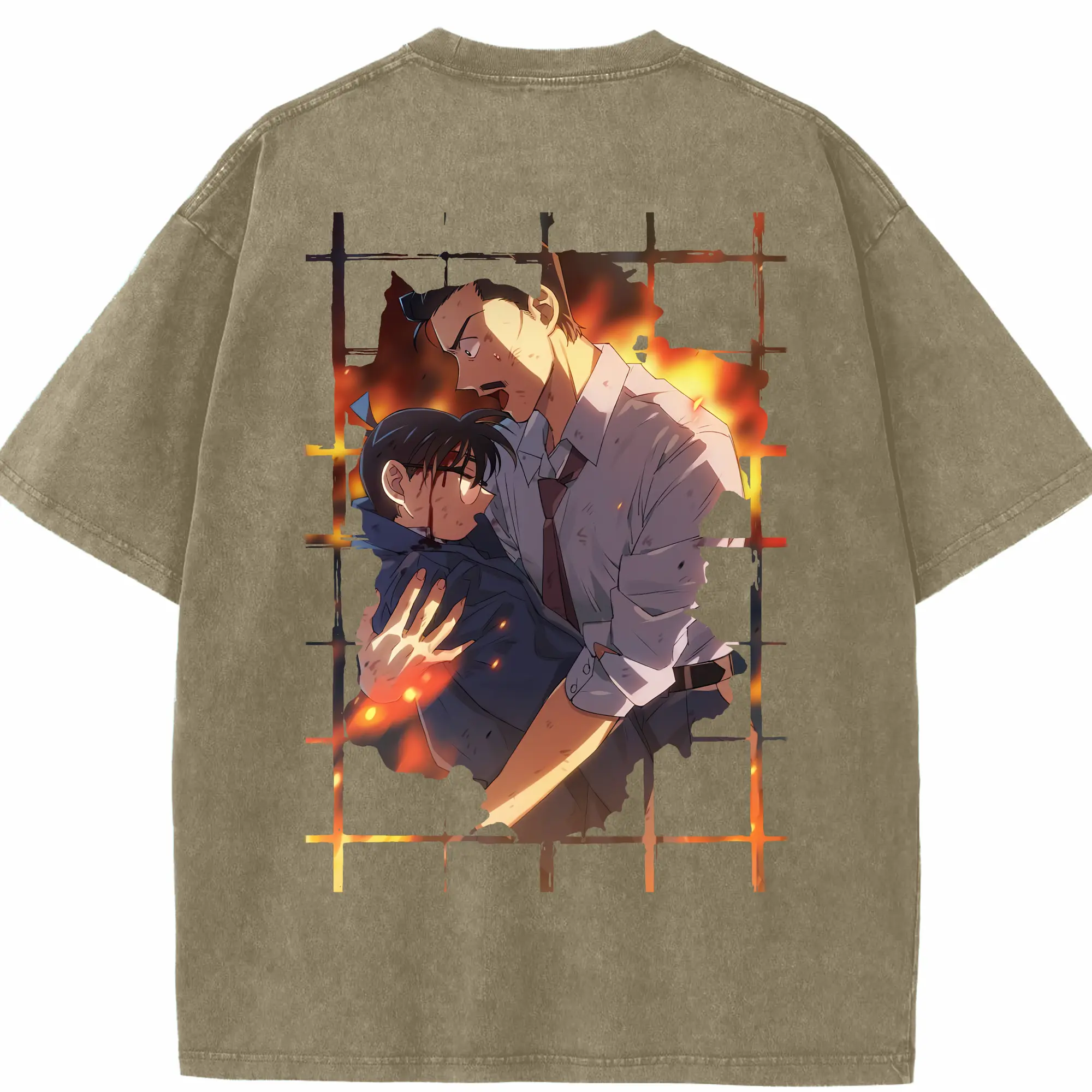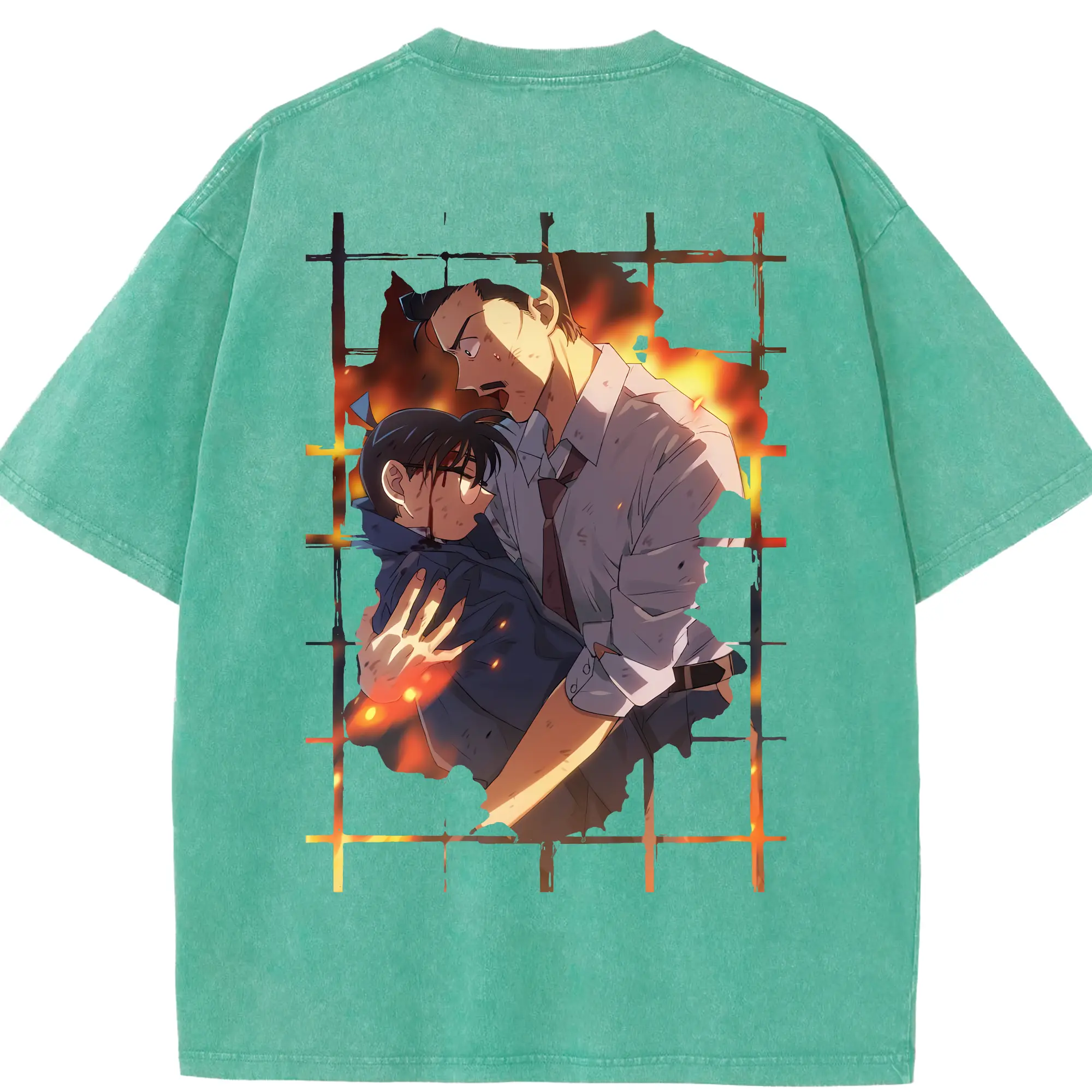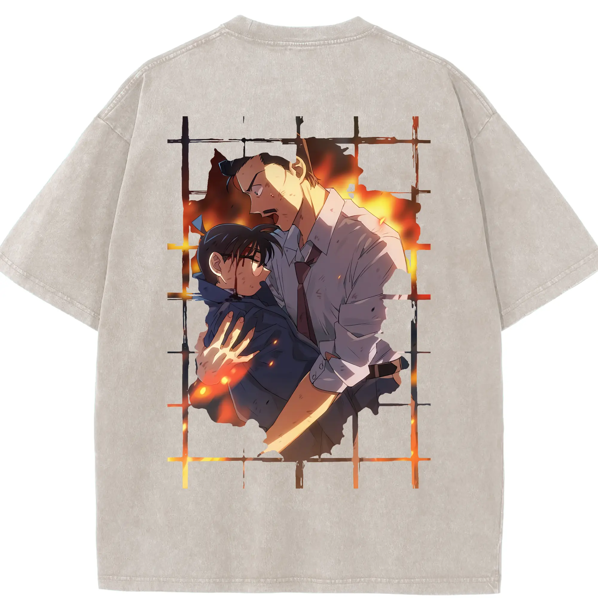 名探偵コナン グッズ 毛利 小五郎 - 綿100% ヴィンテージ風 半袖Tシャツ ・ フロントプリント ・ 柔らか肌触り ・ 通気性 快適 ・ スポーツ カジュアル 外出用