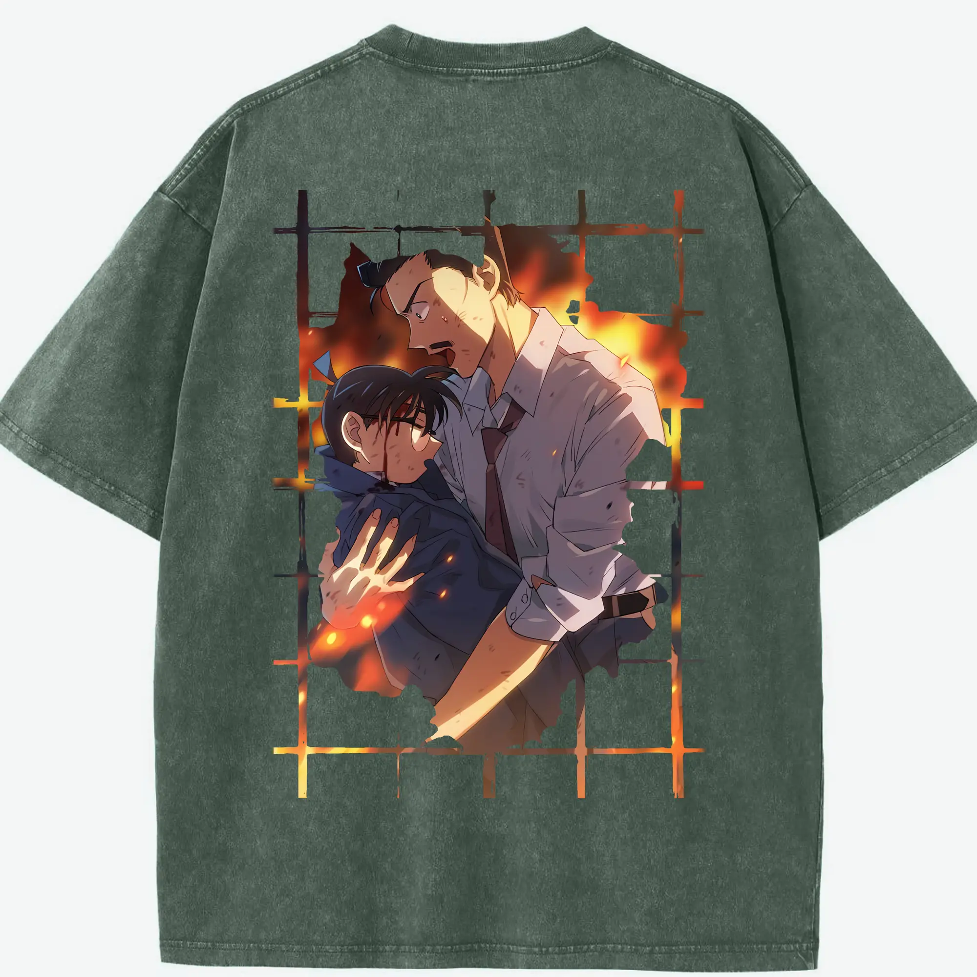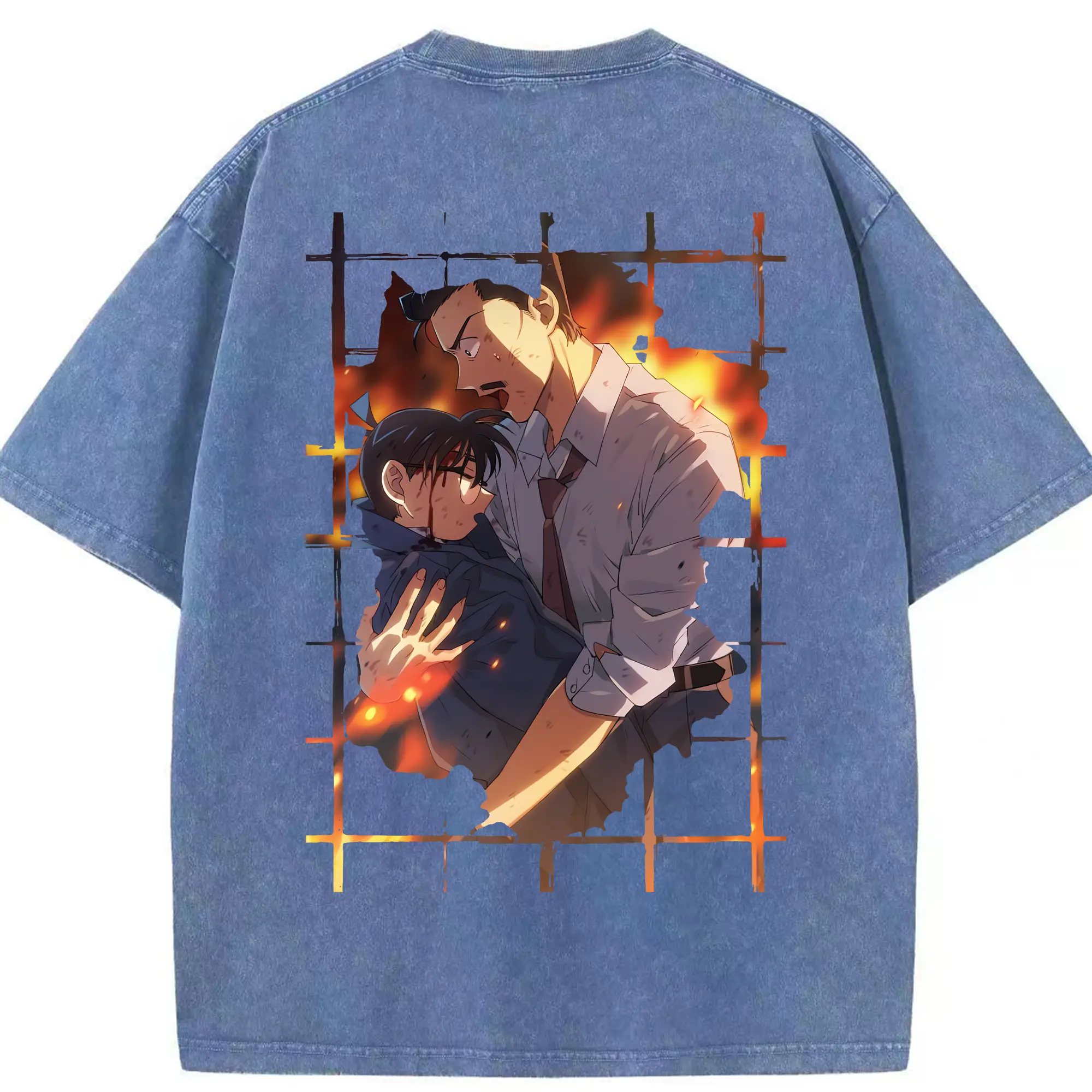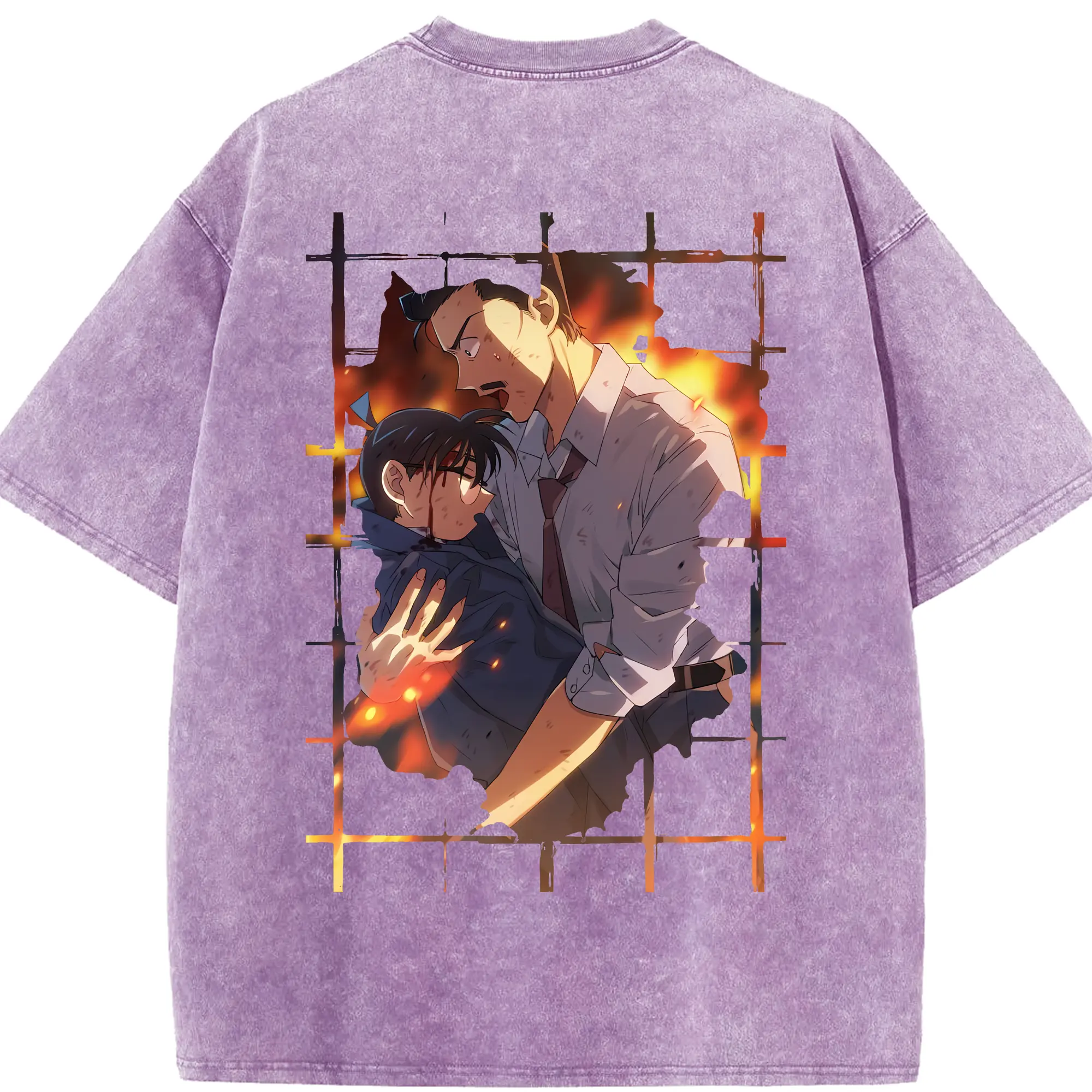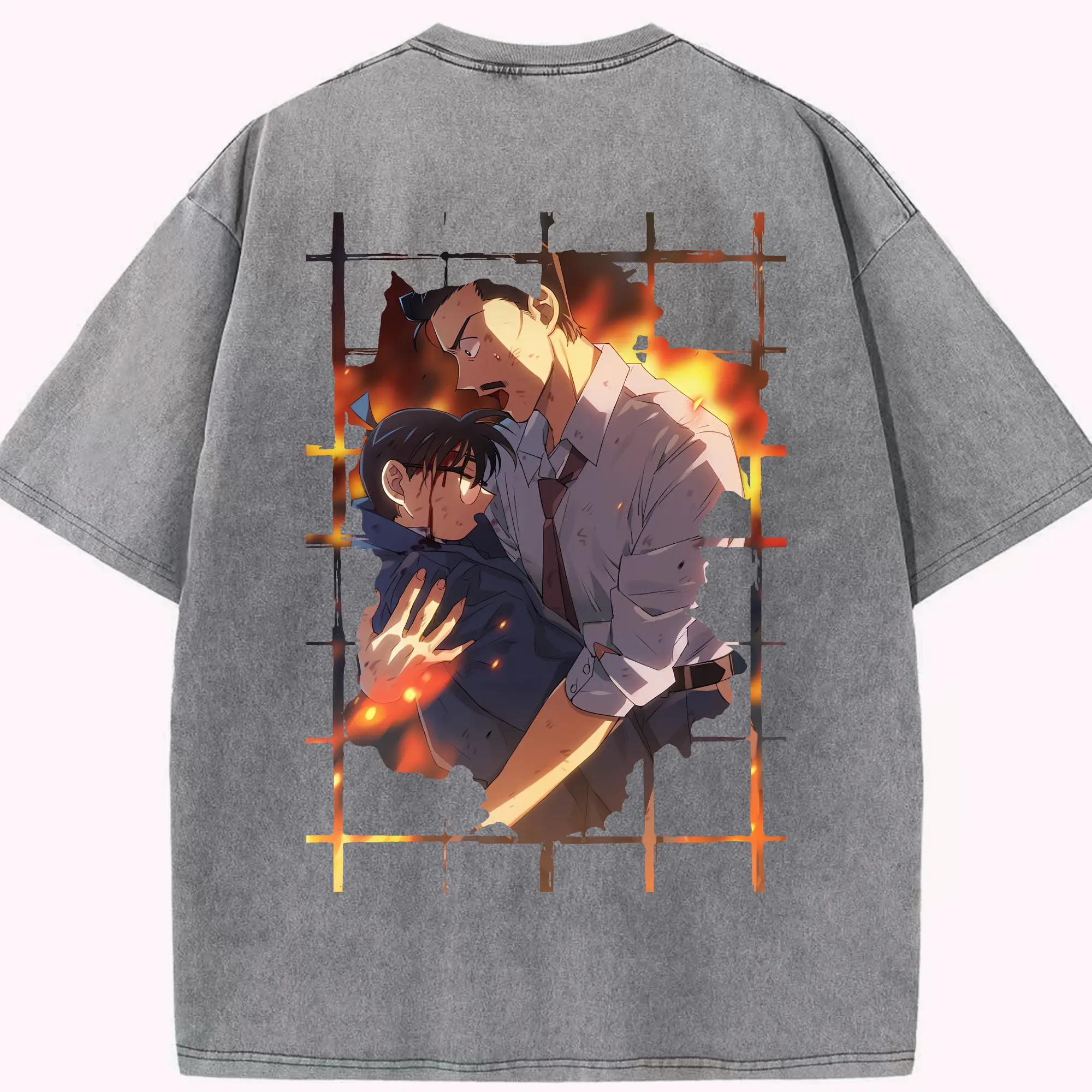 名探偵コナン グッズ 毛利 小五郎 - 綿100% ヴィンテージ風 半袖Tシャツ ・ フロントプリント ・ 柔らか肌触り ・ 通気性 快適 ・ スポーツ カジュアル 外出用