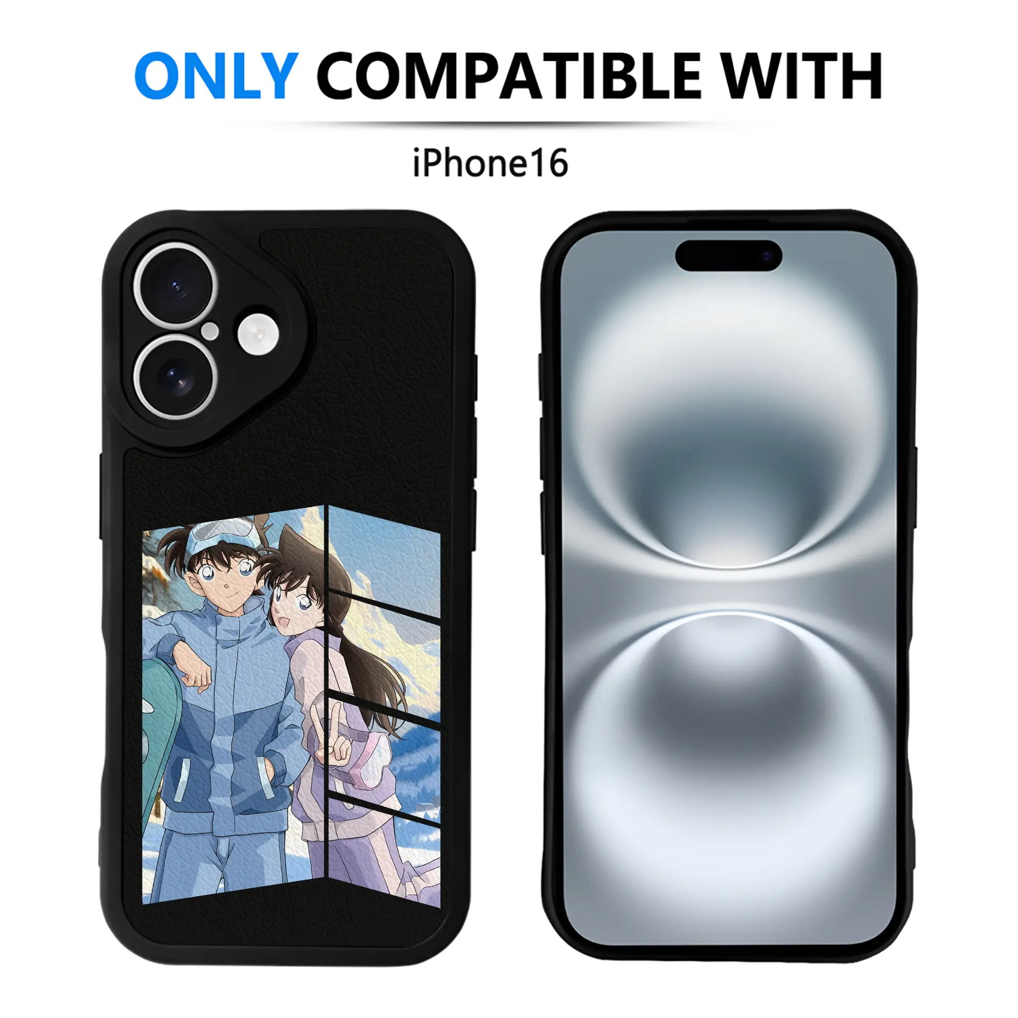 名探偵コナン グッズ 毛利 蘭 - IPhone 16シリーズ対応 ・ シリコンスマホケース ・ レザー調 ・ 高精度フィット ・ 耐衝撃 ・ ワイヤレス充電対応 ・ 精密カット