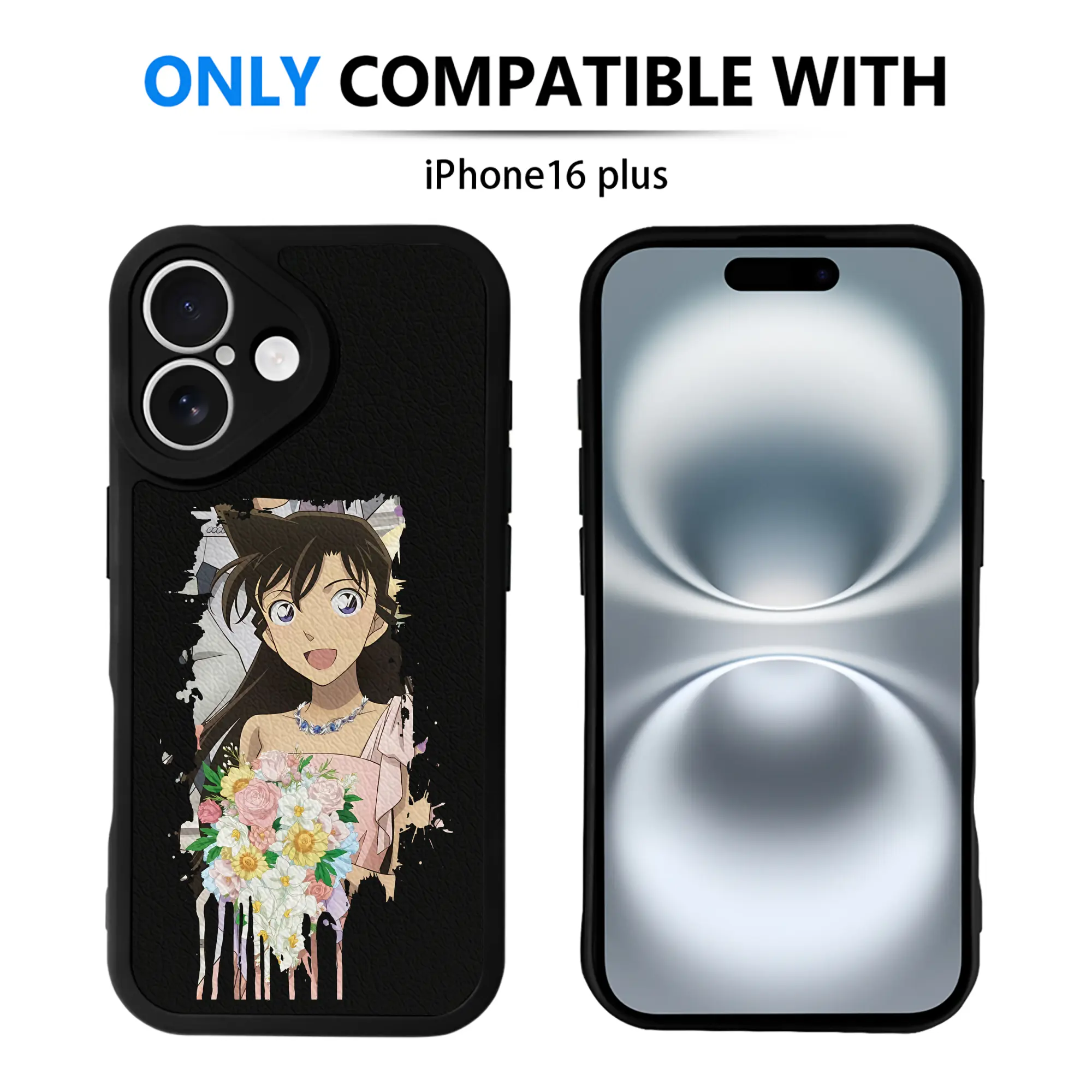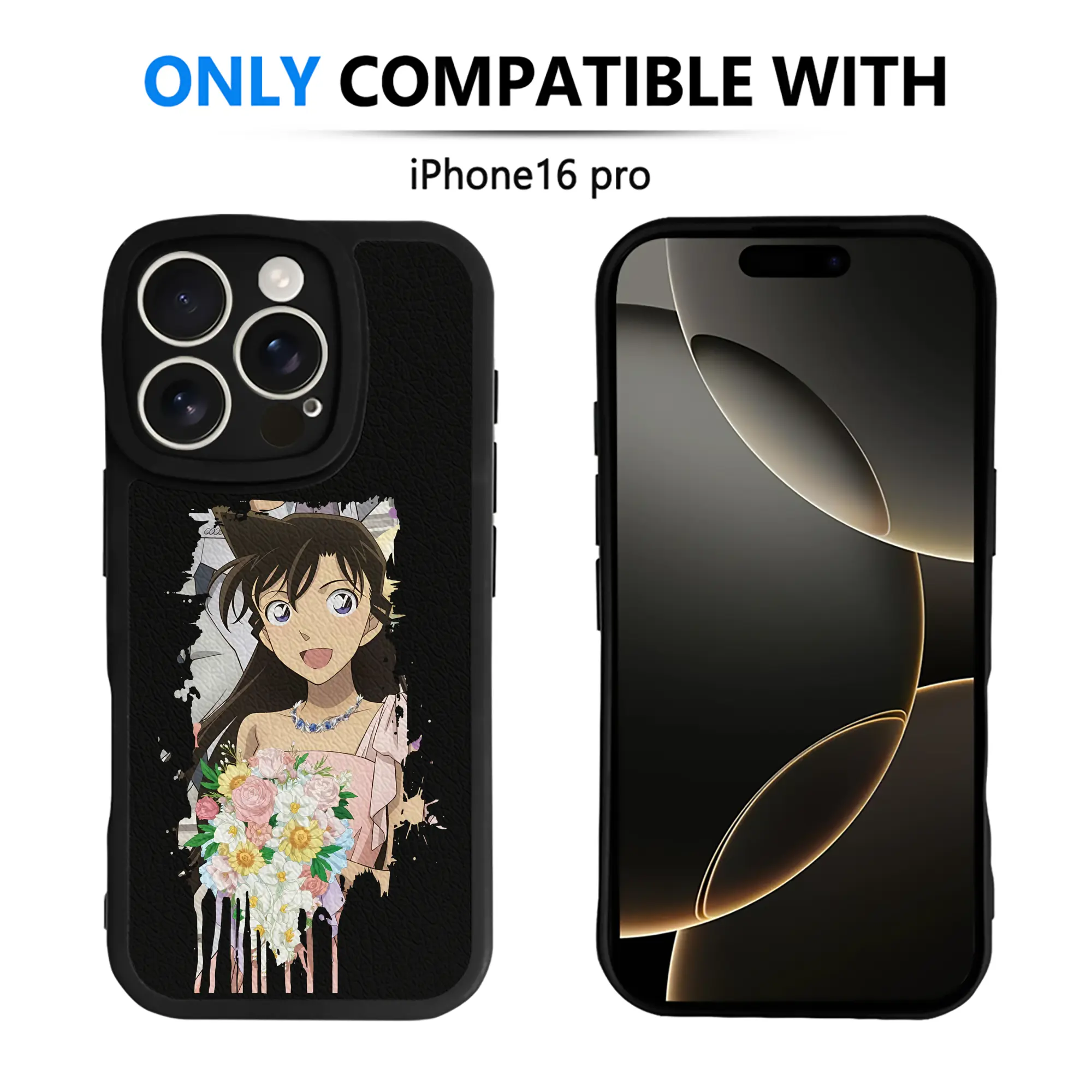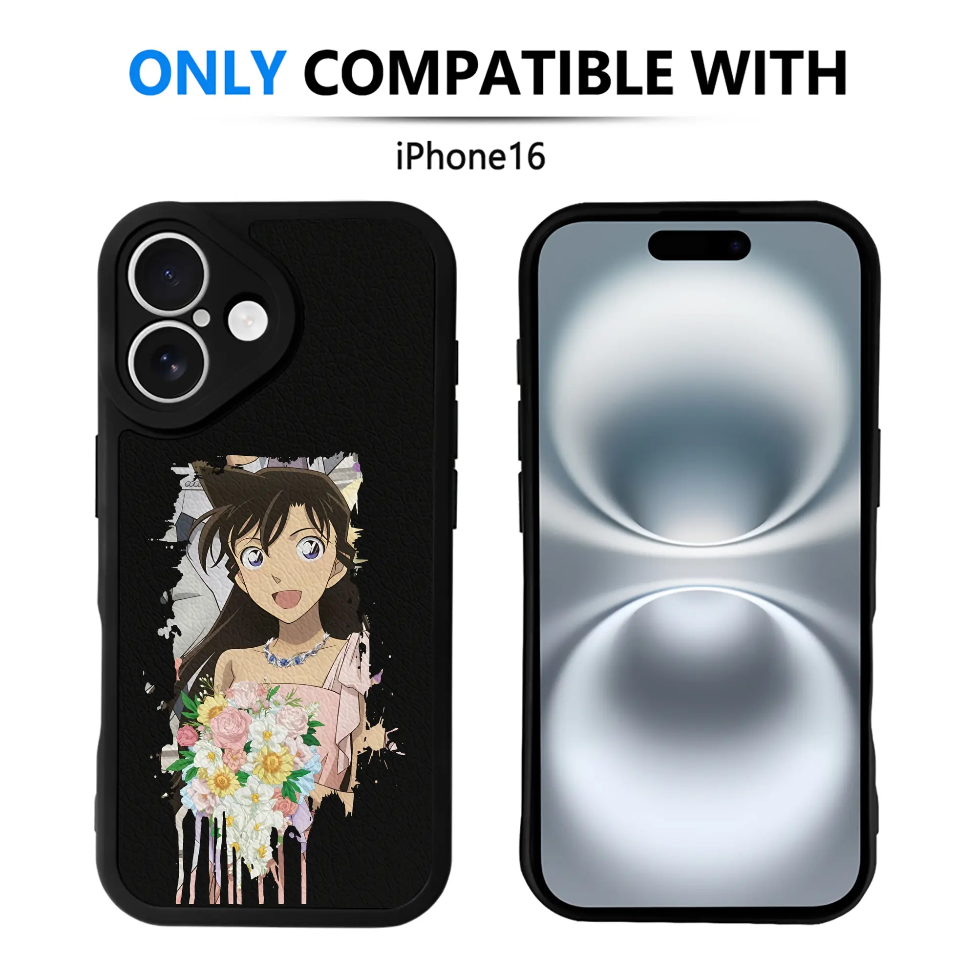 名探偵コナン グッズ 毛利 蘭 - IPhone 16シリーズ対応 ・ シリコンスマホケース ・ レザー調 ・ 高精度フィット ・ 耐衝撃 ・ ワイヤレス充電対応 ・ 精密カット