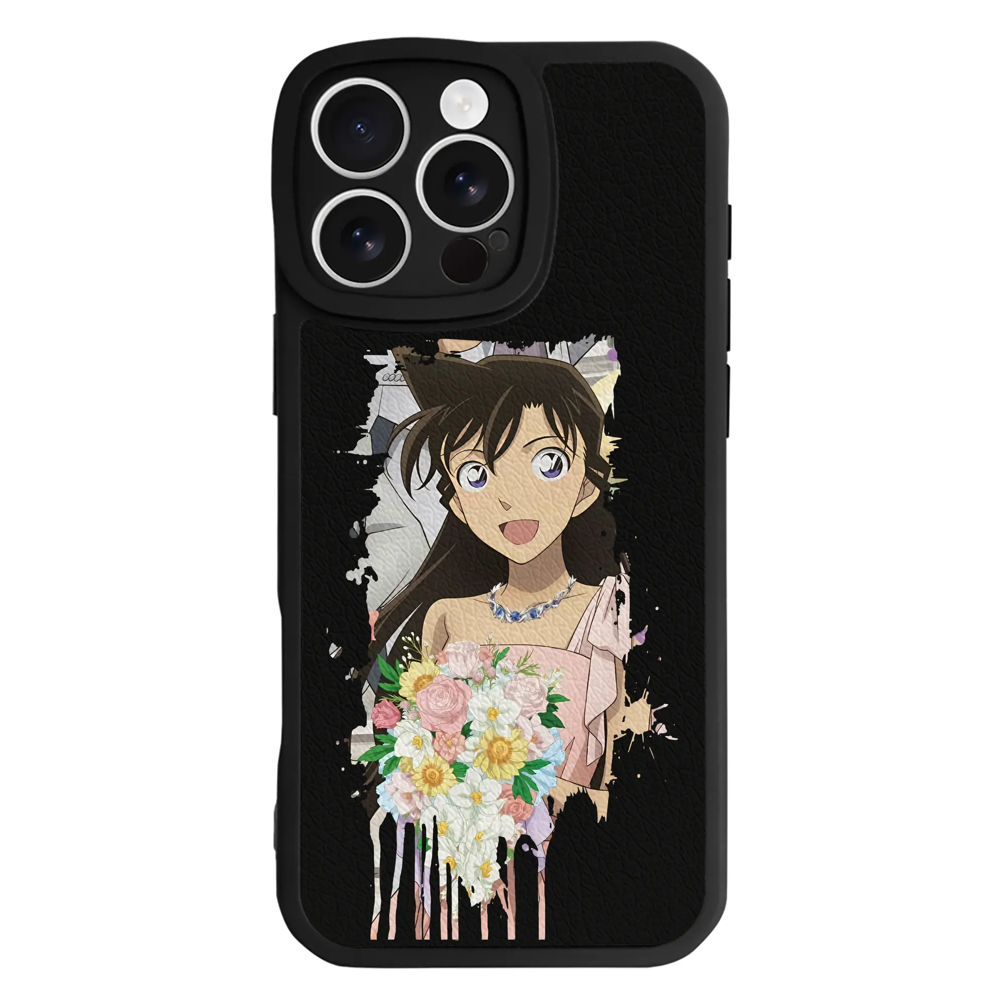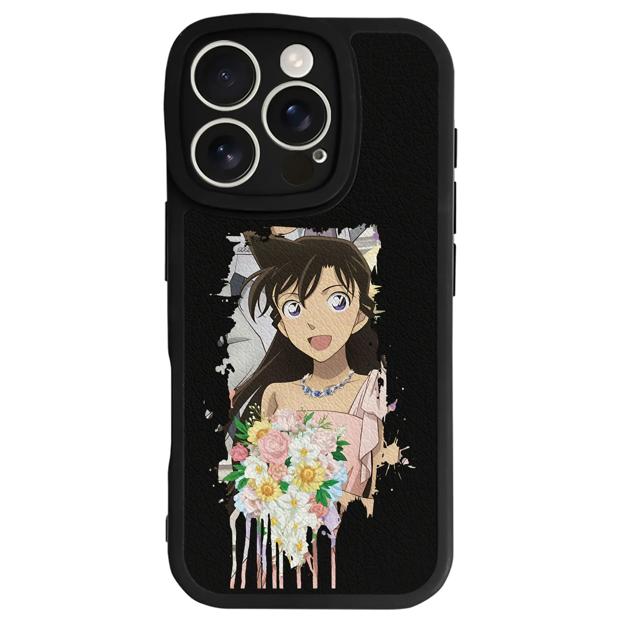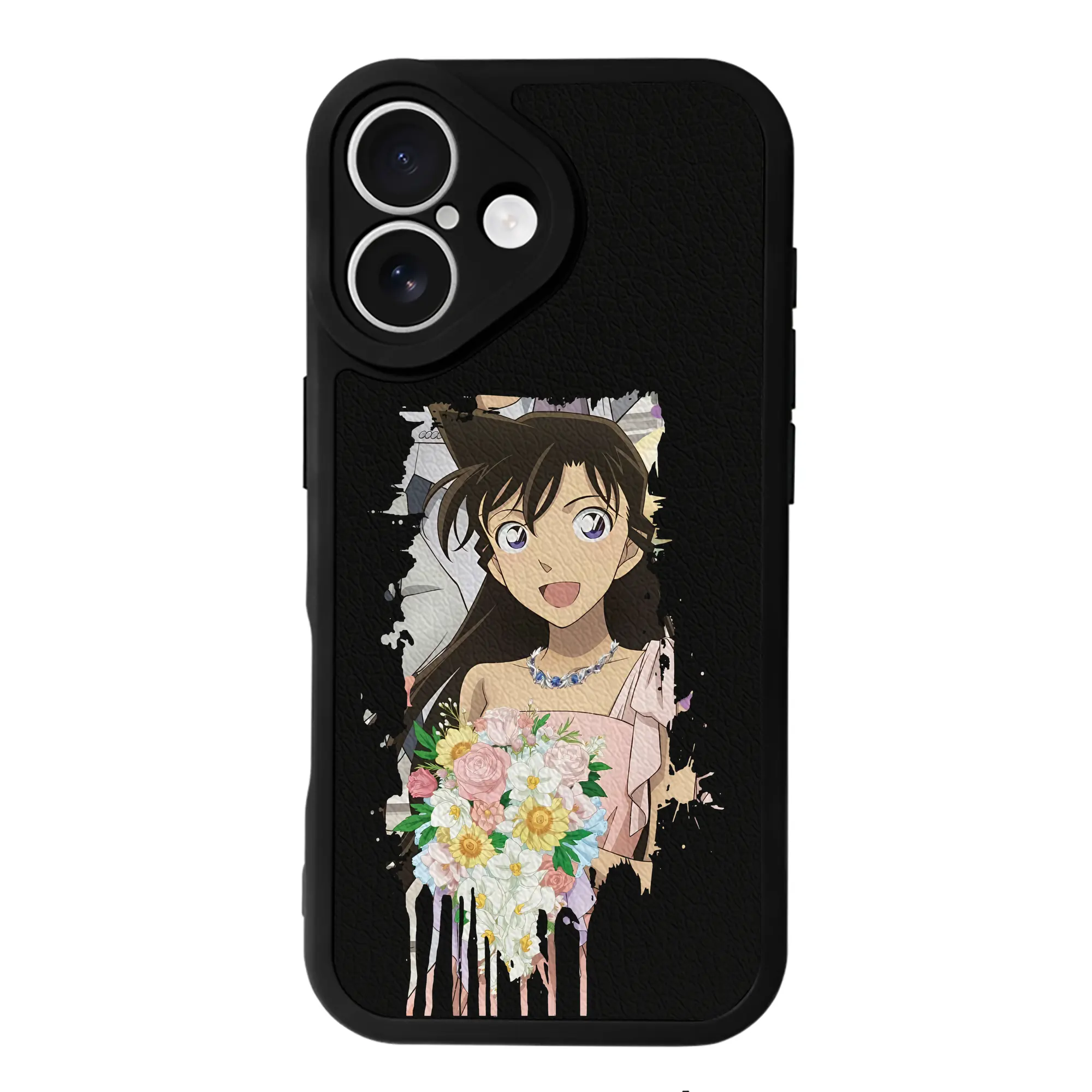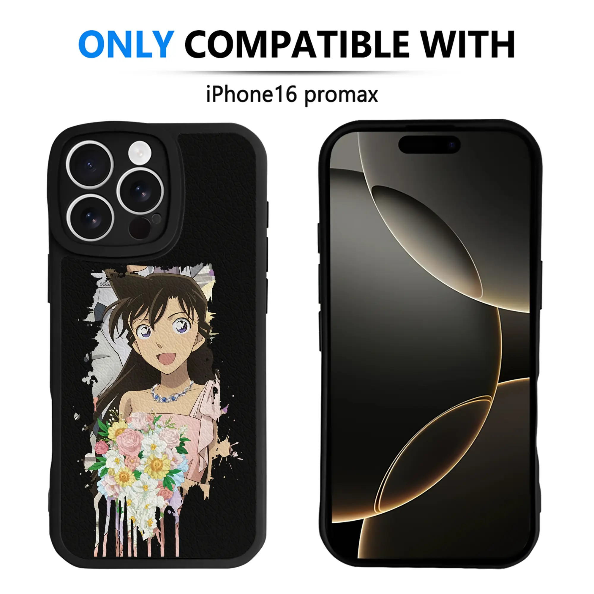 名探偵コナン グッズ 毛利 蘭 - IPhone 16シリーズ対応 ・ シリコンスマホケース ・ レザー調 ・ 高精度フィット ・ 耐衝撃 ・ ワイヤレス充電対応 ・ 精密カット