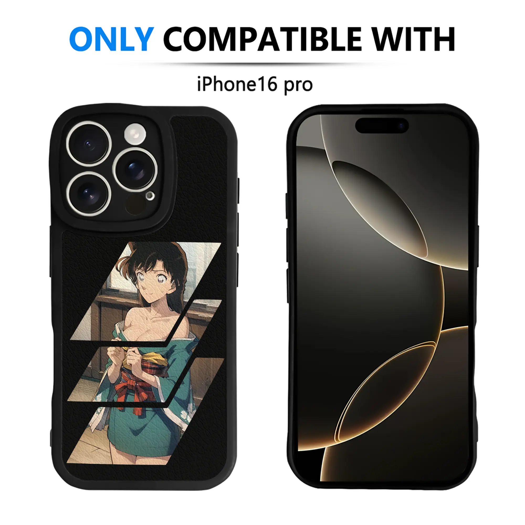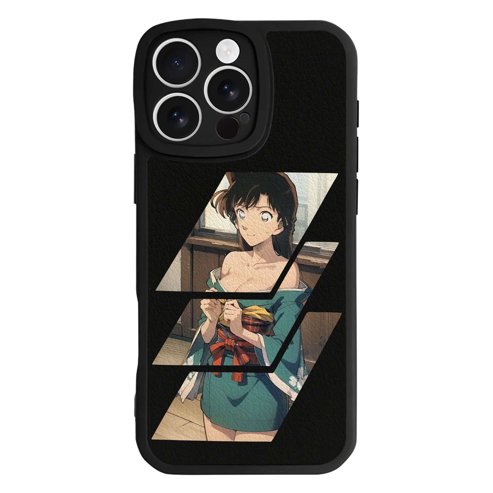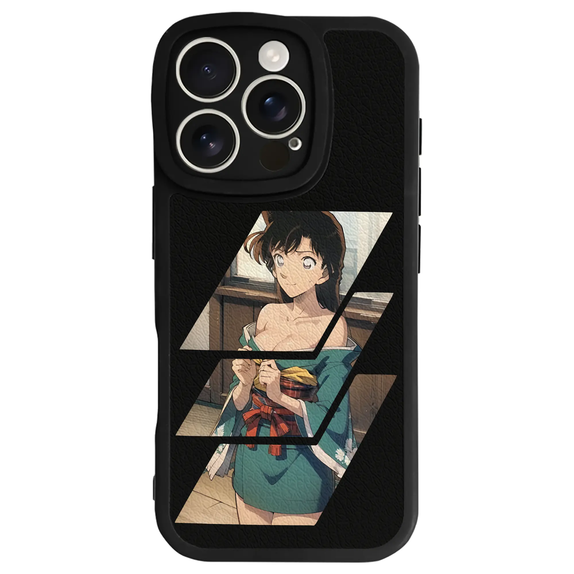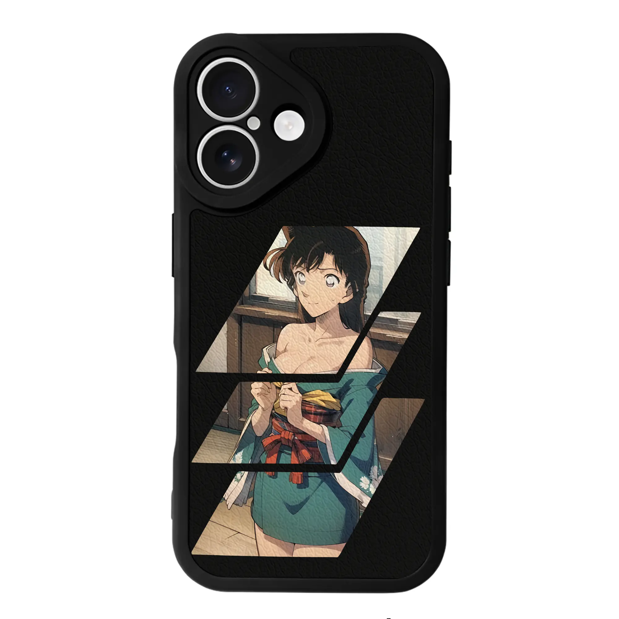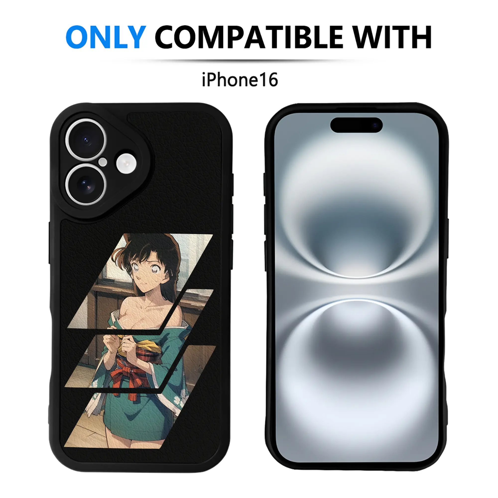 名探偵コナン グッズ 毛利 蘭 - IPhone 16シリーズ対応 ・ シリコンスマホケース ・ レザー調 ・ 高精度フィット ・ 耐衝撃 ・ ワイヤレス充電対応 ・ 精密カット