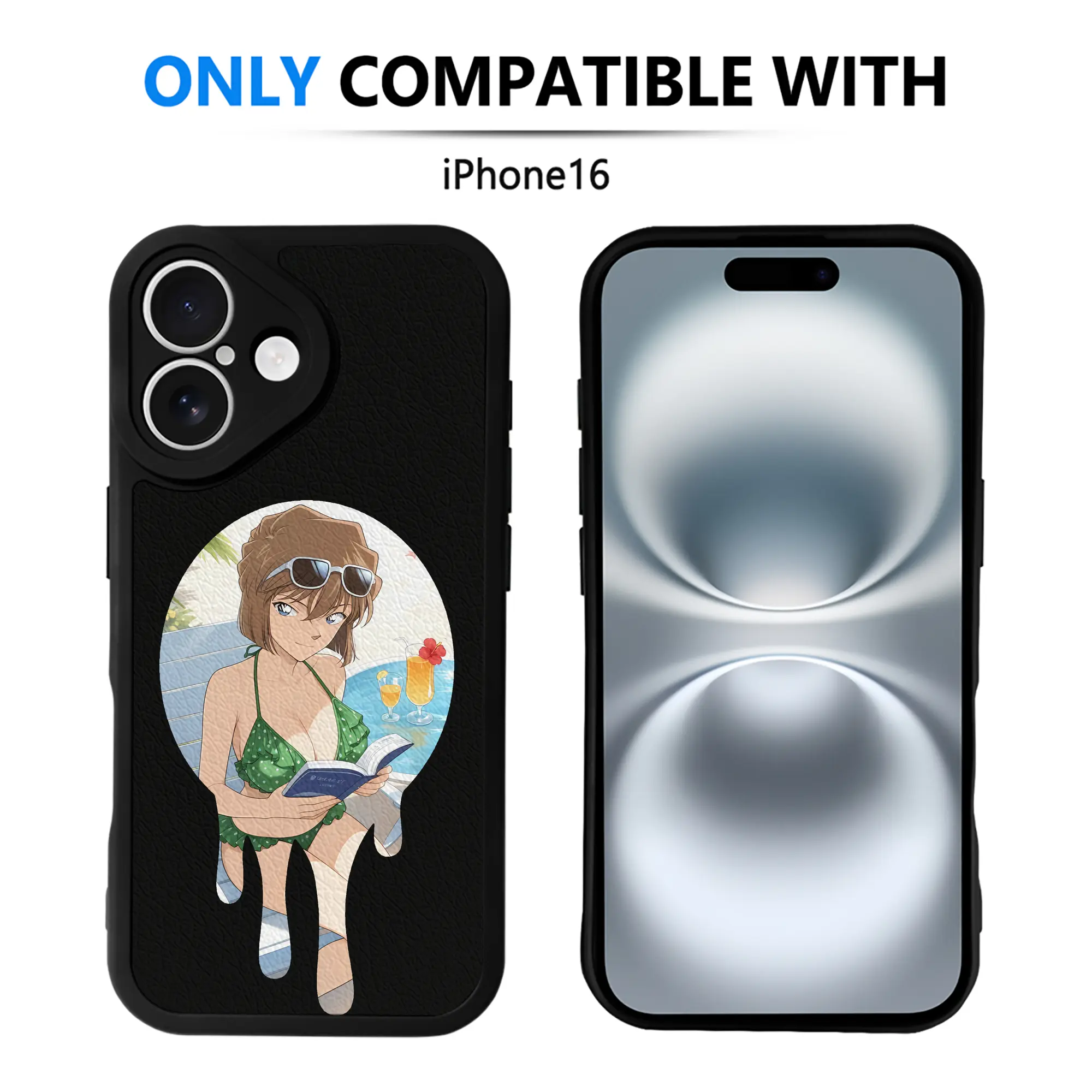 名探偵コナン グッズ 灰原 哀 - IPhone 16シリーズ対応 ・ シリコンスマホケース ・ レザー調 ・ 高精度フィット ・ 耐衝撃 ・ ワイヤレス充電対応 ・ 精密カット