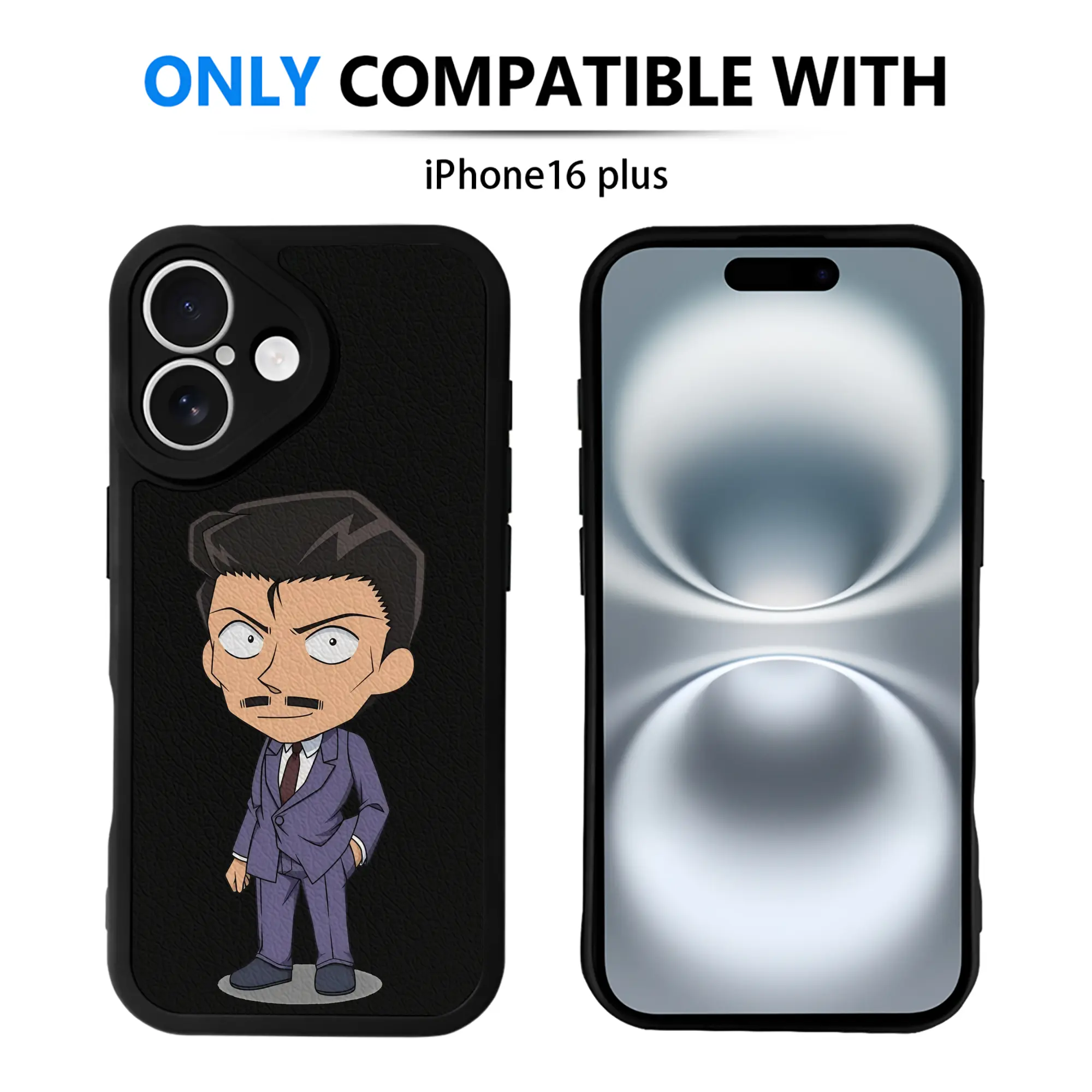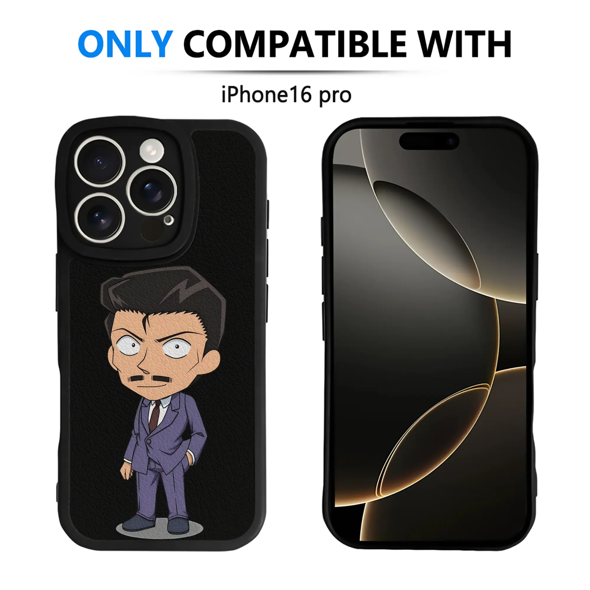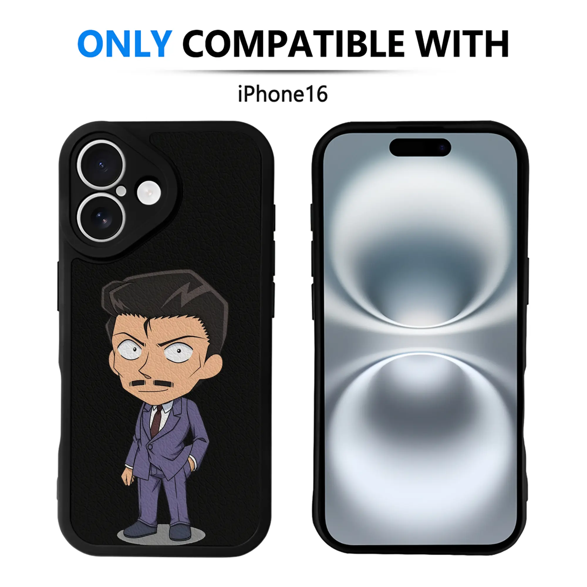 名探偵コナン グッズ 毛利 小五郎 - IPhone 16シリーズ対応 ・ シリコンスマホケース ・ レザー調 ・ 高精度フィット ・ 耐衝撃 ・ ワイヤレス充電対応 ・ 精密カット