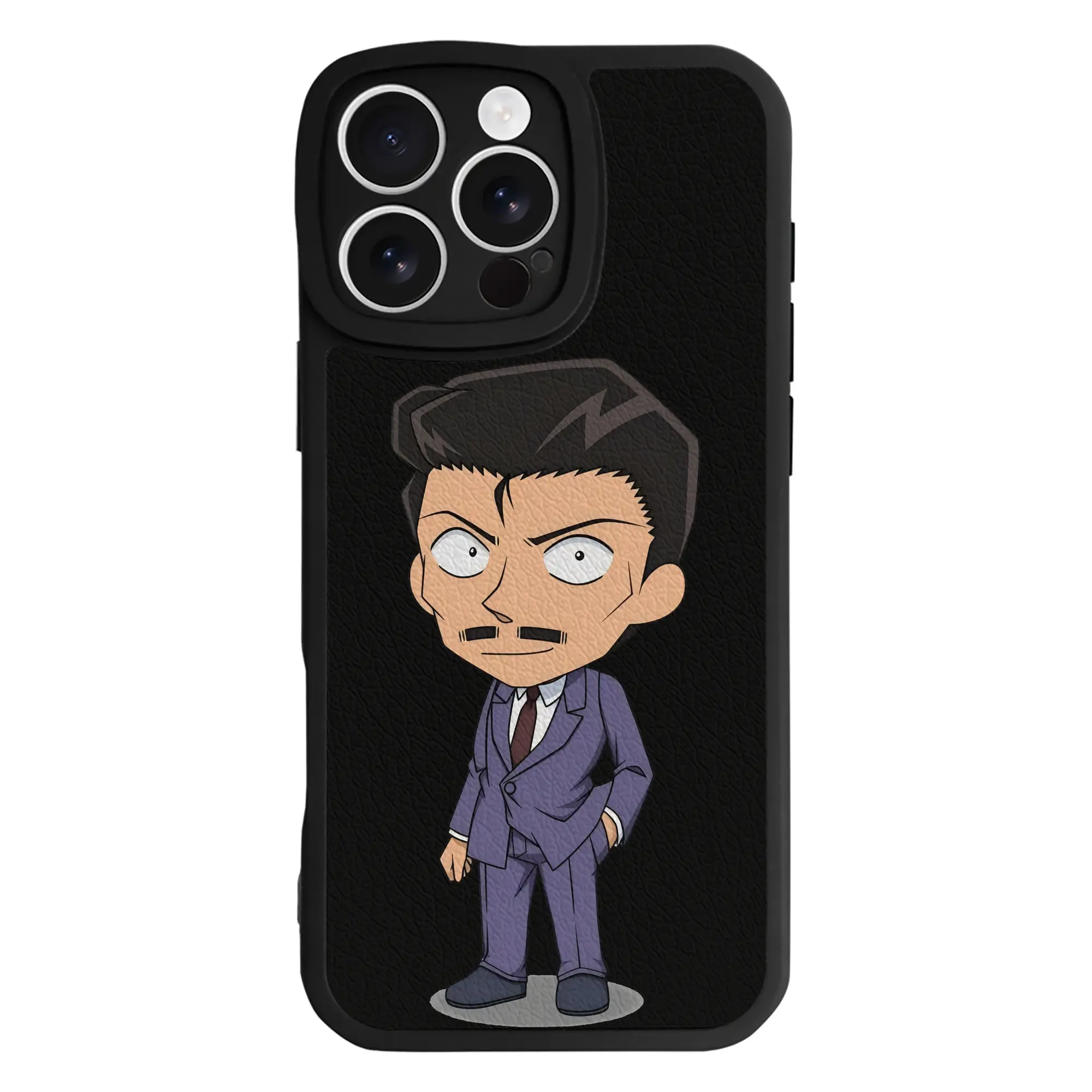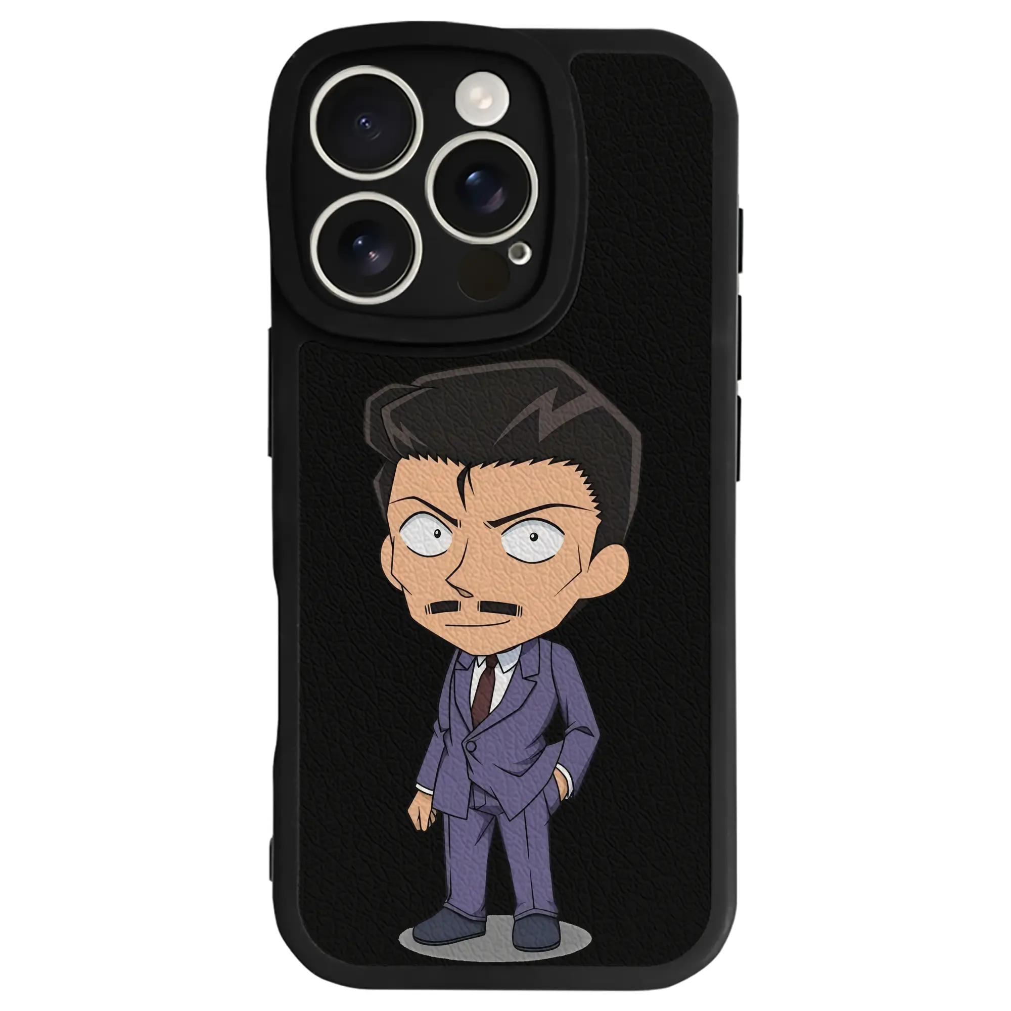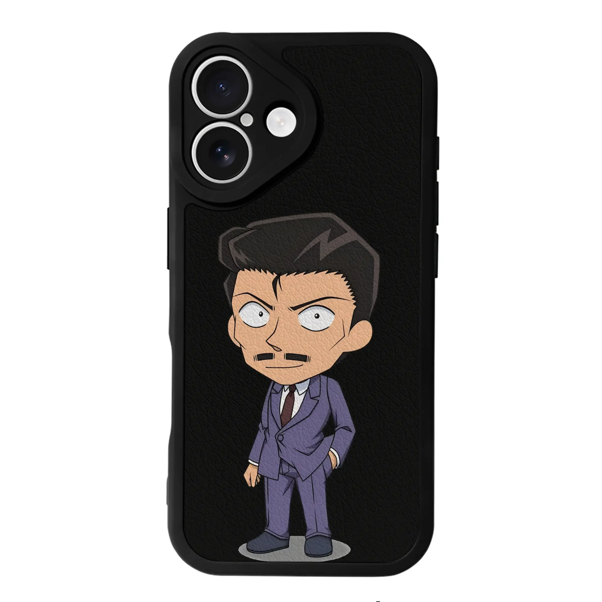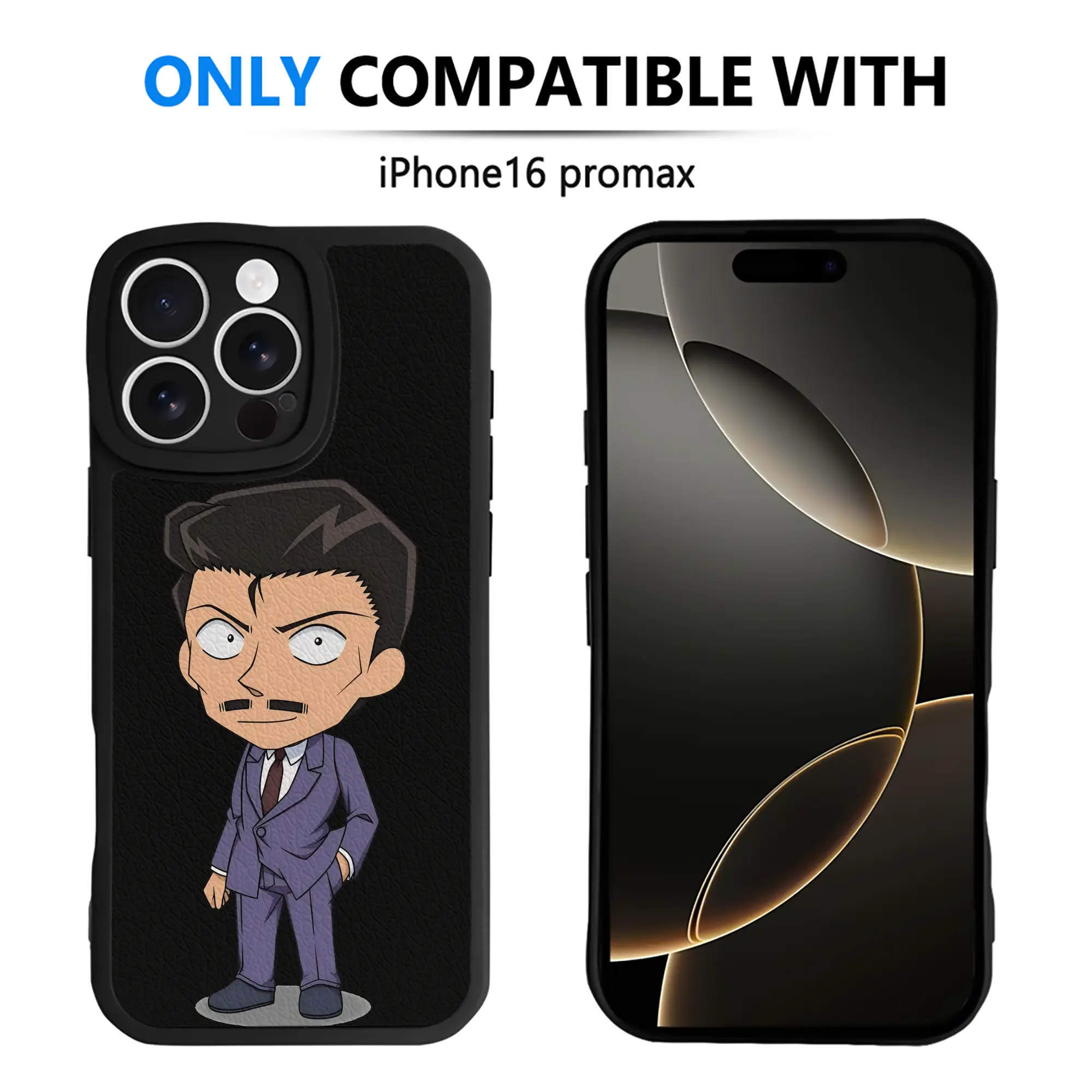 名探偵コナン グッズ 毛利 小五郎 - IPhone 16シリーズ対応 ・ シリコンスマホケース ・ レザー調 ・ 高精度フィット ・ 耐衝撃 ・ ワイヤレス充電対応 ・ 精密カット