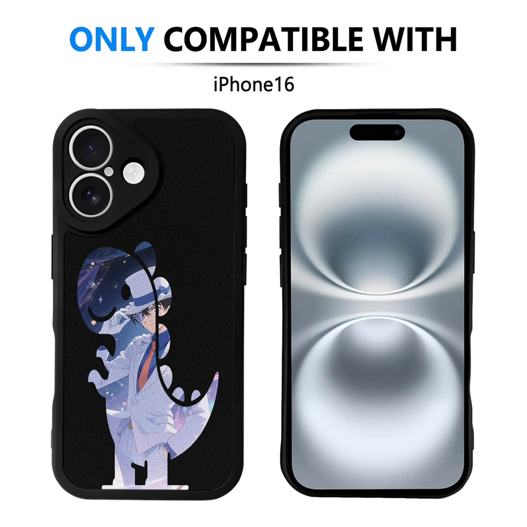 名探偵コナン グッズ 江戸川 コナン - IPhone 16シリーズ対応 ・ シリコンスマホケース ・ レザー調 ・ 高精度フィット ・ 耐衝撃 ・ ワイヤレス充電対応 ・ 精密カット