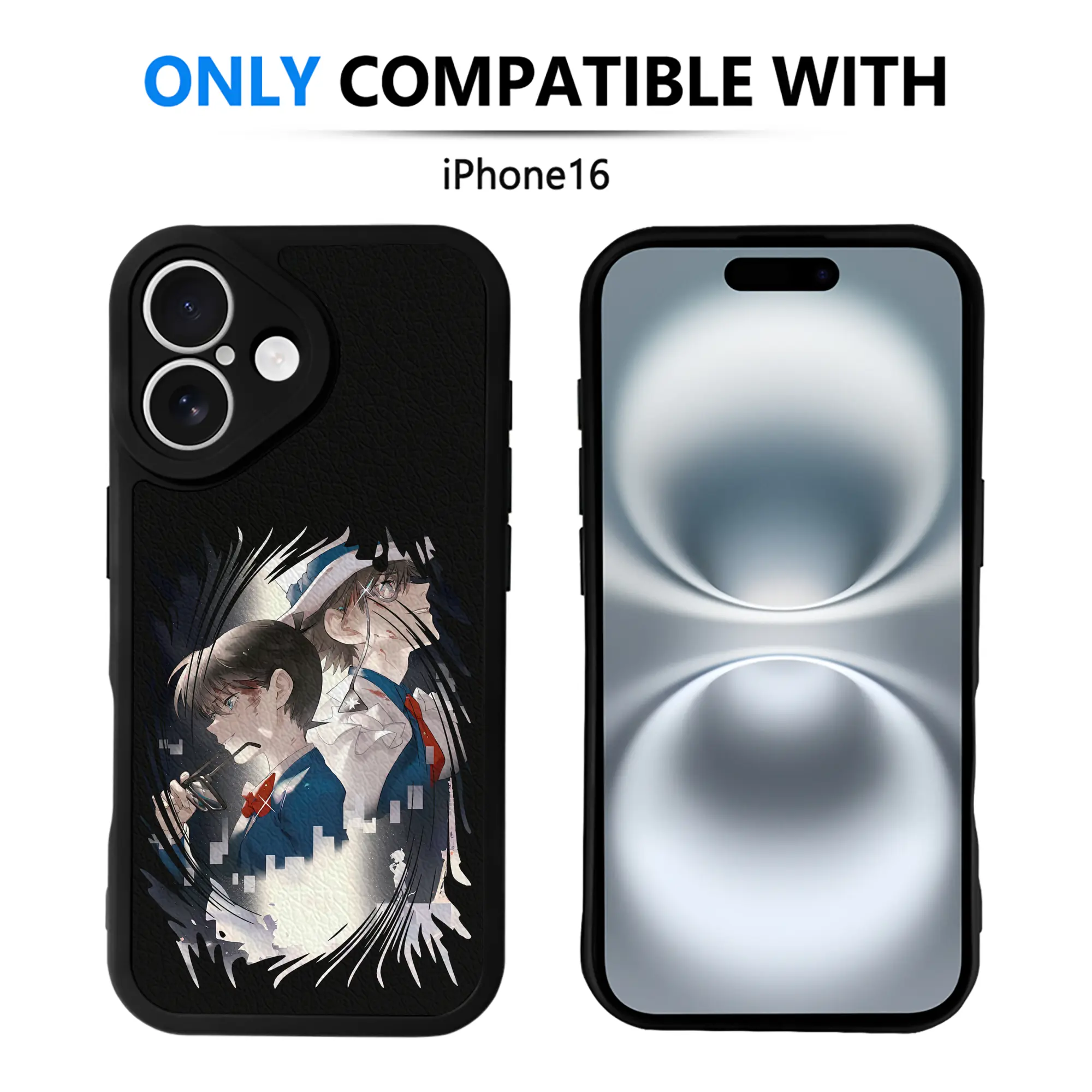 名探偵コナン グッズ 江戸川 コナン - IPhone 16シリーズ対応 ・ シリコンスマホケース ・ レザー調 ・ 高精度フィット ・ 耐衝撃 ・ ワイヤレス充電対応 ・ 精密カット