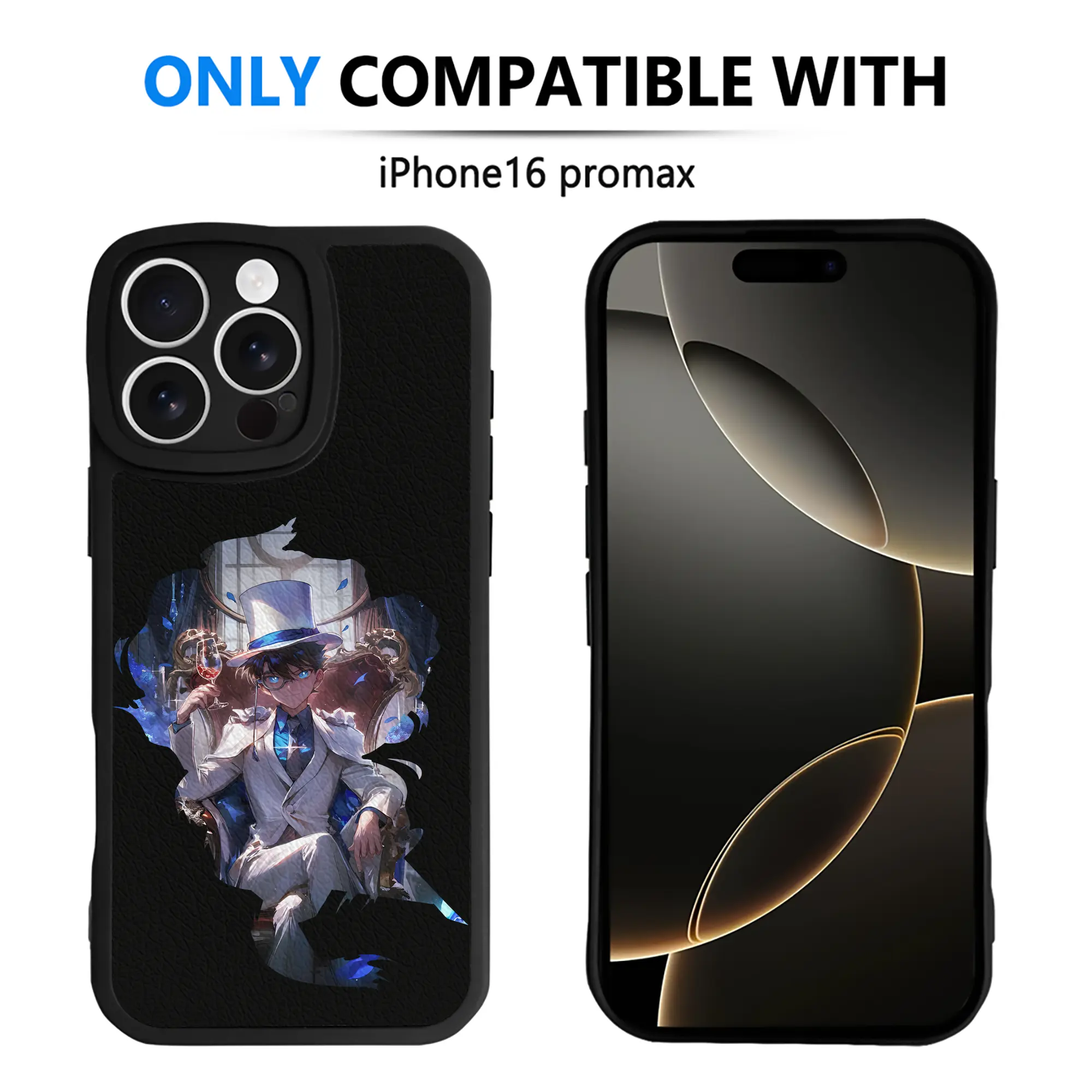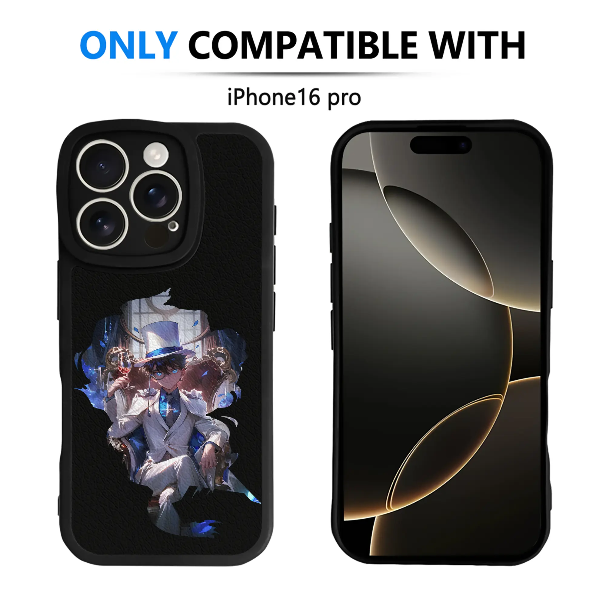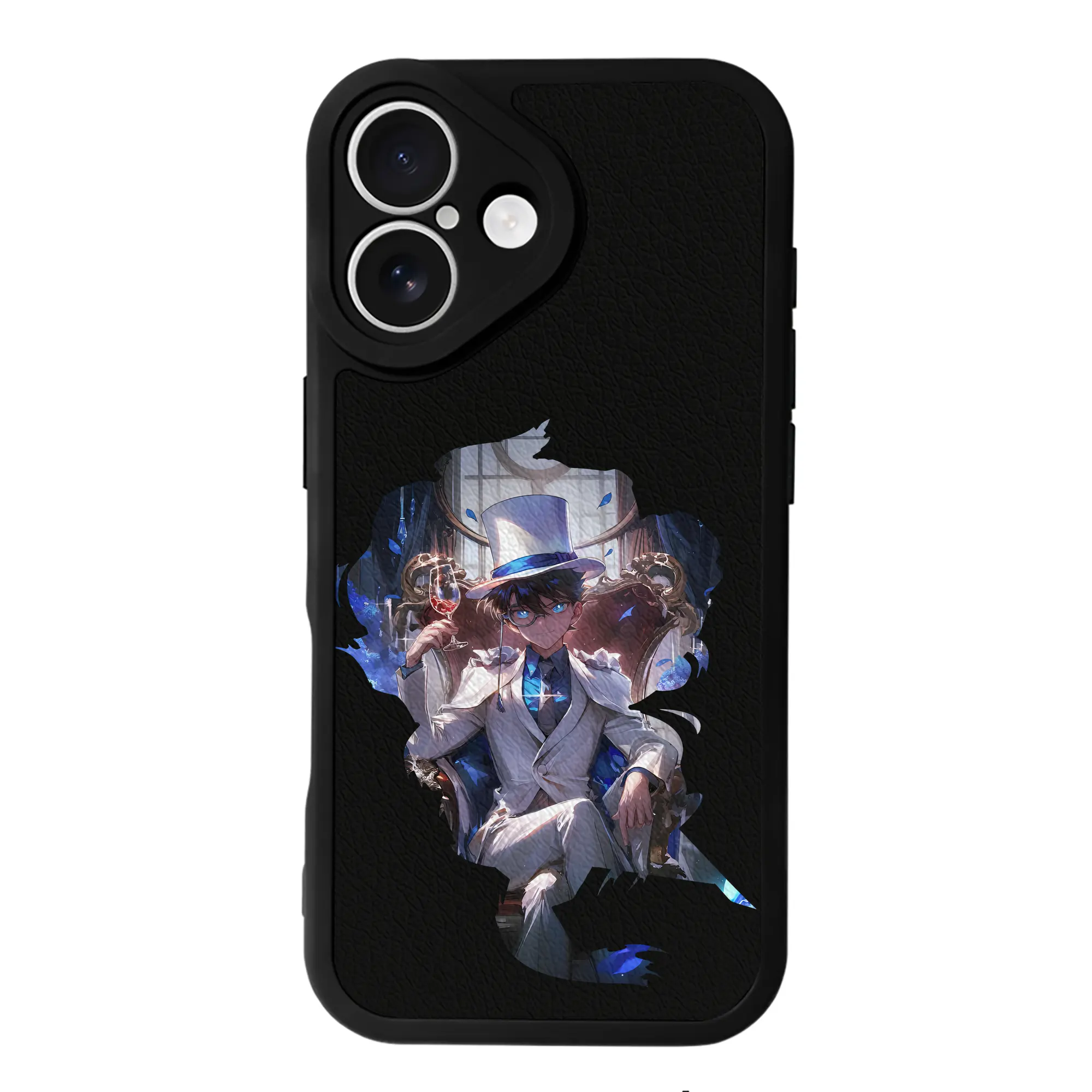 名探偵コナン グッズ 江戸川 コナン - IPhone 16シリーズ対応 ・ シリコンスマホケース ・ レザー調 ・ 高精度フィット ・ 耐衝撃 ・ ワイヤレス充電対応 ・ 精密カット