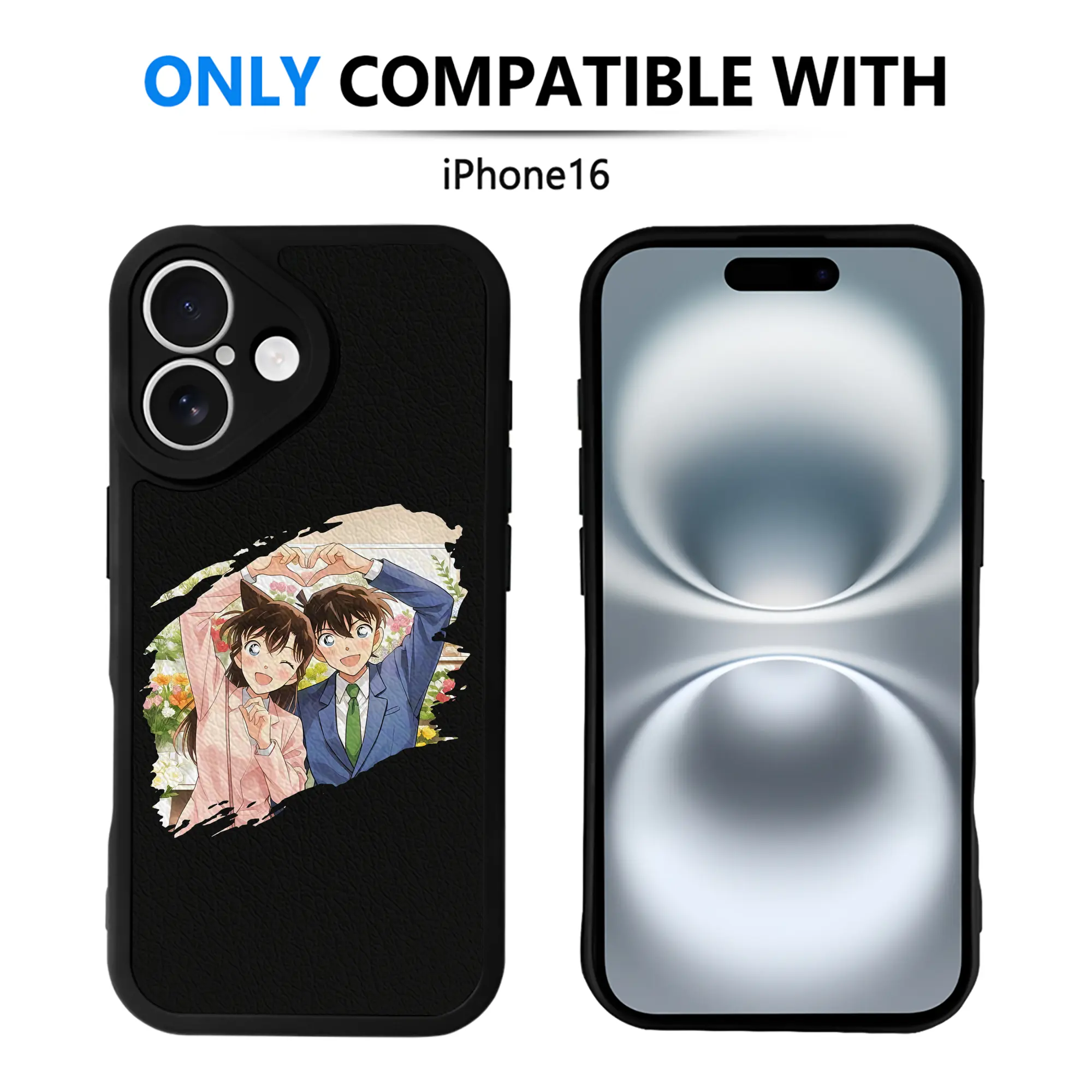 名探偵コナン グッズ 江戸川 コナン - IPhone 16シリーズ対応 ・ シリコンスマホケース ・ レザー調 ・ 高精度フィット ・ 耐衝撃 ・ ワイヤレス充電対応 ・ 精密カット