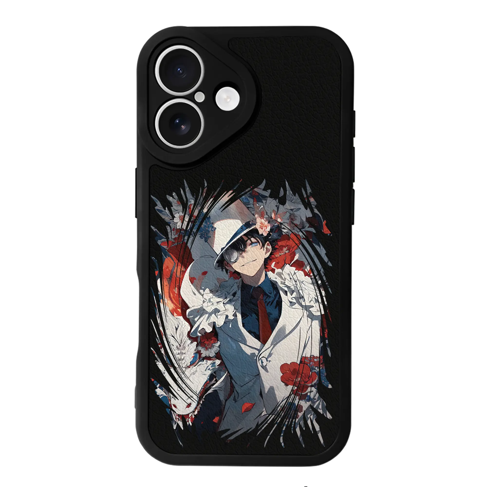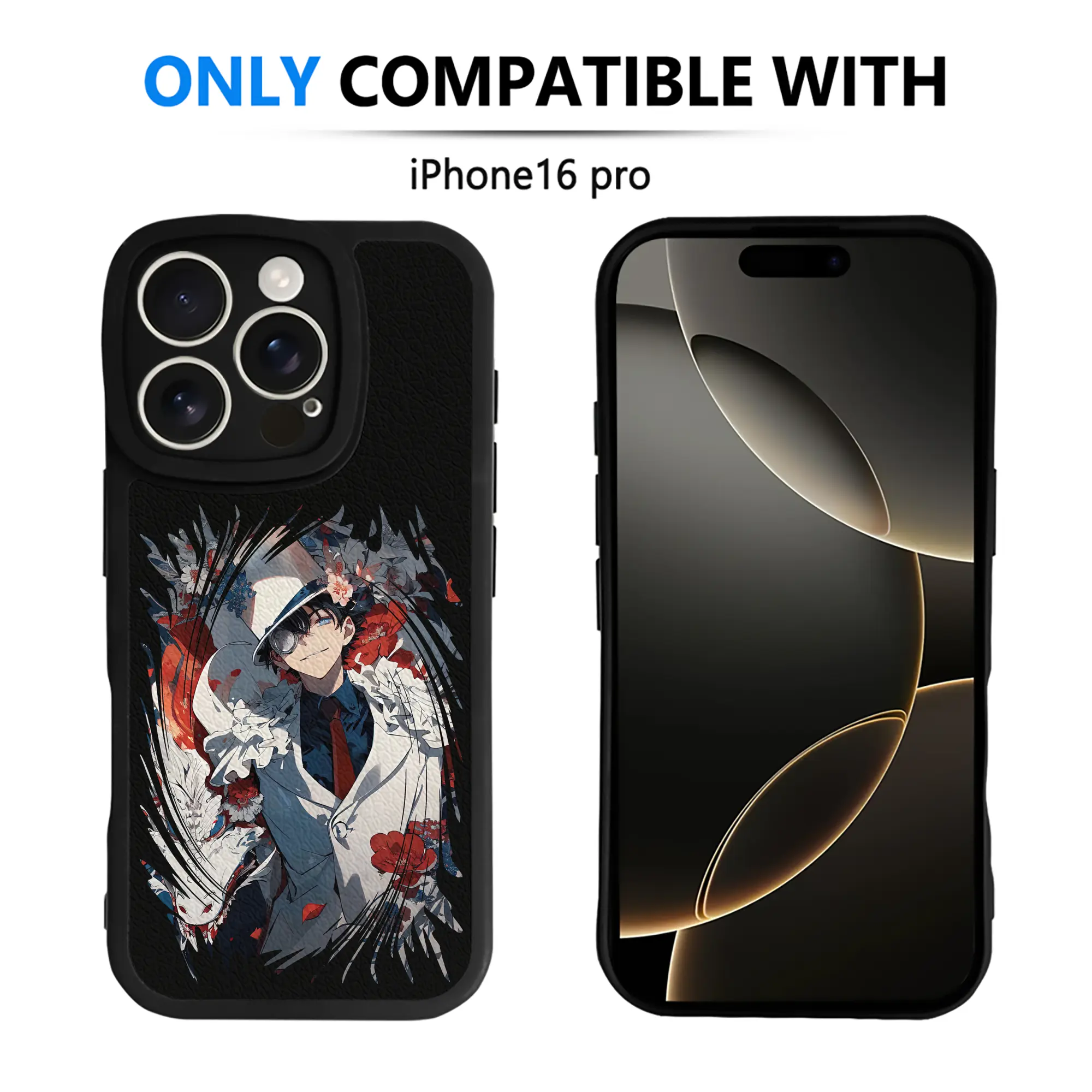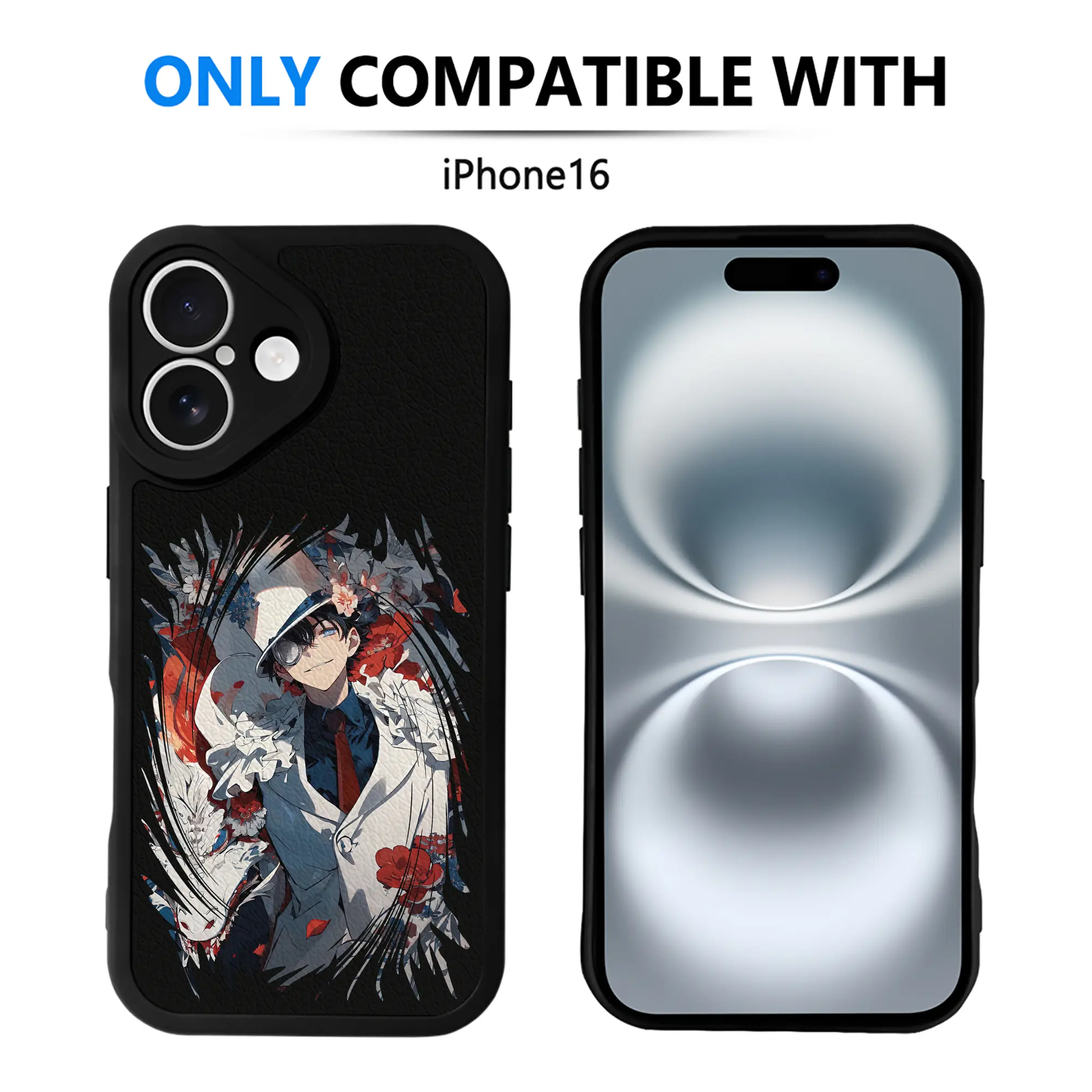 名探偵コナン グッズ 江戸川 コナン - IPhone 16シリーズ対応 ・ シリコンスマホケース ・ レザー調 ・ 高精度フィット ・ 耐衝撃 ・ ワイヤレス充電対応 ・ 精密カット