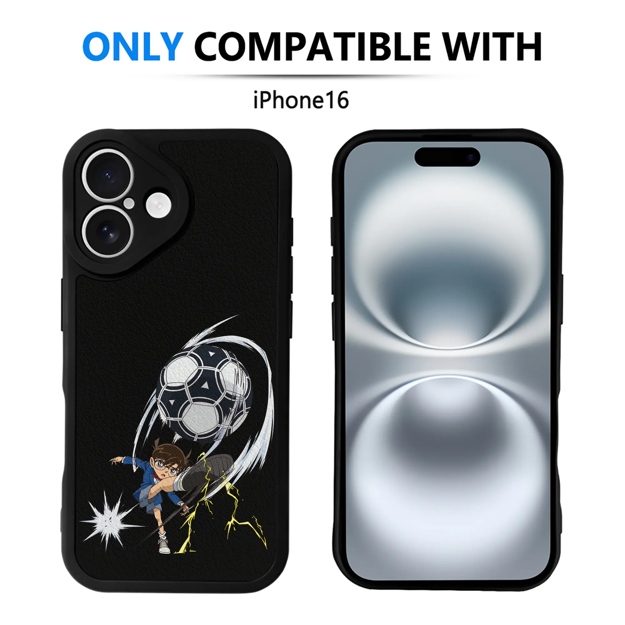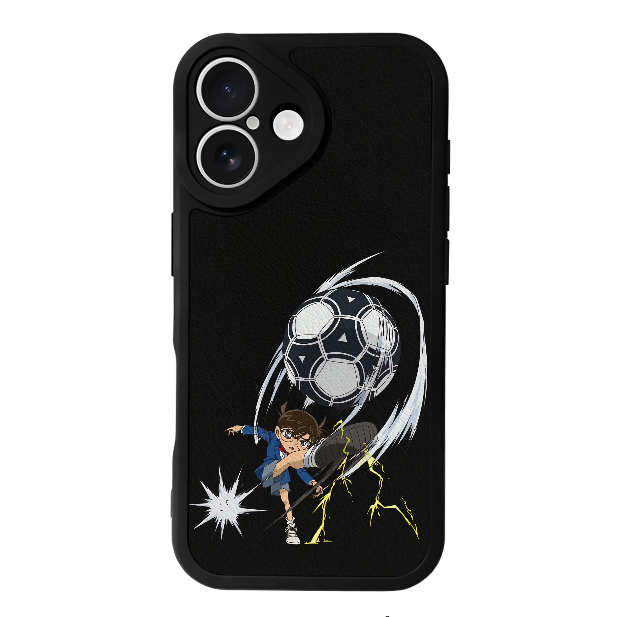 名探偵コナン グッズ 江戸川 コナン - IPhone 16シリーズ対応 ・ シリコンスマホケース ・ レザー調 ・ 高精度フィット ・ 耐衝撃 ・ ワイヤレス充電対応 ・ 精密カット