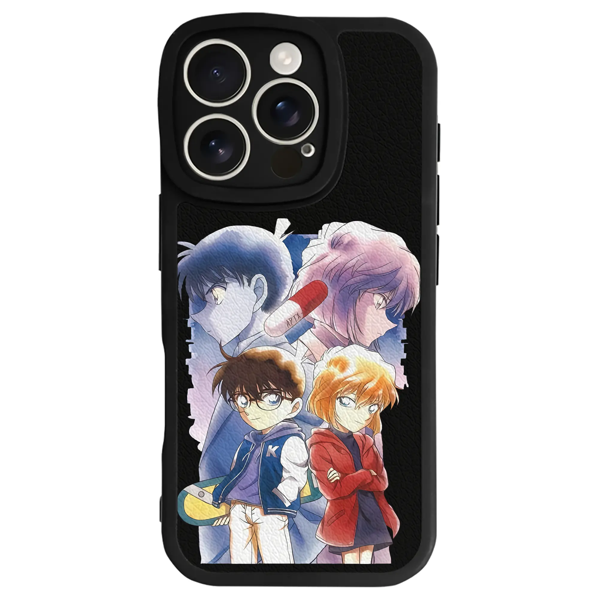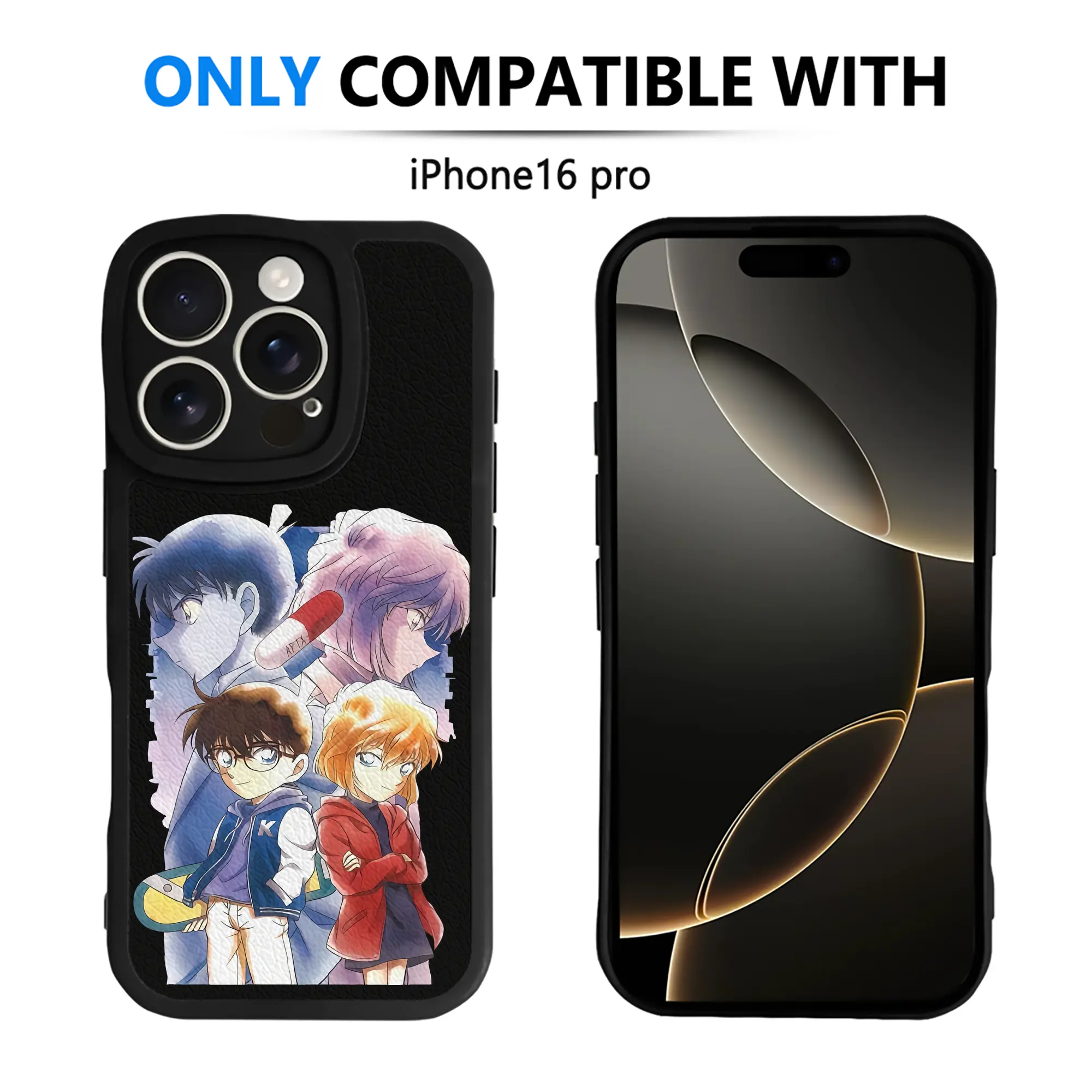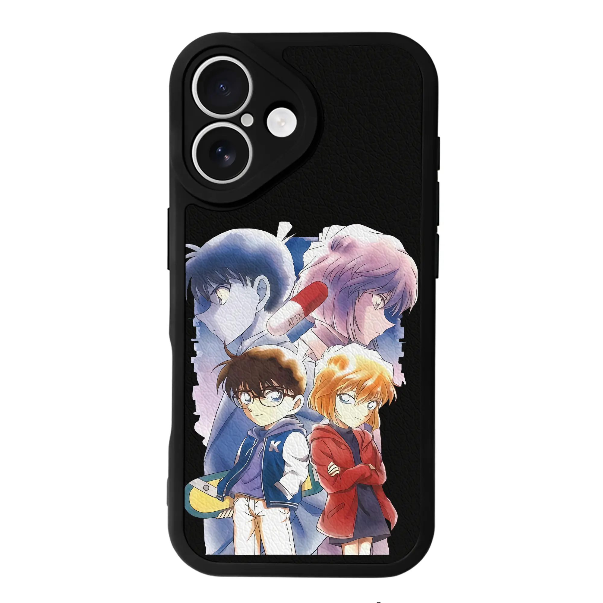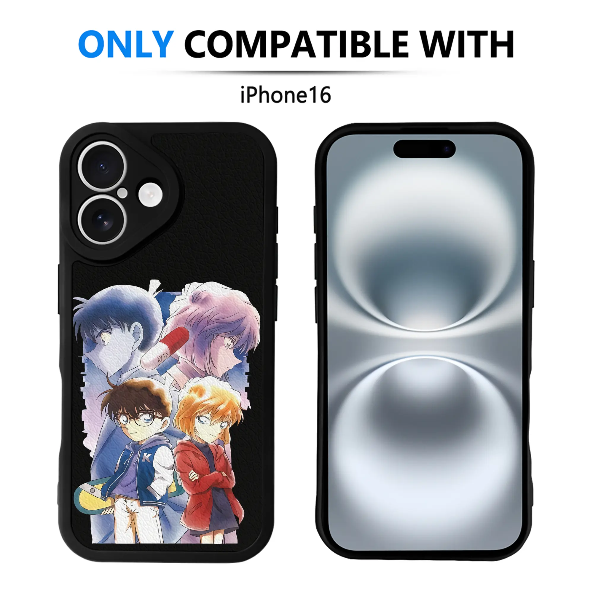 名探偵コナン グッズ 江戸川 コナン - IPhone 16シリーズ対応 ・ シリコンスマホケース ・ レザー調 ・ 高精度フィット ・ 耐衝撃 ・ ワイヤレス充電対応 ・ 精密カット