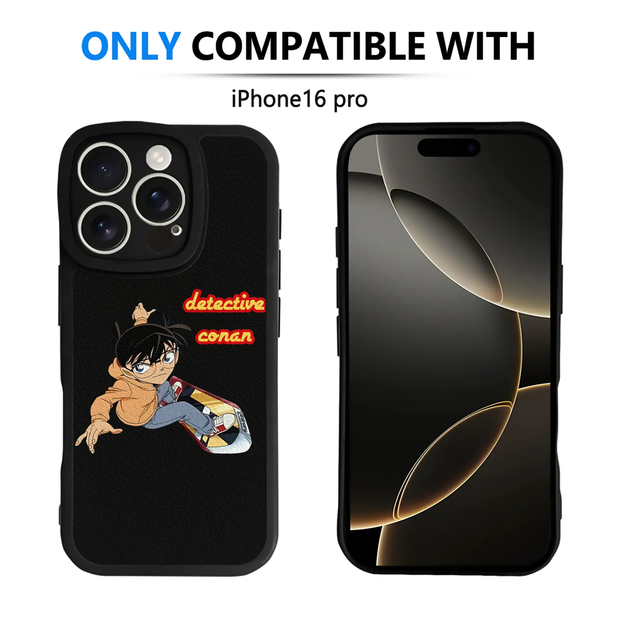 名探偵コナン グッズ 江戸川 コナン - IPhone 16シリーズ対応 ・ シリコンスマホケース ・ レザー調 ・ 高精度フィット ・ 耐衝撃 ・ ワイヤレス充電対応 ・ 精密カット