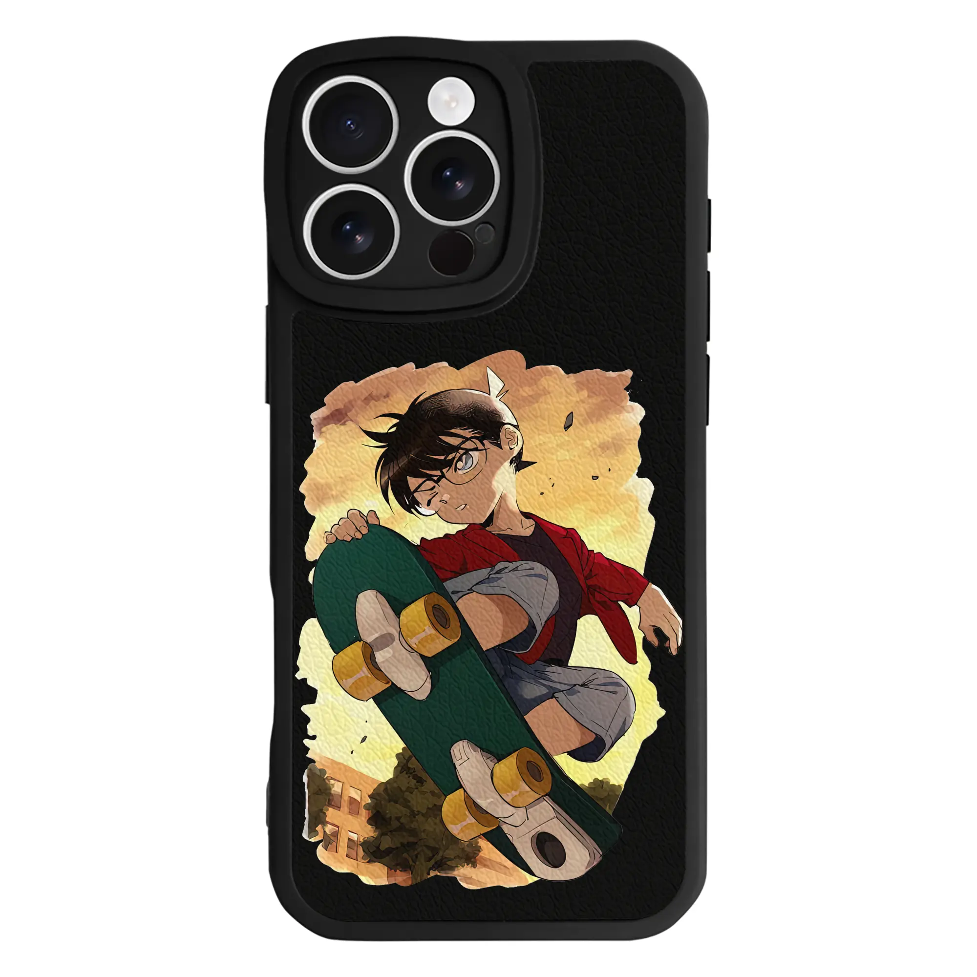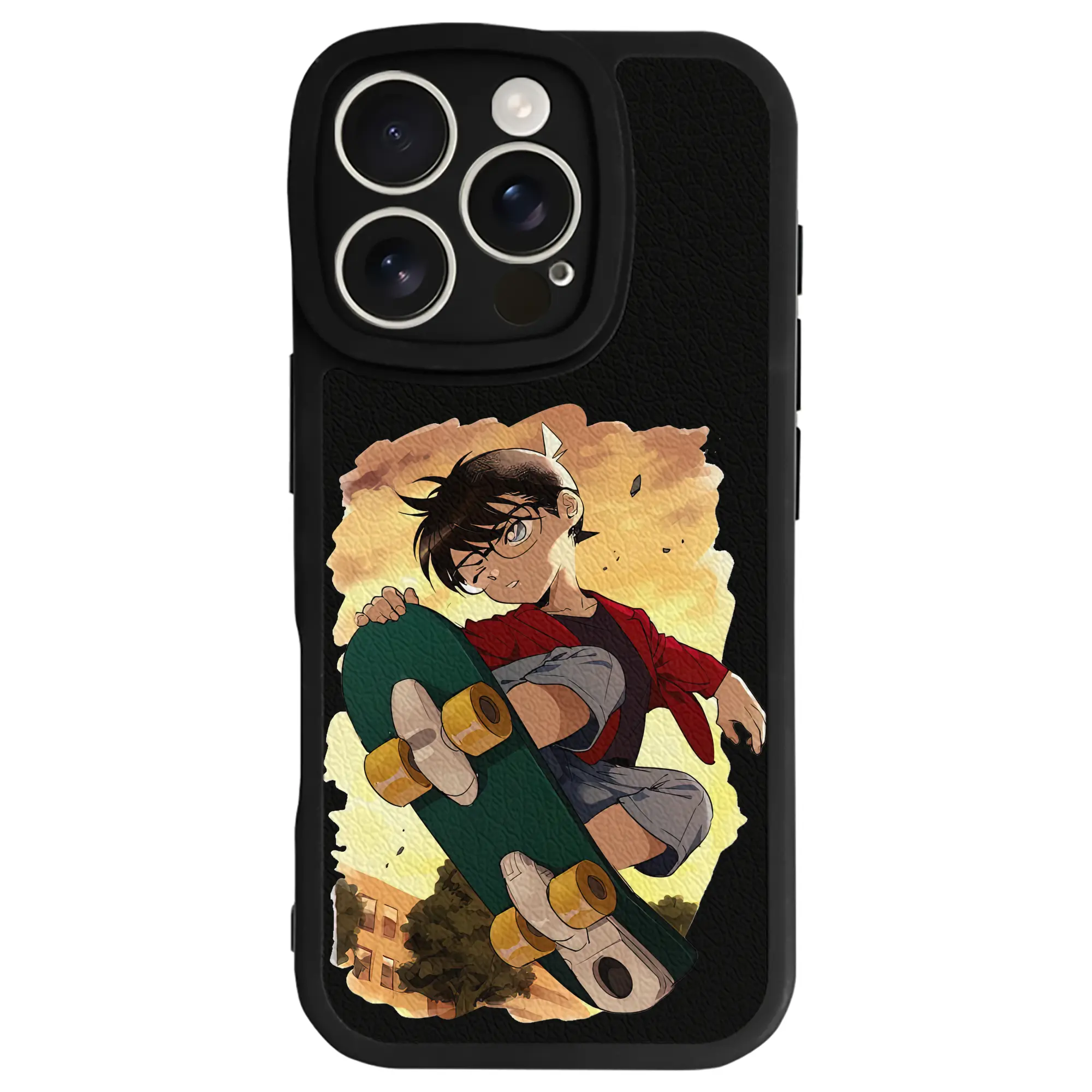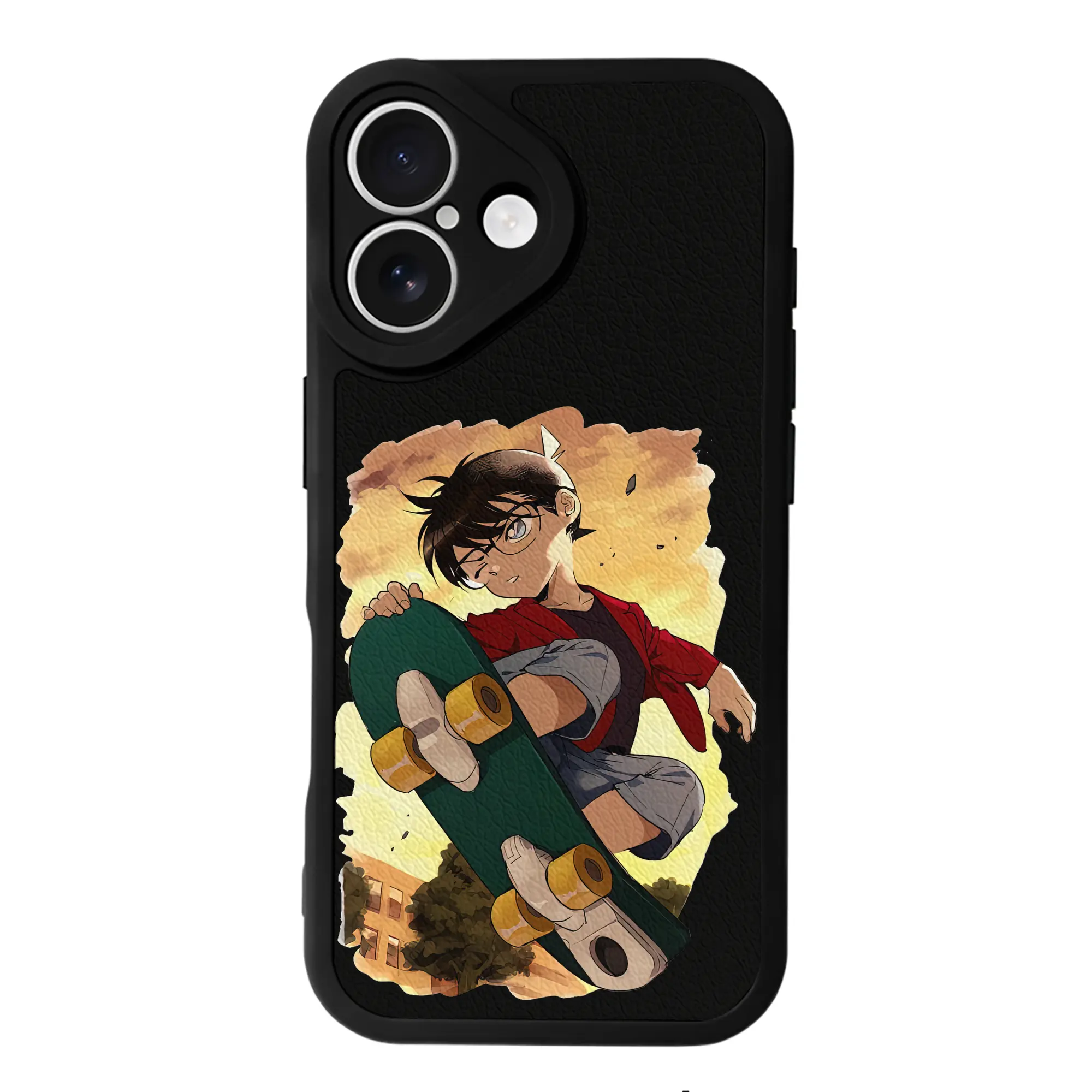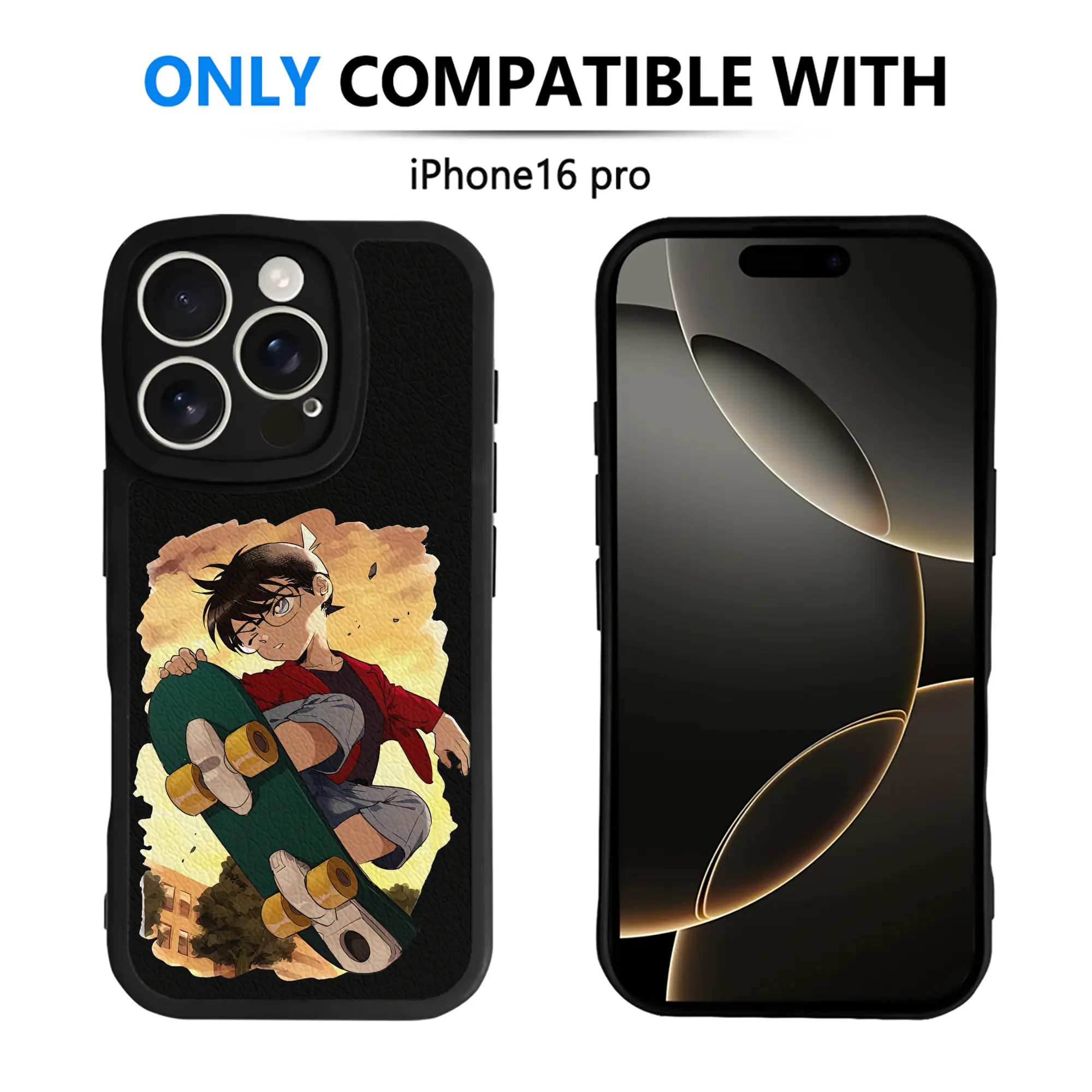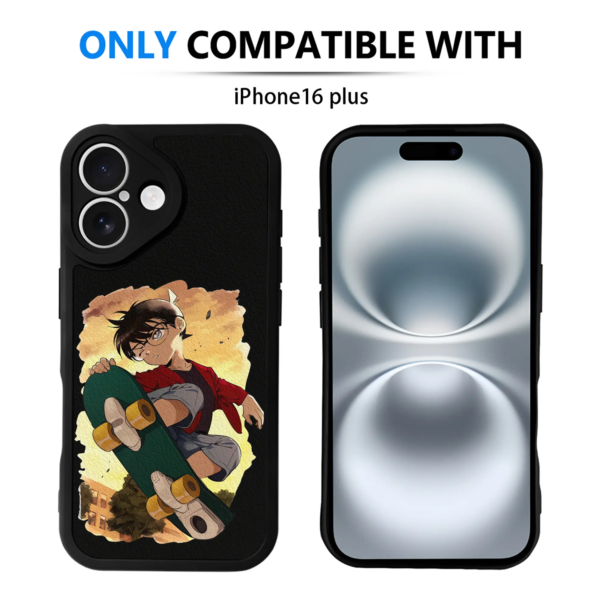 名探偵コナン グッズ 江戸川 コナン - IPhone 16シリーズ対応 ・ シリコンスマホケース ・ レザー調 ・ 高精度フィット ・ 耐衝撃 ・ ワイヤレス充電対応 ・ 精密カット