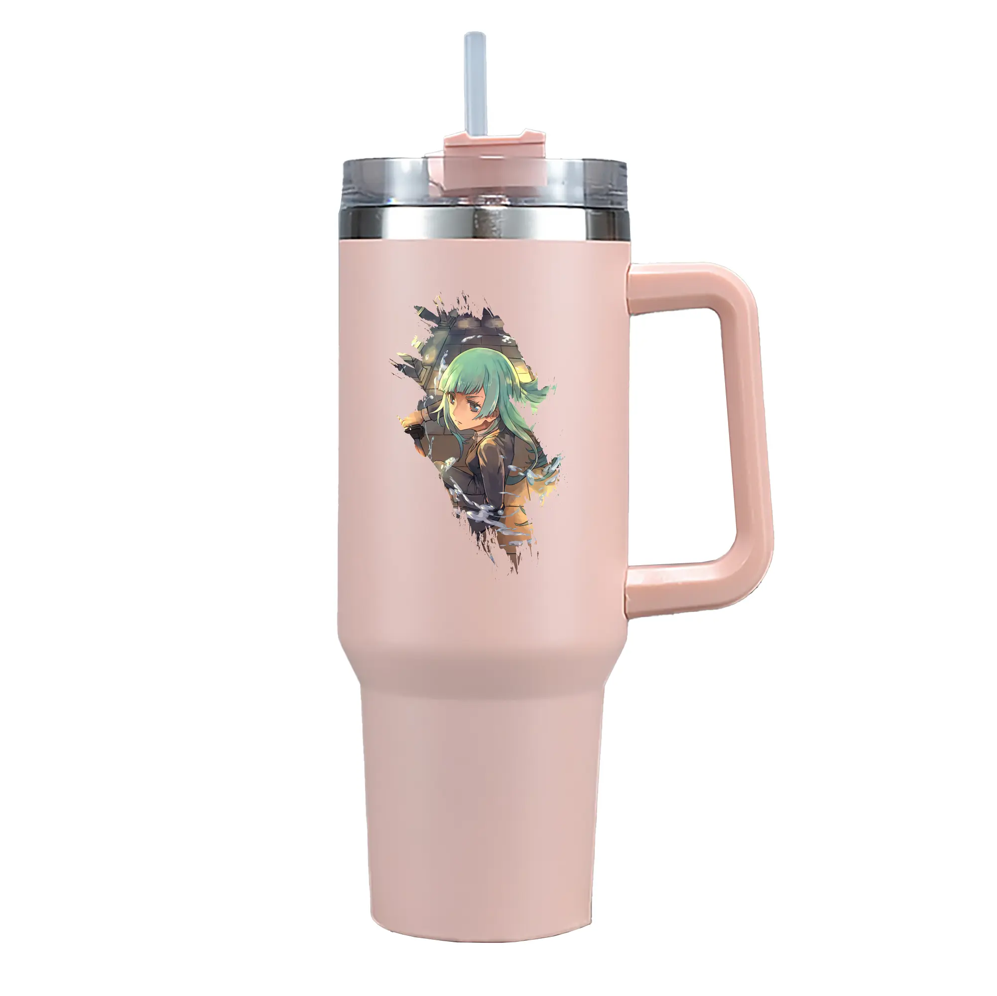 呪術廻戦 グッズ,三輪 霞 - 1200mL 車用タンブラー ・ クリスタルステッカー ・ 304ステンレス 内側 ・ 201ステンレス 外側 ・ 保温 保冷 ・ ハンドル&ストロー付き ・ 通勤 ドライブ アウトドア用