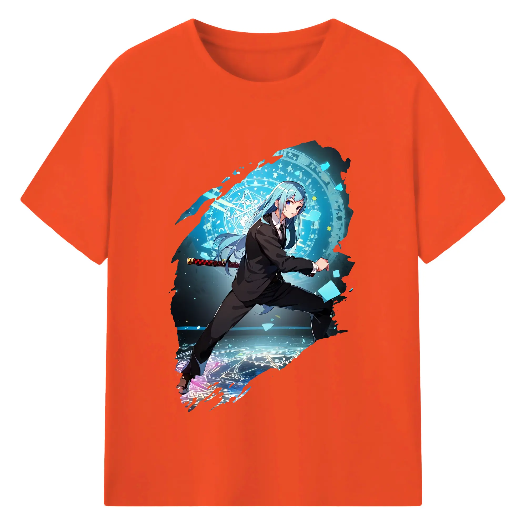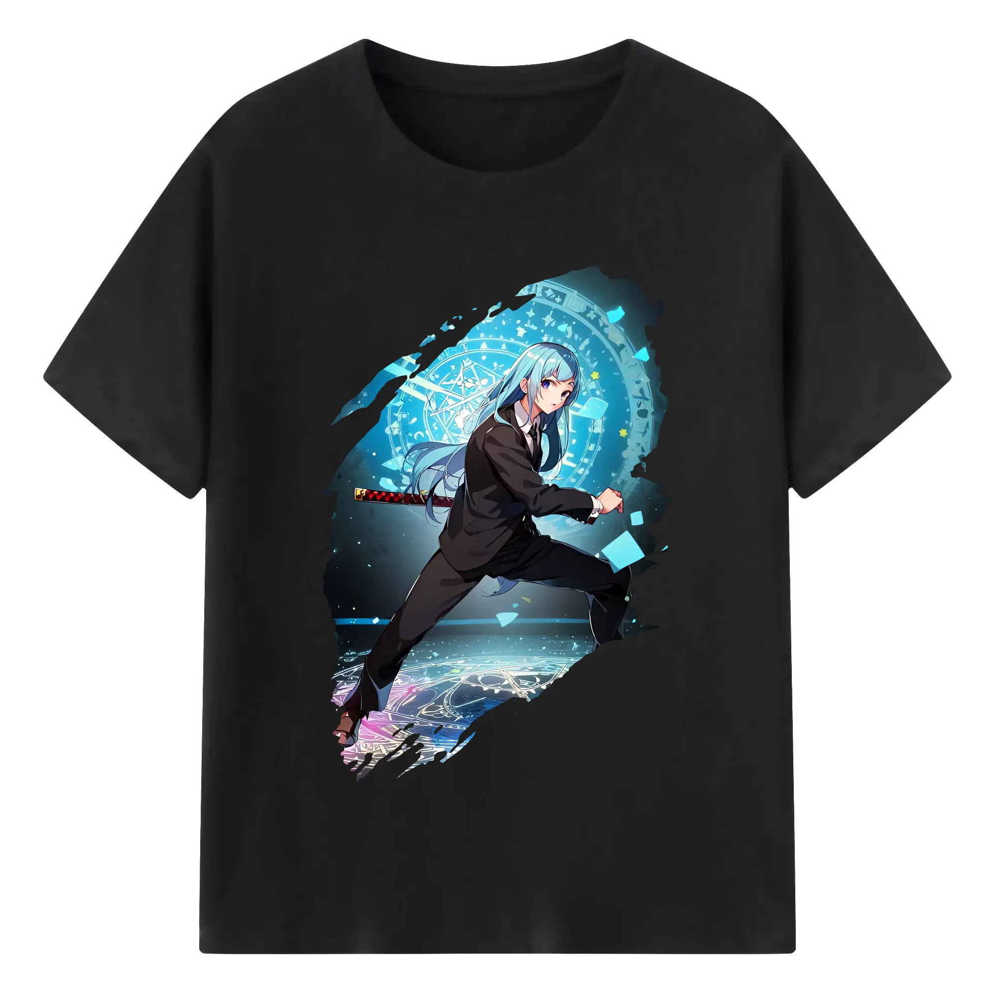 ブリーチ グッズ 黒崎 一護 - 綿100% 半袖Tシャツ ・ フロントプリント ・ 快適 通気性 ・ 日常使い 散歩 スポーツ用