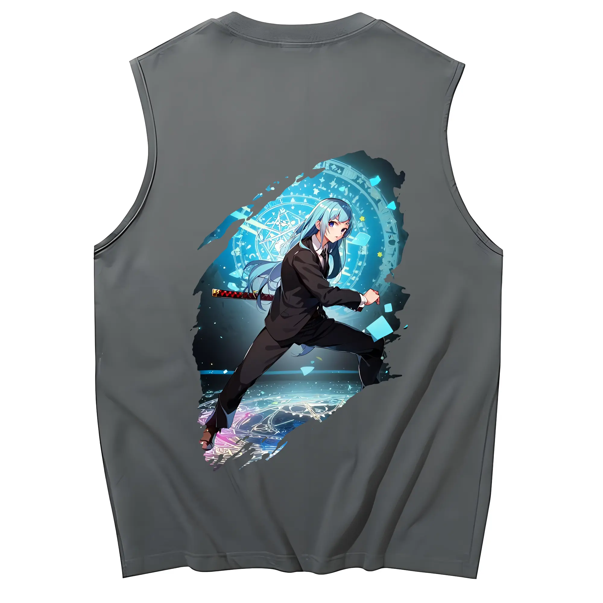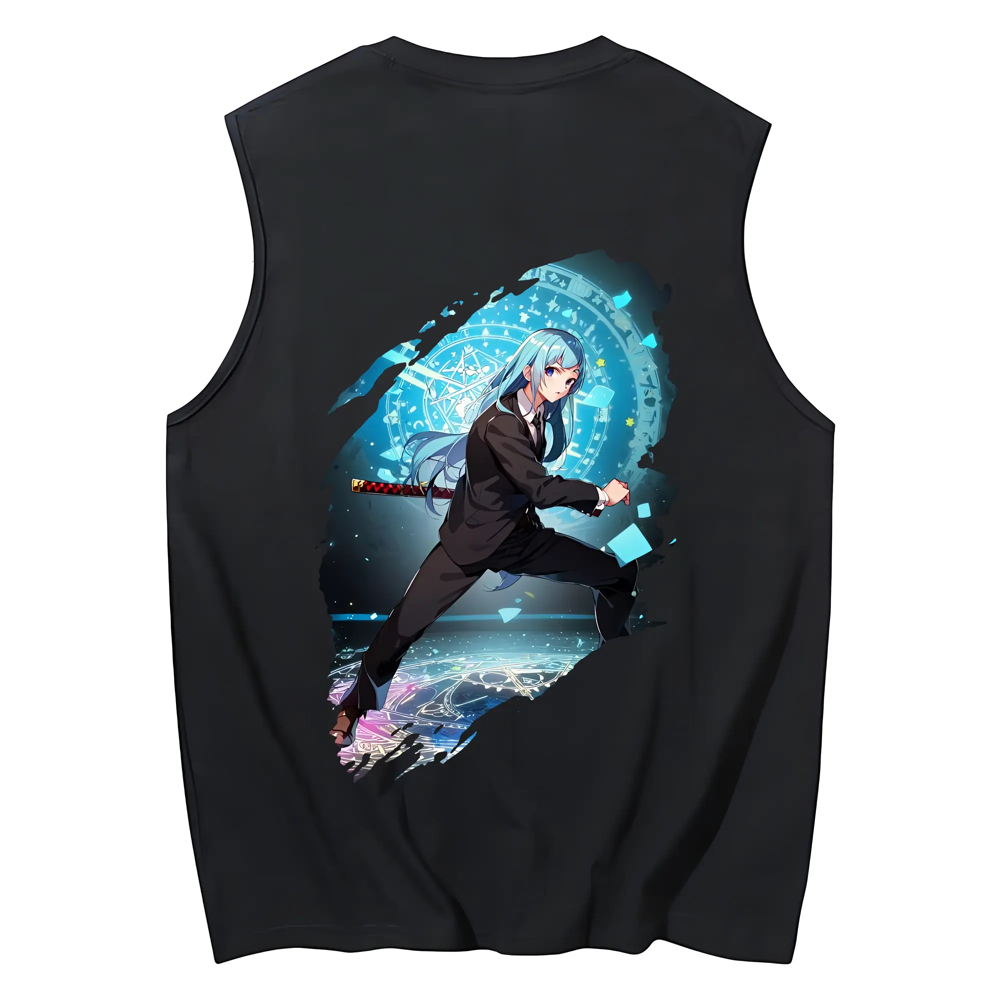 呪術廻戦 グッズ,三輪 霞 - コットン100% タンクトップ ・ 背面プリント ・ タイトシルエット ・ 快適 通気性 ・ スポーツ カジュアル 散歩用