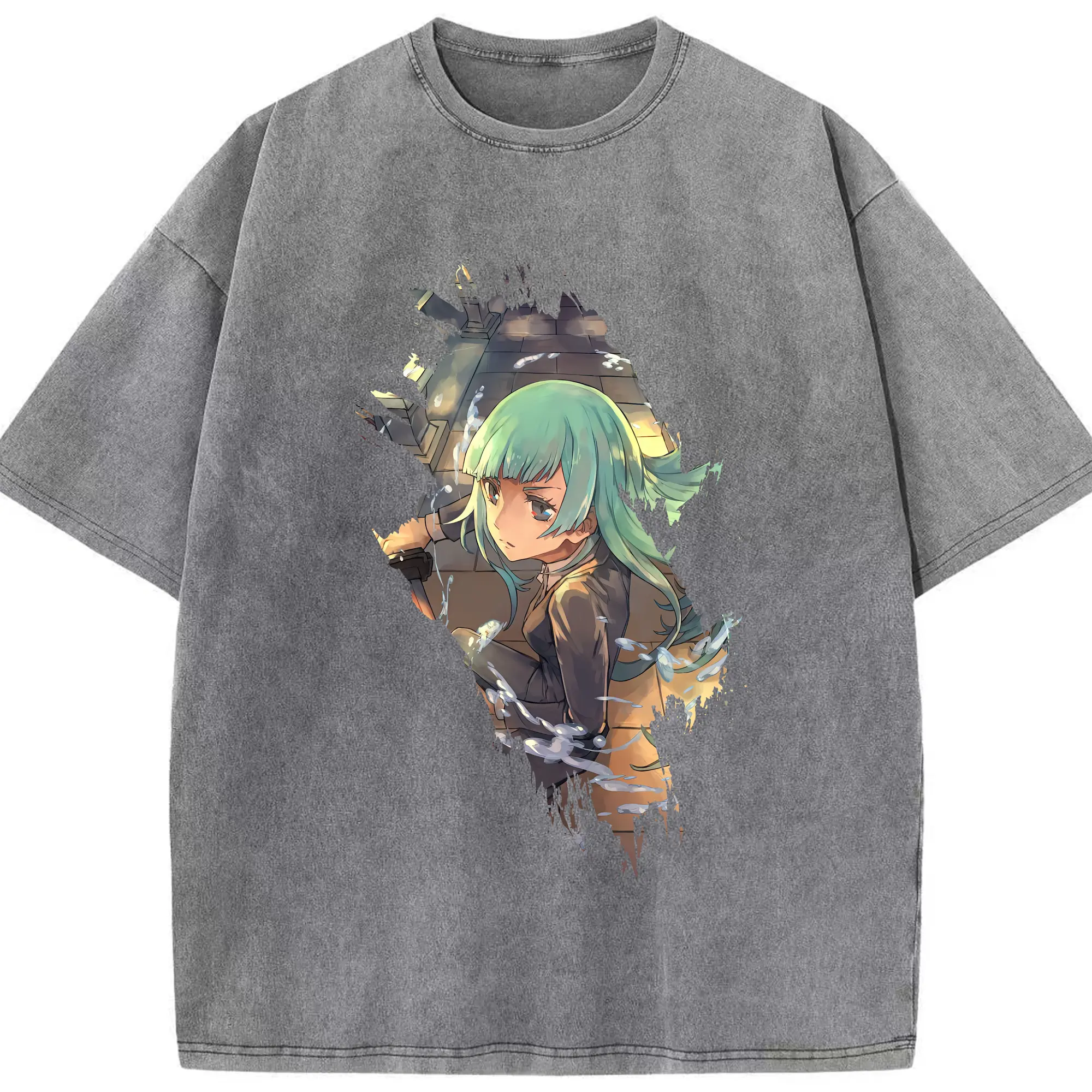 ドクターストーン グッズ,ゲン 銀狼 - 綿100% ヴィンテージ風 半袖Tシャツ ・ フロントプリント ・ 柔らか肌触り ・ 通気性 快適 ・ スポーツ カジュアル 外出用