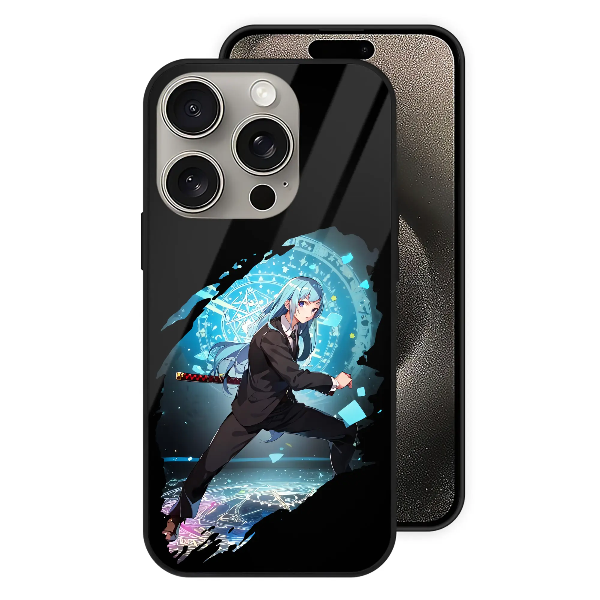呪術廻戦 グッズ,三輪 霞 - IPhone15Pro対応 ・ スマホケース ・ 背面ガラス ・ TPU+強化ガラス ・ 耐衝撃 ・ 黄変防止 ・ ワイヤレス充電対応 ・ 3D立体ボタン
