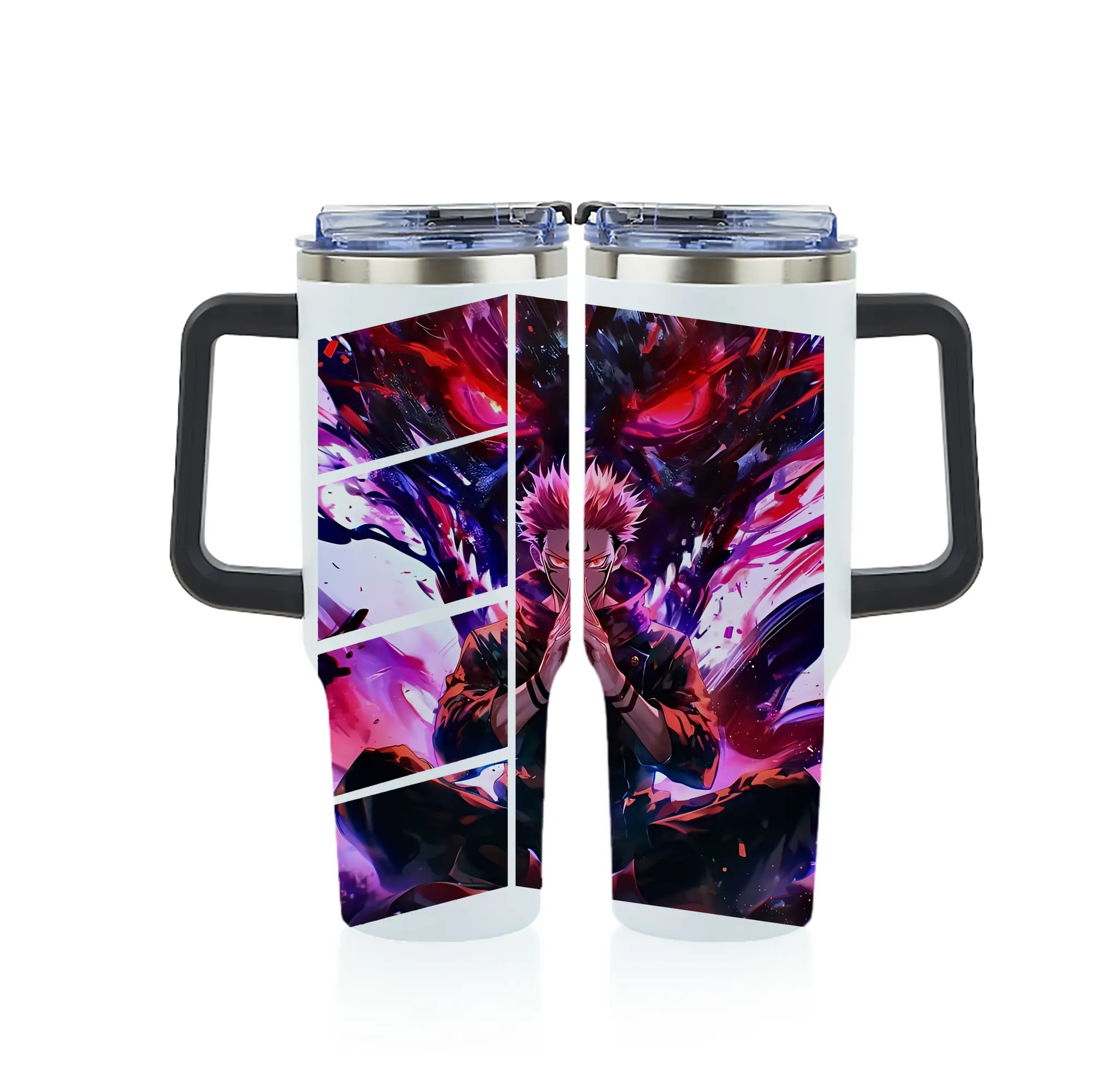 呪術廻戦 グッズ,両面宿儺 - 1200mL フルプリント車用タンブラー ・ 304ステンレス 内側 ・ 201ステンレス 外側 ・ 保温 保冷 ・ 通勤 ドライブ アウトドア用