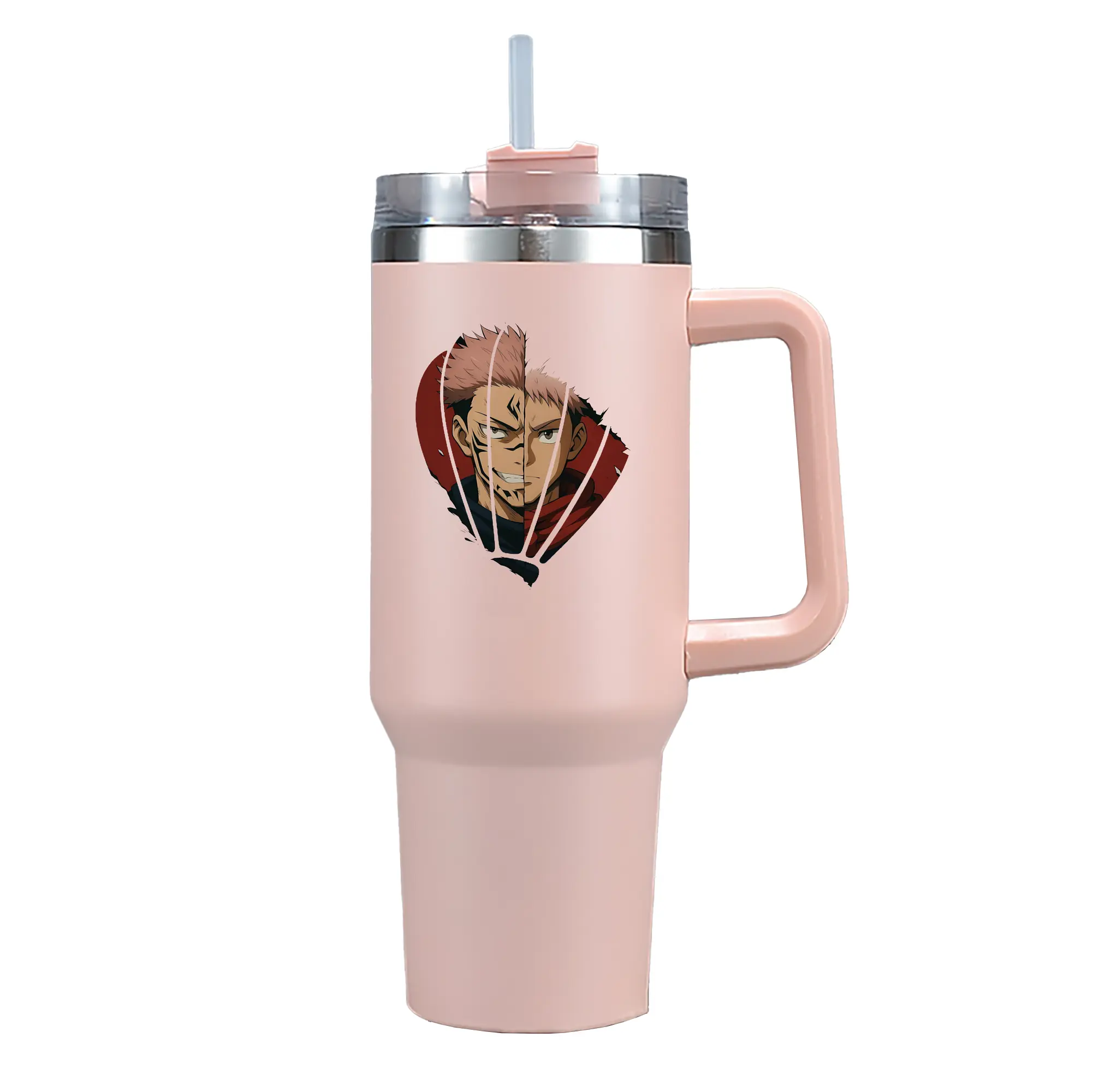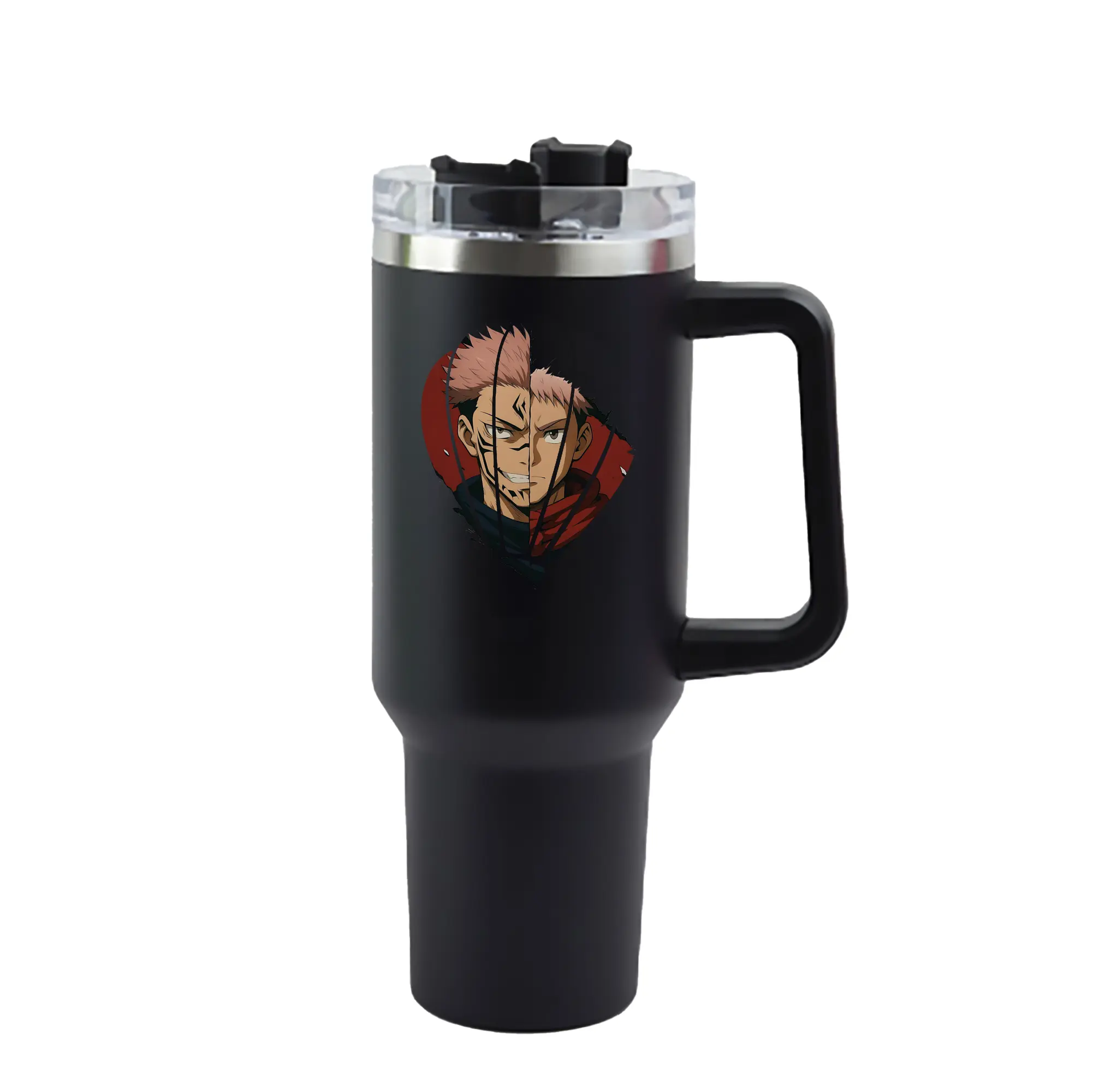 呪術廻戦 グッズ,両面宿儺 - 1200mL 車用タンブラー ・ クリスタルステッカー ・ 304ステンレス 内側 ・ 201ステンレス 外側 ・ 保温 保冷 ・ ハンドル&ストロー付き ・ 通勤 ドライブ アウトドア用