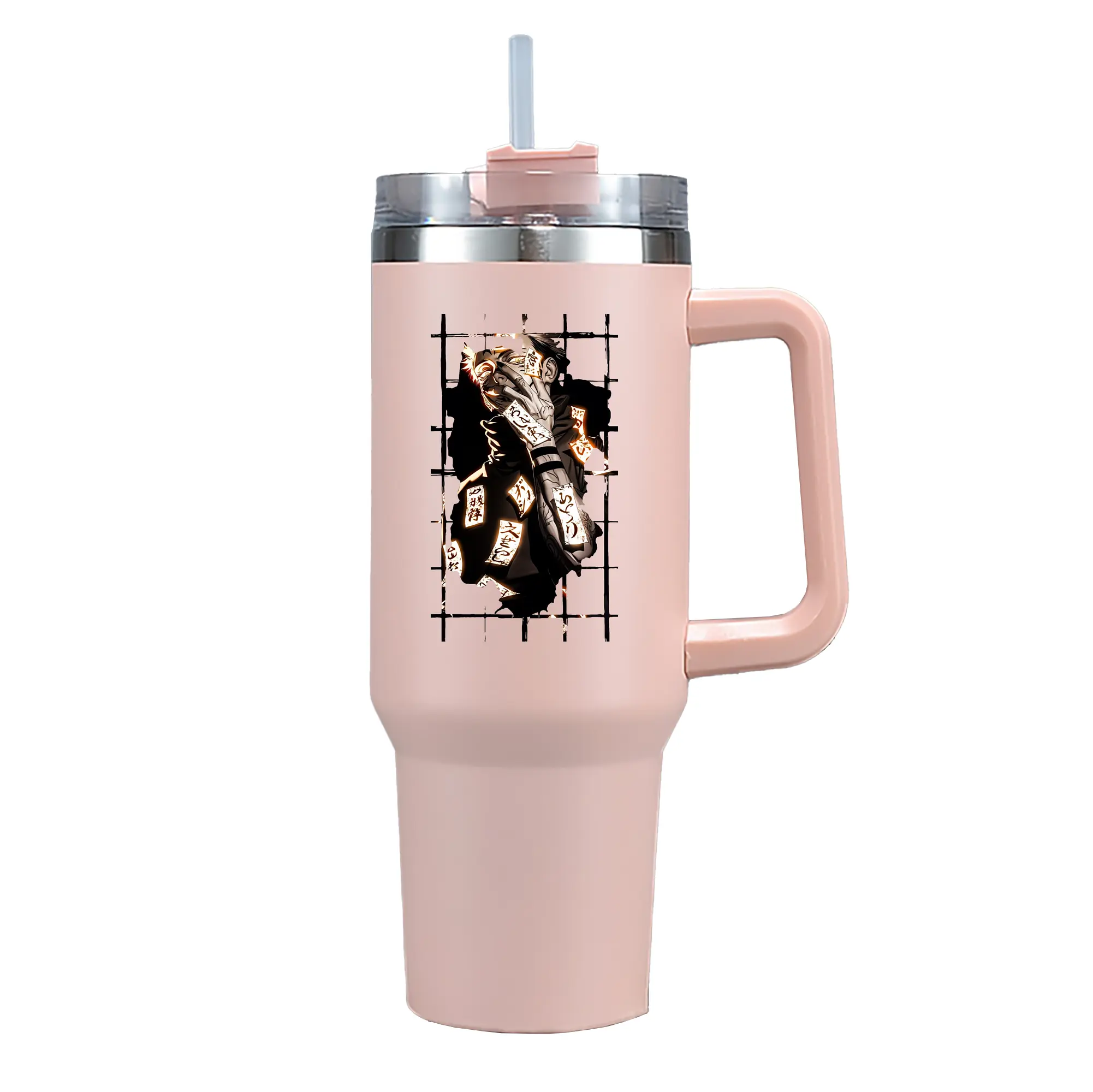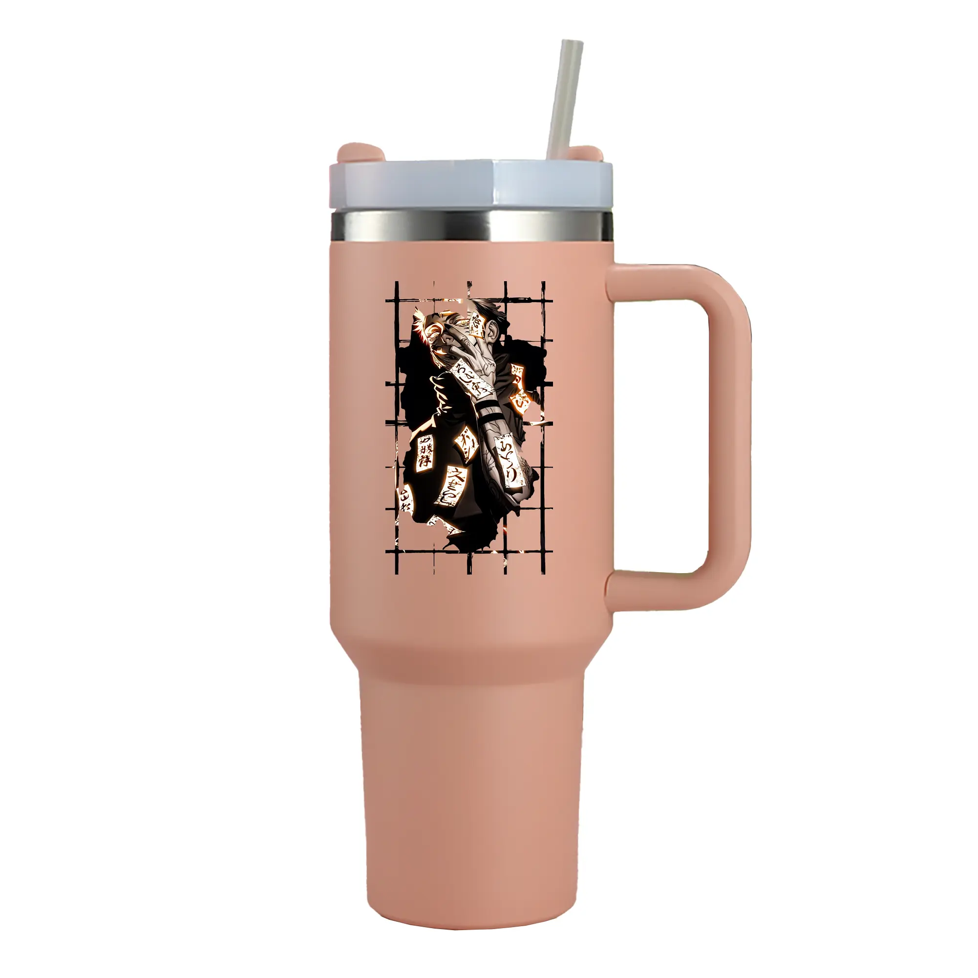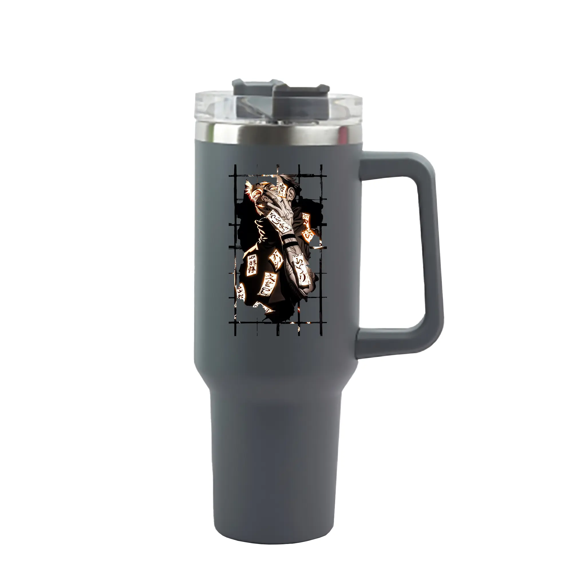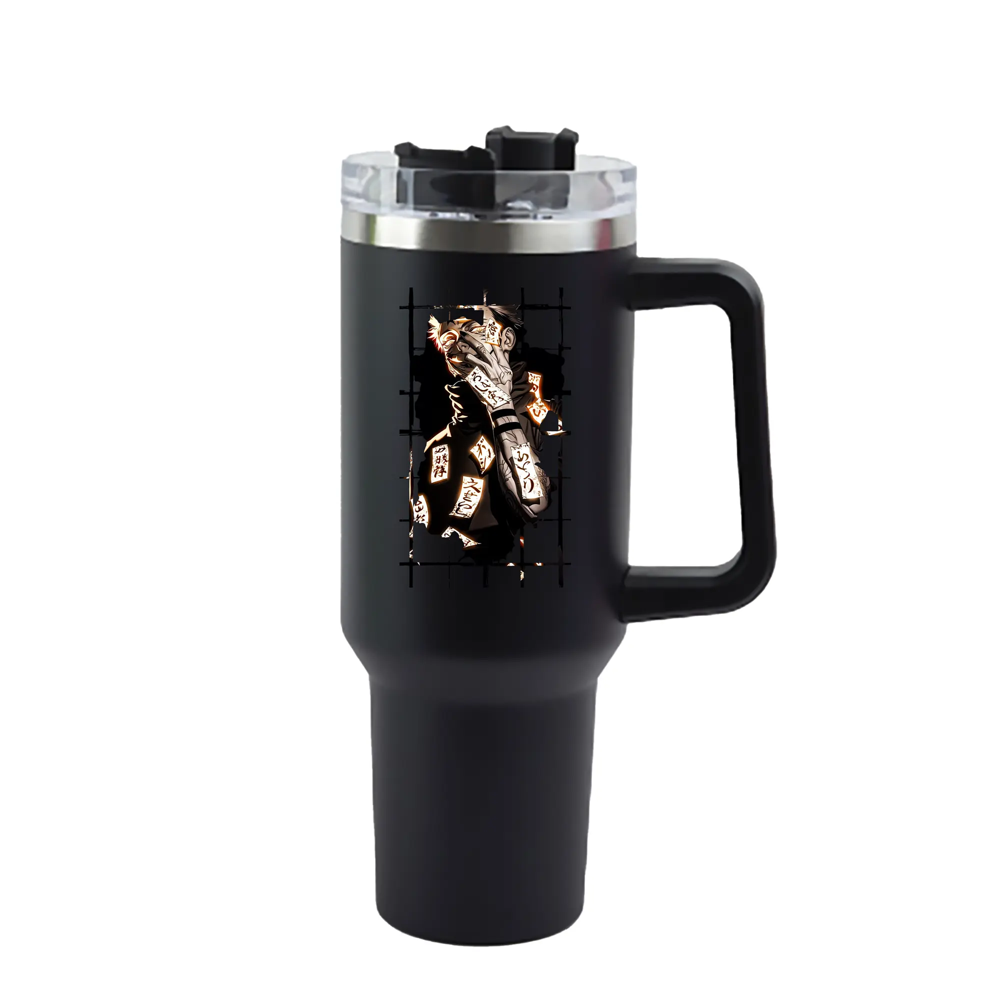 呪術廻戦 グッズ,両面宿儺 - 1200mL 車用タンブラー ・ クリスタルステッカー ・ 304ステンレス 内側 ・ 201ステンレス 外側 ・ 保温 保冷 ・ ハンドル&ストロー付き ・ 通勤 ドライブ アウトドア用