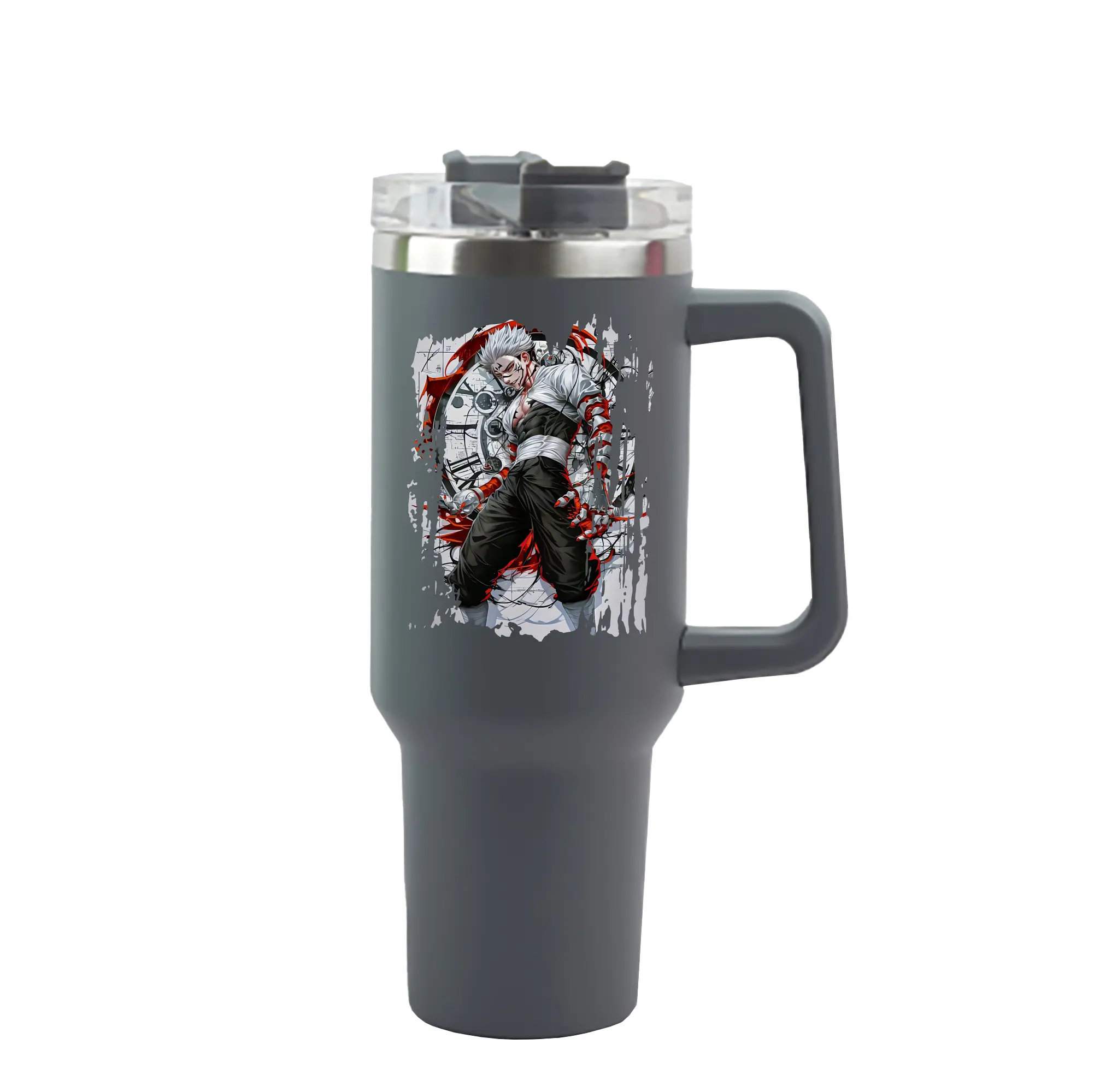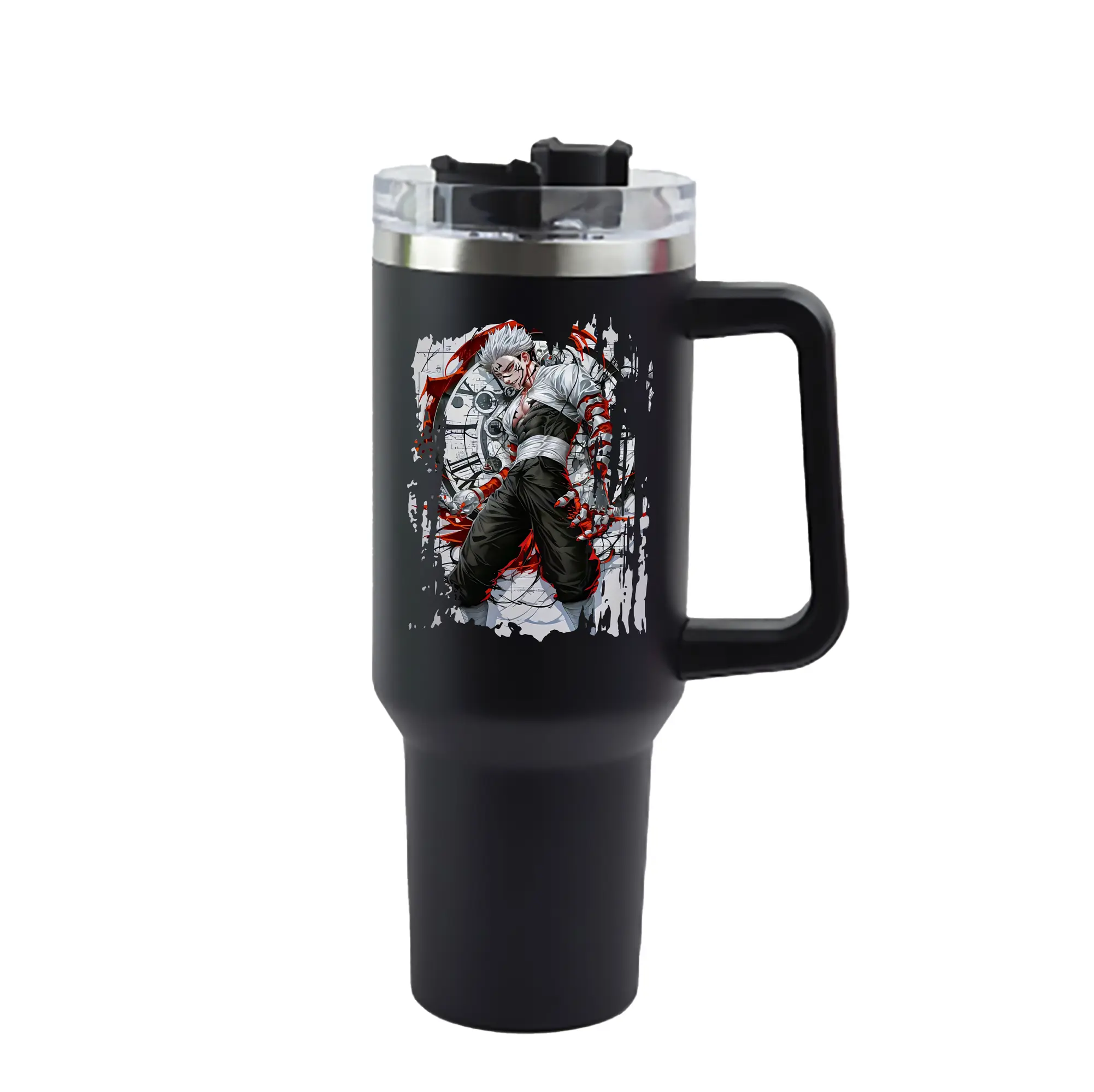 呪術廻戦 グッズ,両面宿儺 - 1200mL 車用タンブラー ・ クリスタルステッカー ・ 304ステンレス 内側 ・ 201ステンレス 外側 ・ 保温 保冷 ・ ハンドル&ストロー付き ・ 通勤 ドライブ アウトドア用