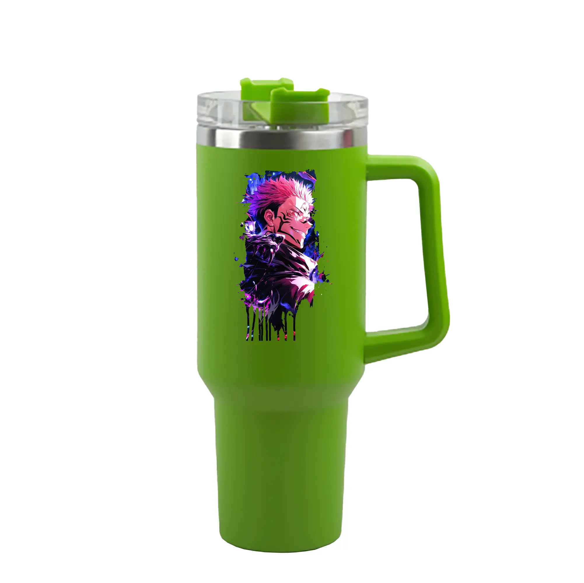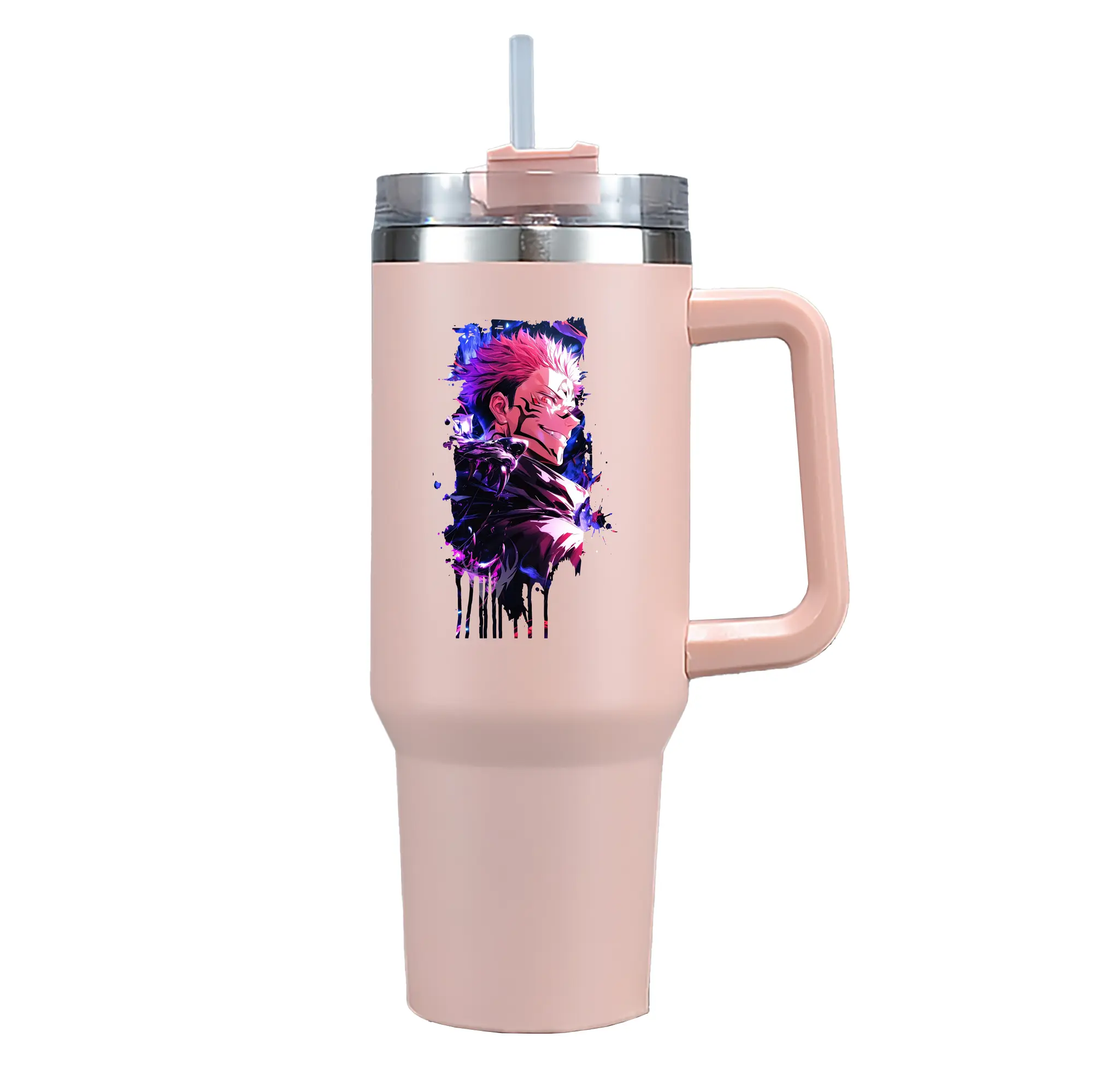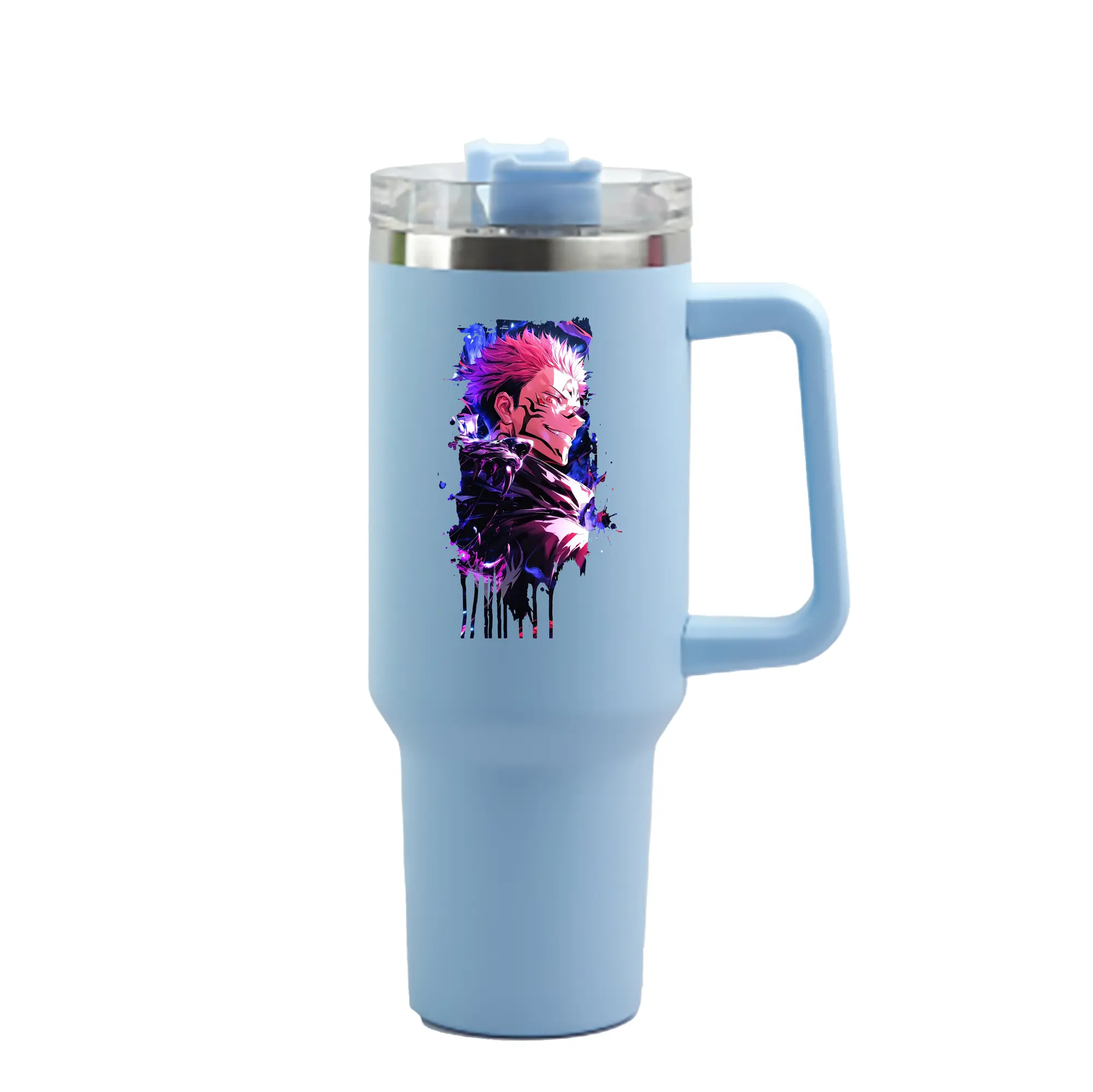 呪術廻戦 グッズ,両面宿儺 - 1200mL 車用タンブラー ・ クリスタルステッカー ・ 304ステンレス 内側 ・ 201ステンレス 外側 ・ 保温 保冷 ・ ハンドル&ストロー付き ・ 通勤 ドライブ アウトドア用