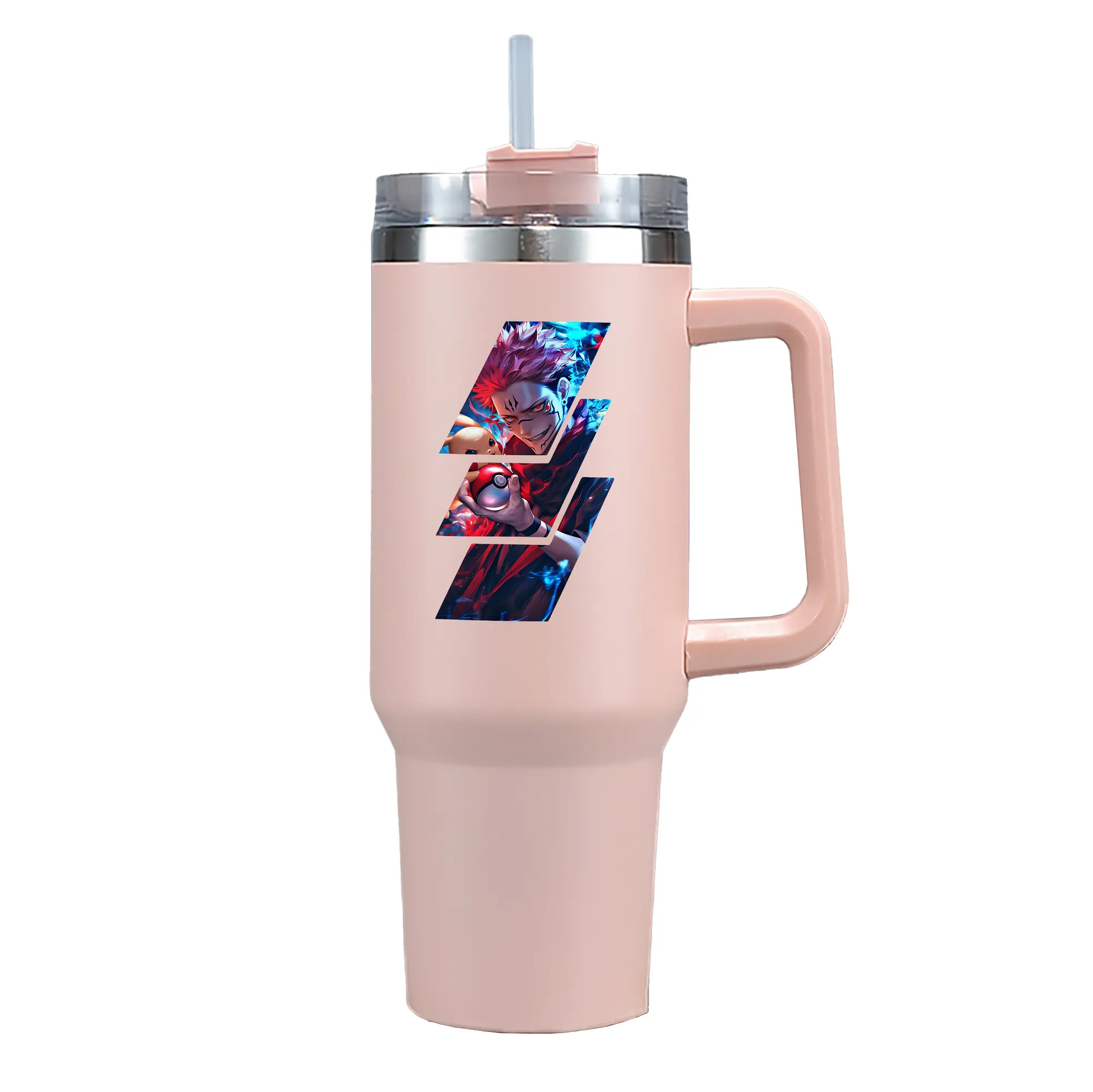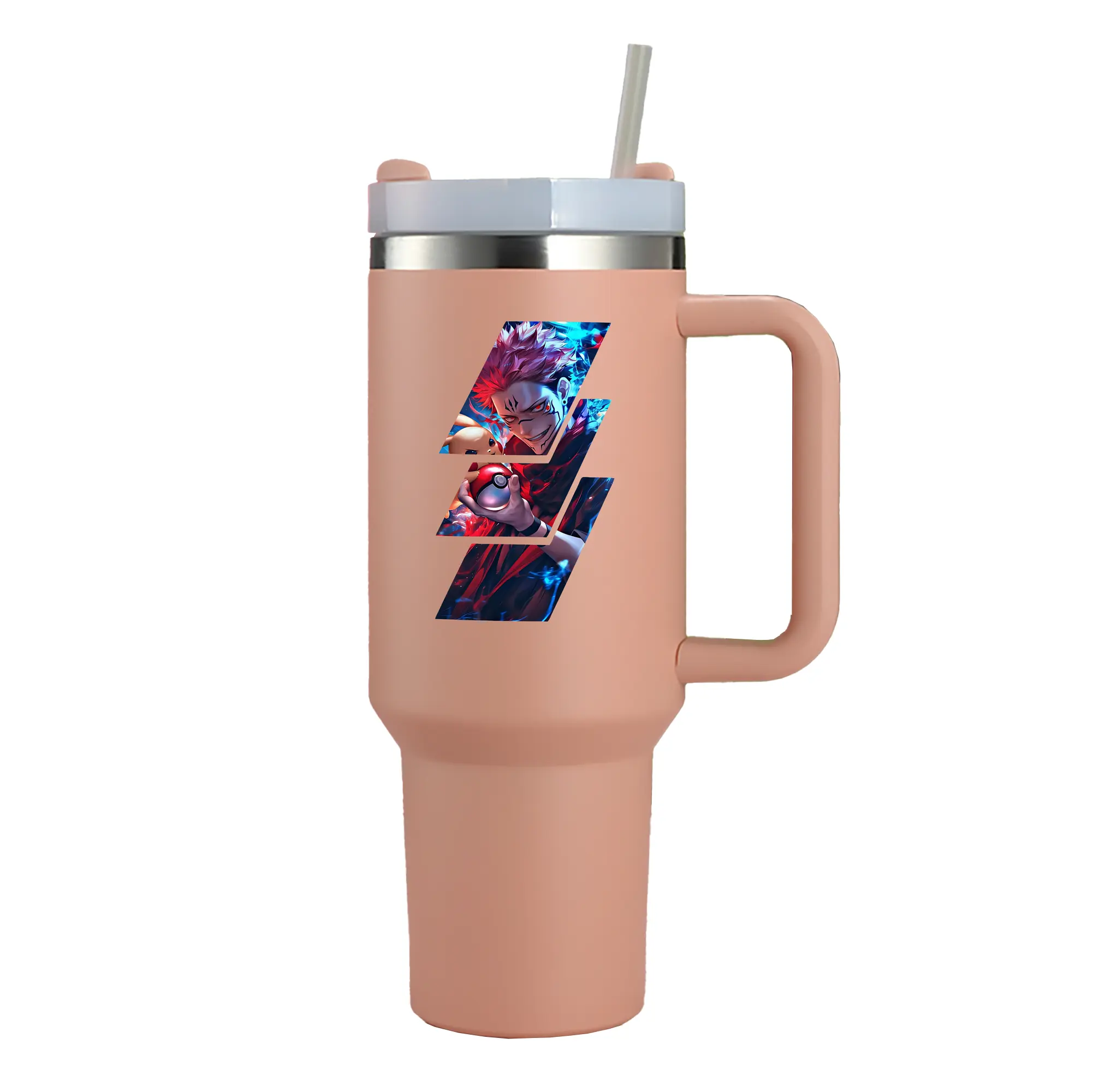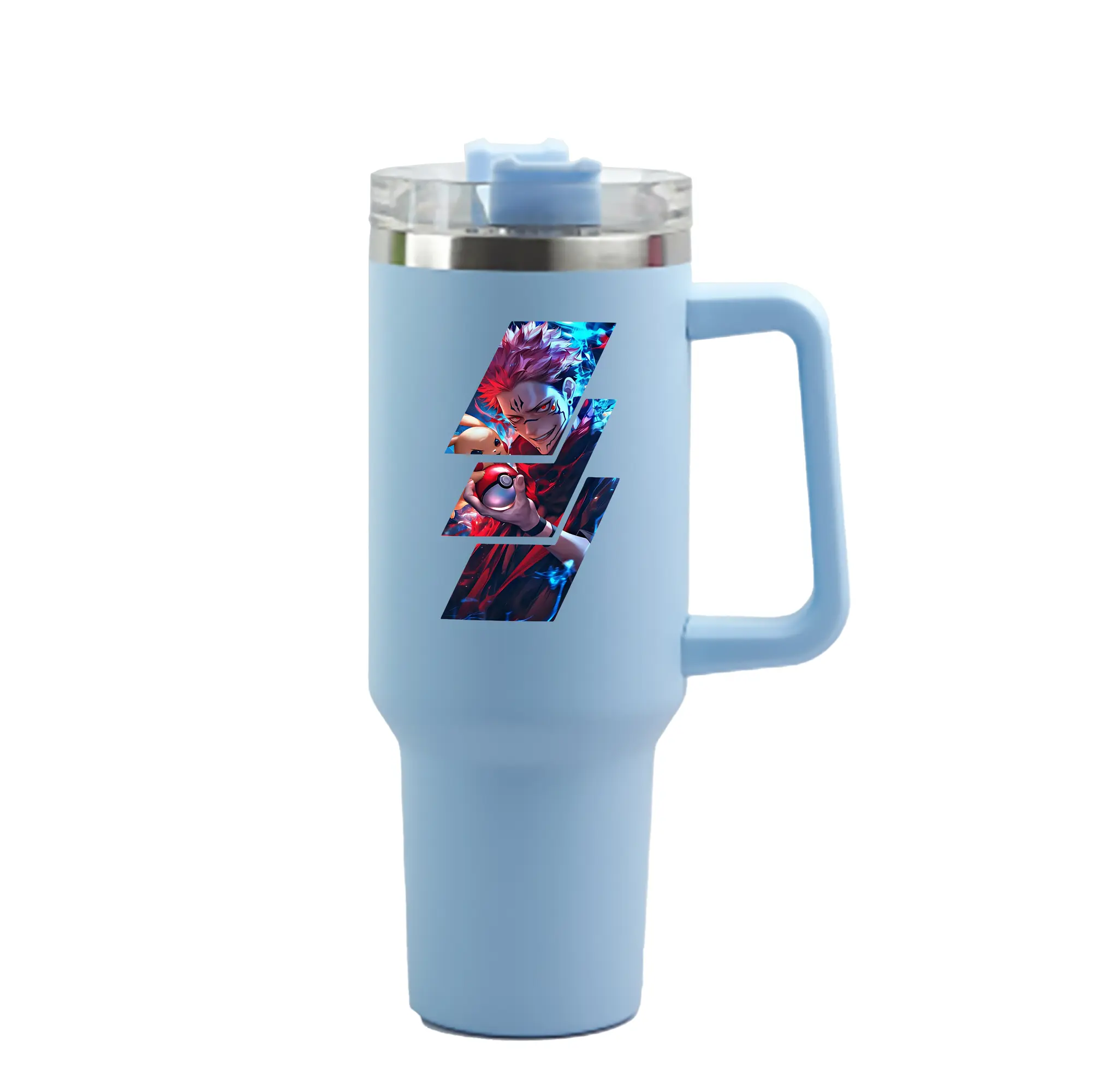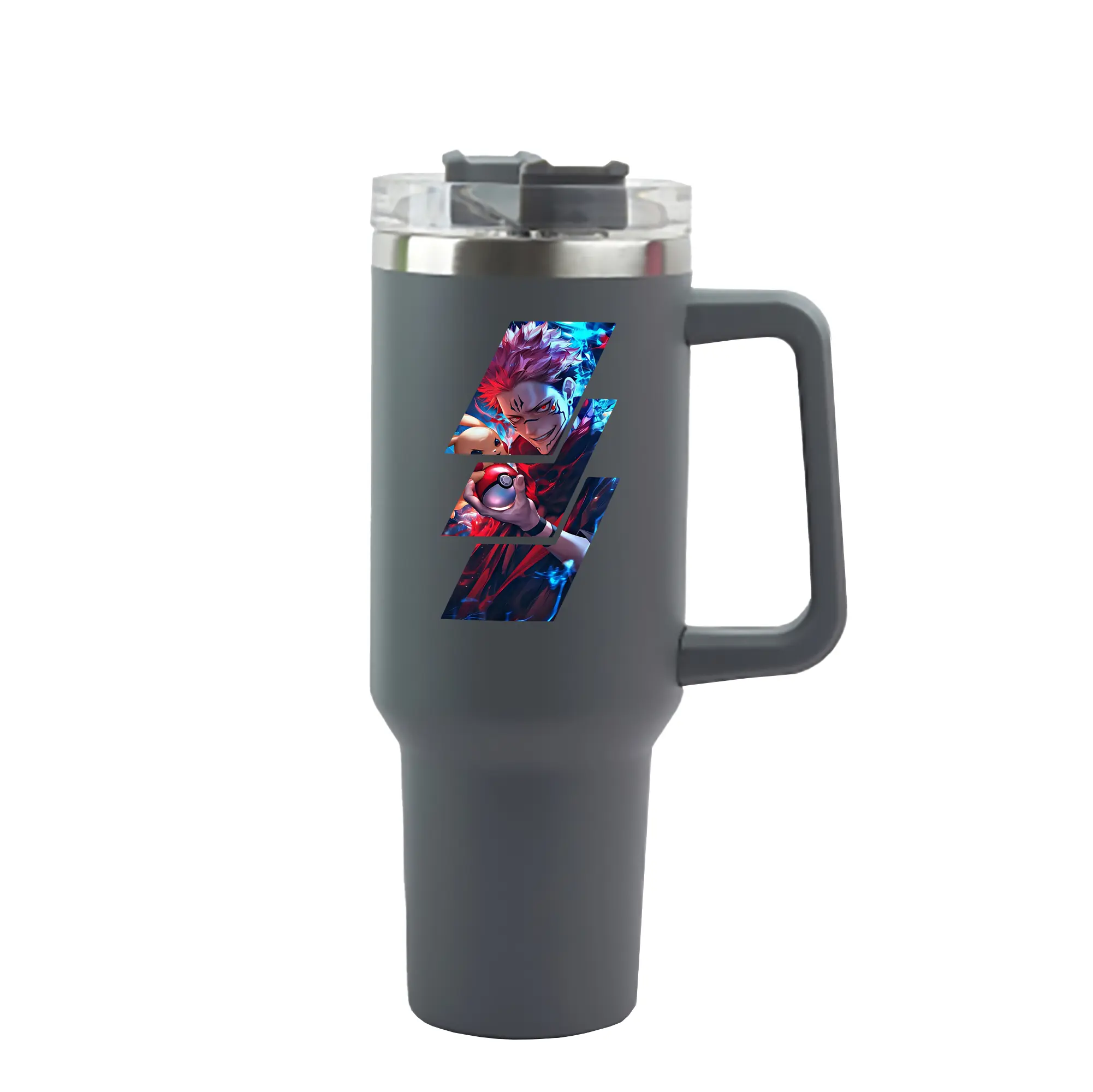呪術廻戦 グッズ,両面宿儺 - 1200mL 車用タンブラー ・ クリスタルステッカー ・ 304ステンレス 内側 ・ 201ステンレス 外側 ・ 保温 保冷 ・ ハンドル&ストロー付き ・ 通勤 ドライブ アウトドア用