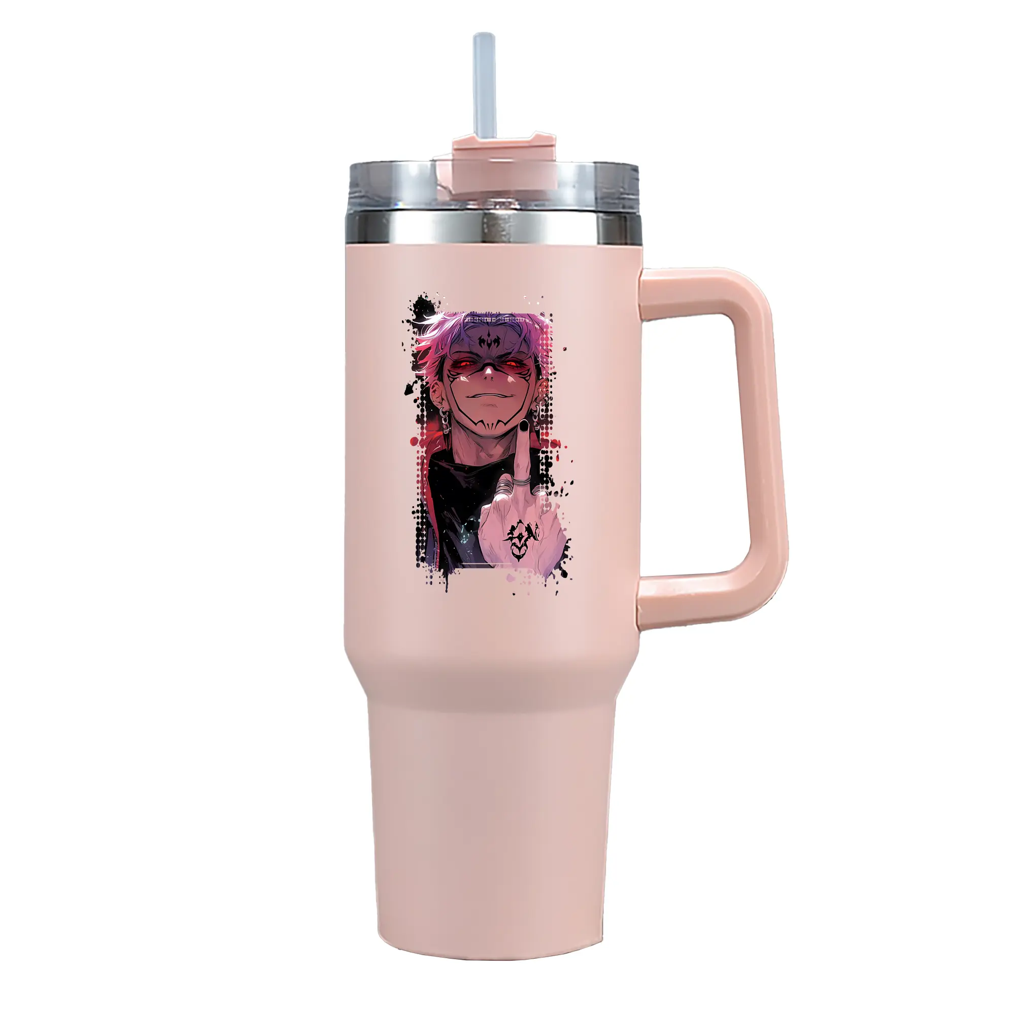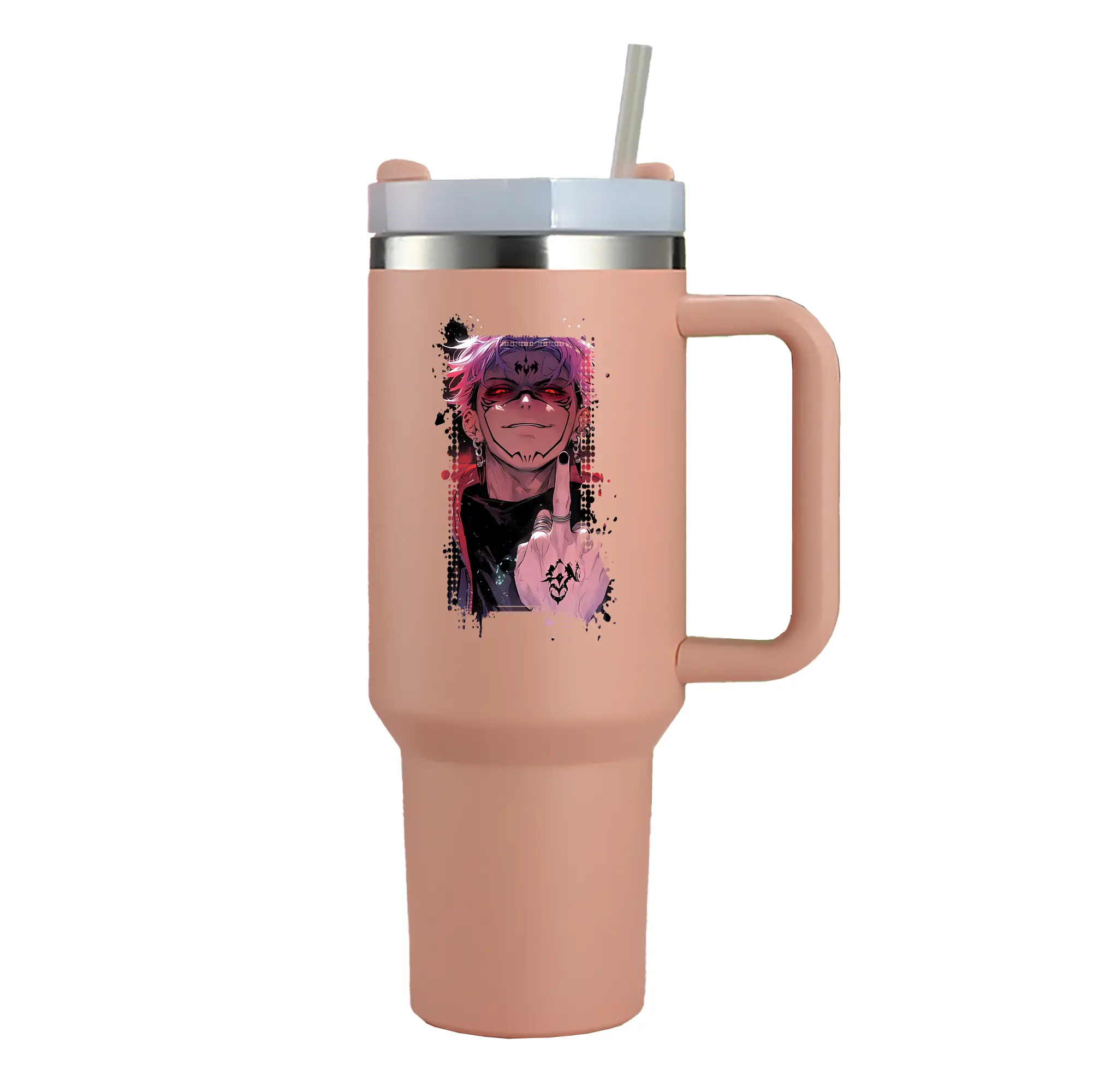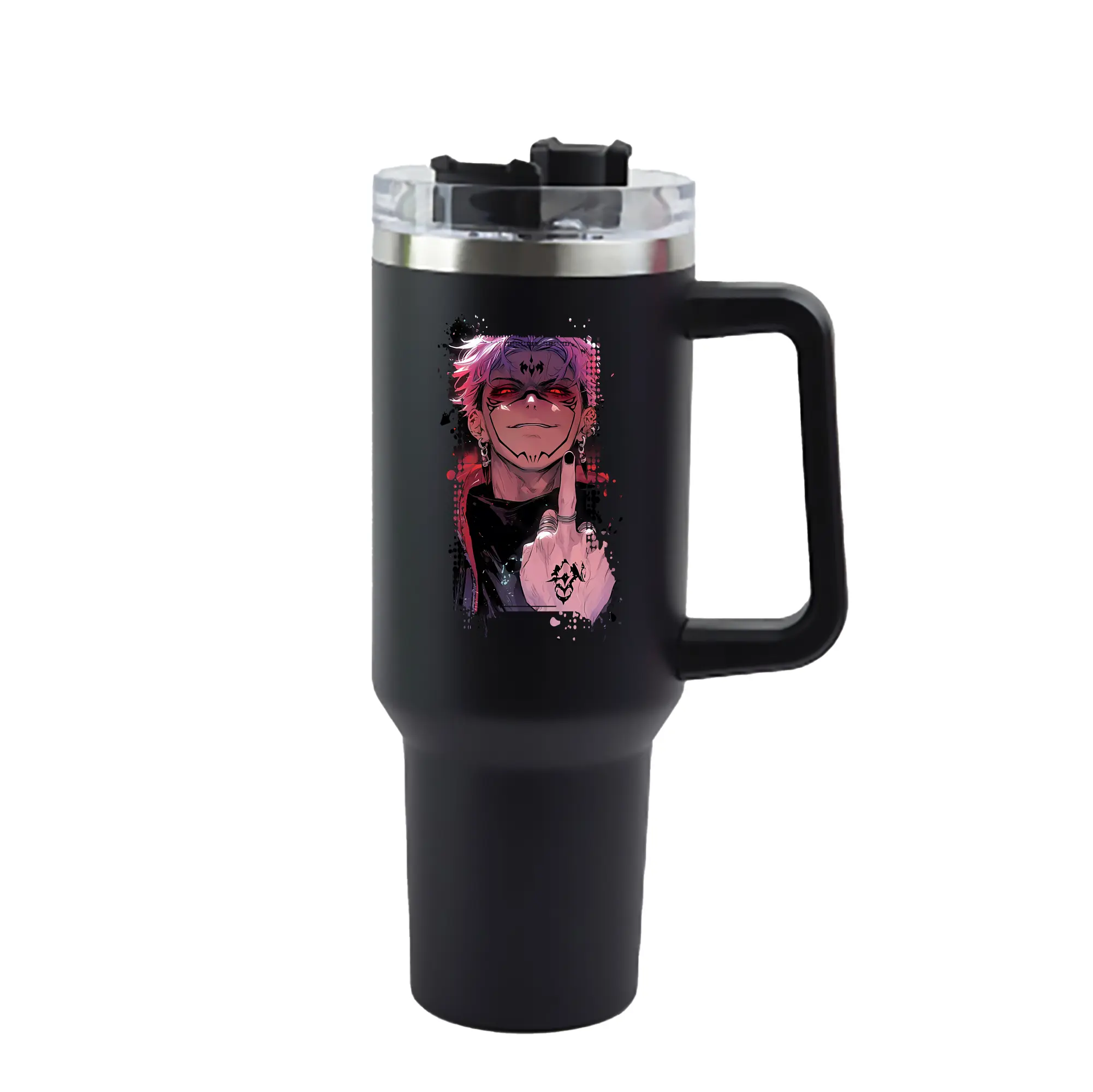 呪術廻戦 グッズ,両面宿儺 - 1200mL 車用タンブラー ・ クリスタルステッカー ・ 304ステンレス 内側 ・ 201ステンレス 外側 ・ 保温 保冷 ・ ハンドル&ストロー付き ・ 通勤 ドライブ アウトドア用