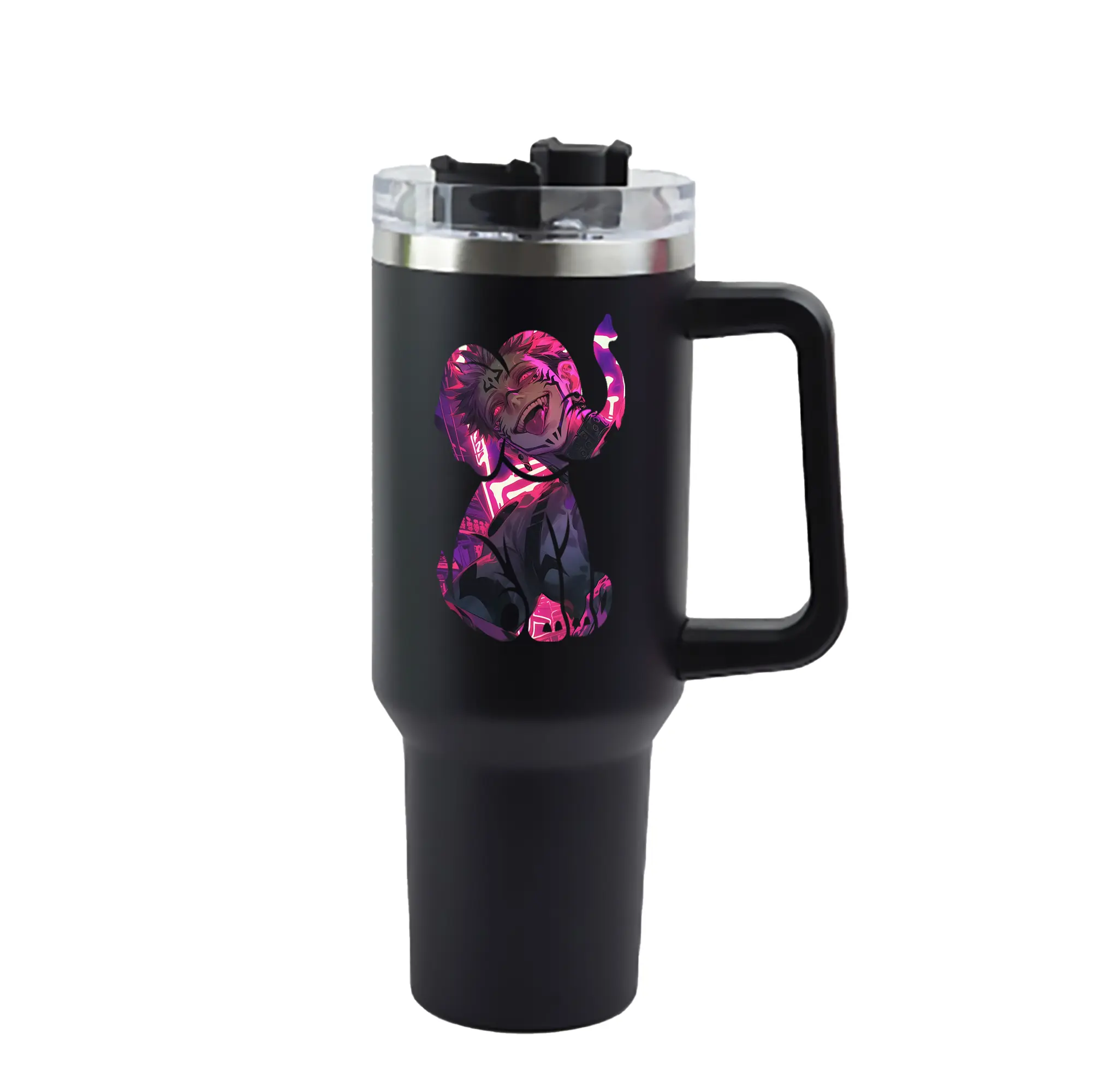 呪術廻戦 グッズ,両面宿儺 - 1200mL 車用タンブラー ・ クリスタルステッカー ・ 304ステンレス 内側 ・ 201ステンレス 外側 ・ 保温 保冷 ・ ハンドル&ストロー付き ・ 通勤 ドライブ アウトドア用