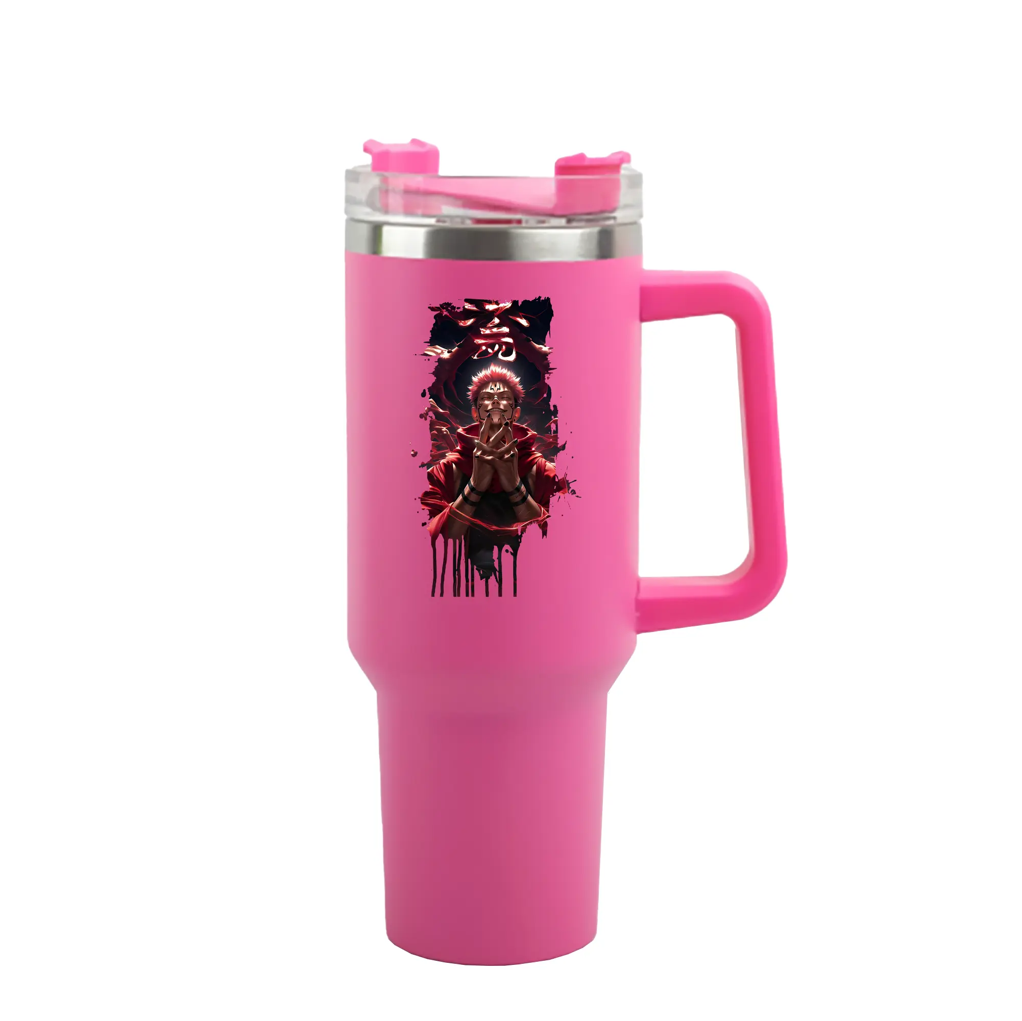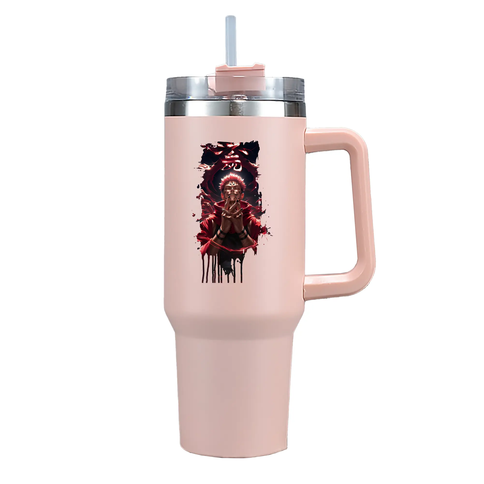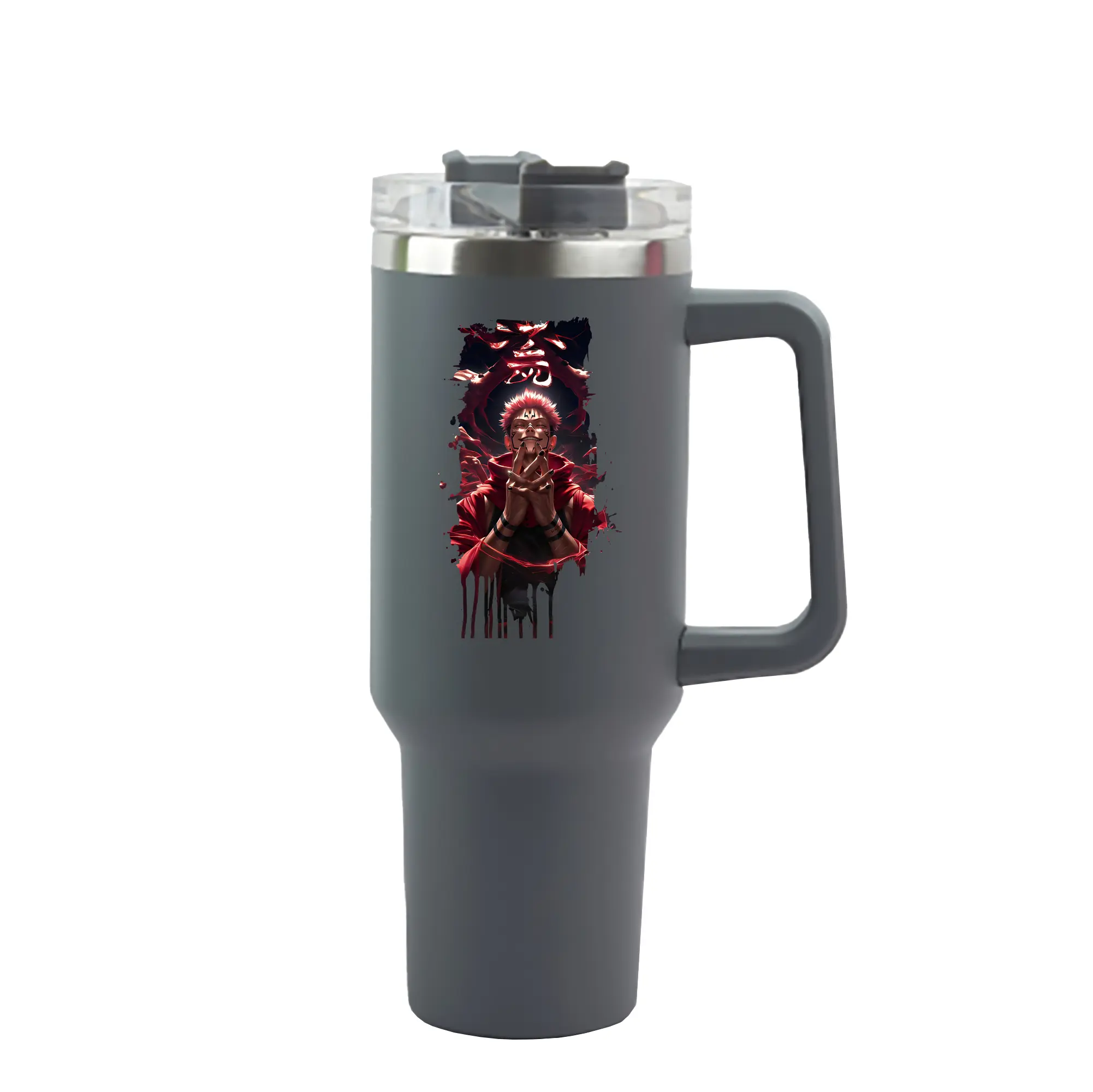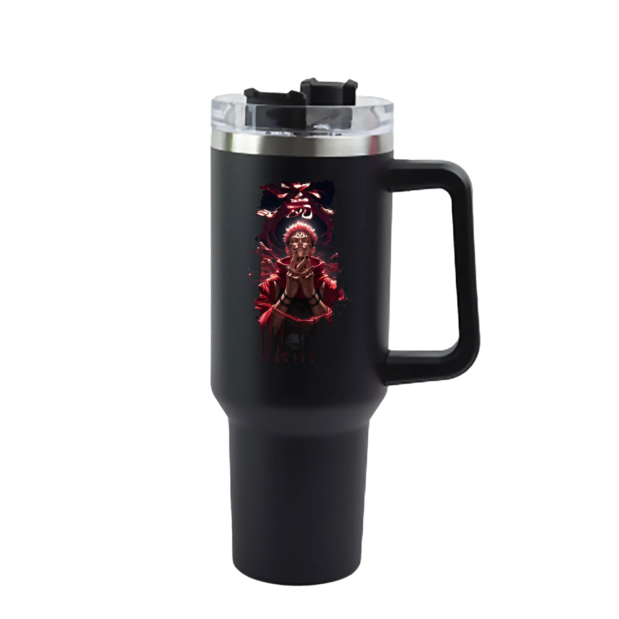 呪術廻戦 グッズ,両面宿儺 - 1200mL 車用タンブラー ・ クリスタルステッカー ・ 304ステンレス 内側 ・ 201ステンレス 外側 ・ 保温 保冷 ・ ハンドル&ストロー付き ・ 通勤 ドライブ アウトドア用