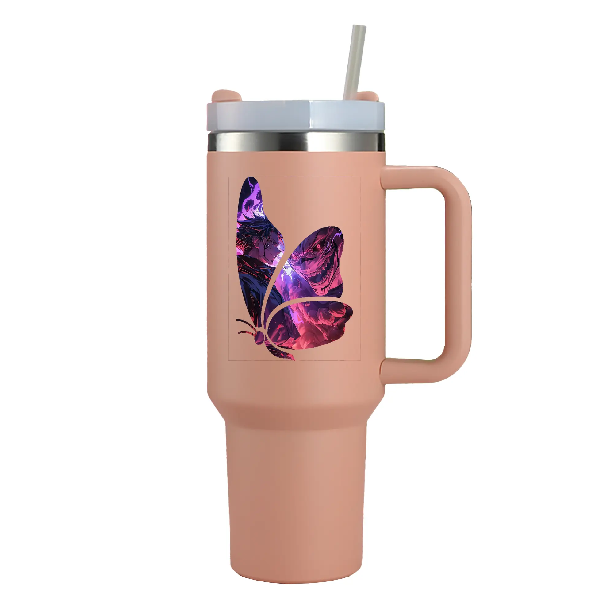 1200mL(40オンス)の大容量ハンドル付きカータンブラー。キラキラと輝くクリスタルステッカーデザインが、毎日の使用に華やかさをプラスします。食品グレード304ステンレスの内側と頑丈な201ステンレスの外側を採用し、耐久性・耐腐食性・安全性を兼ね備えています。
