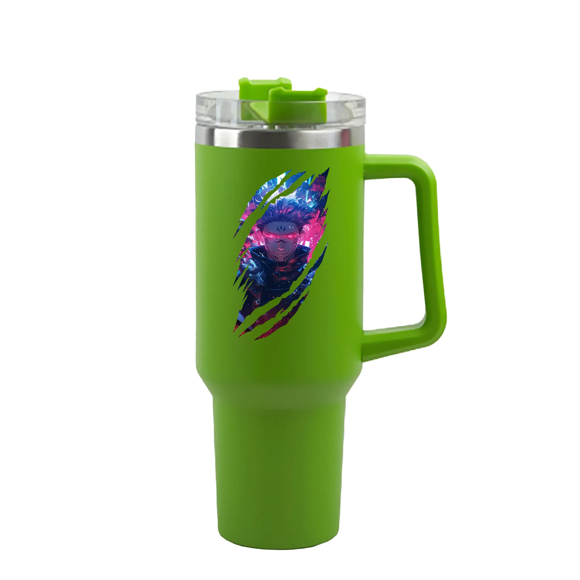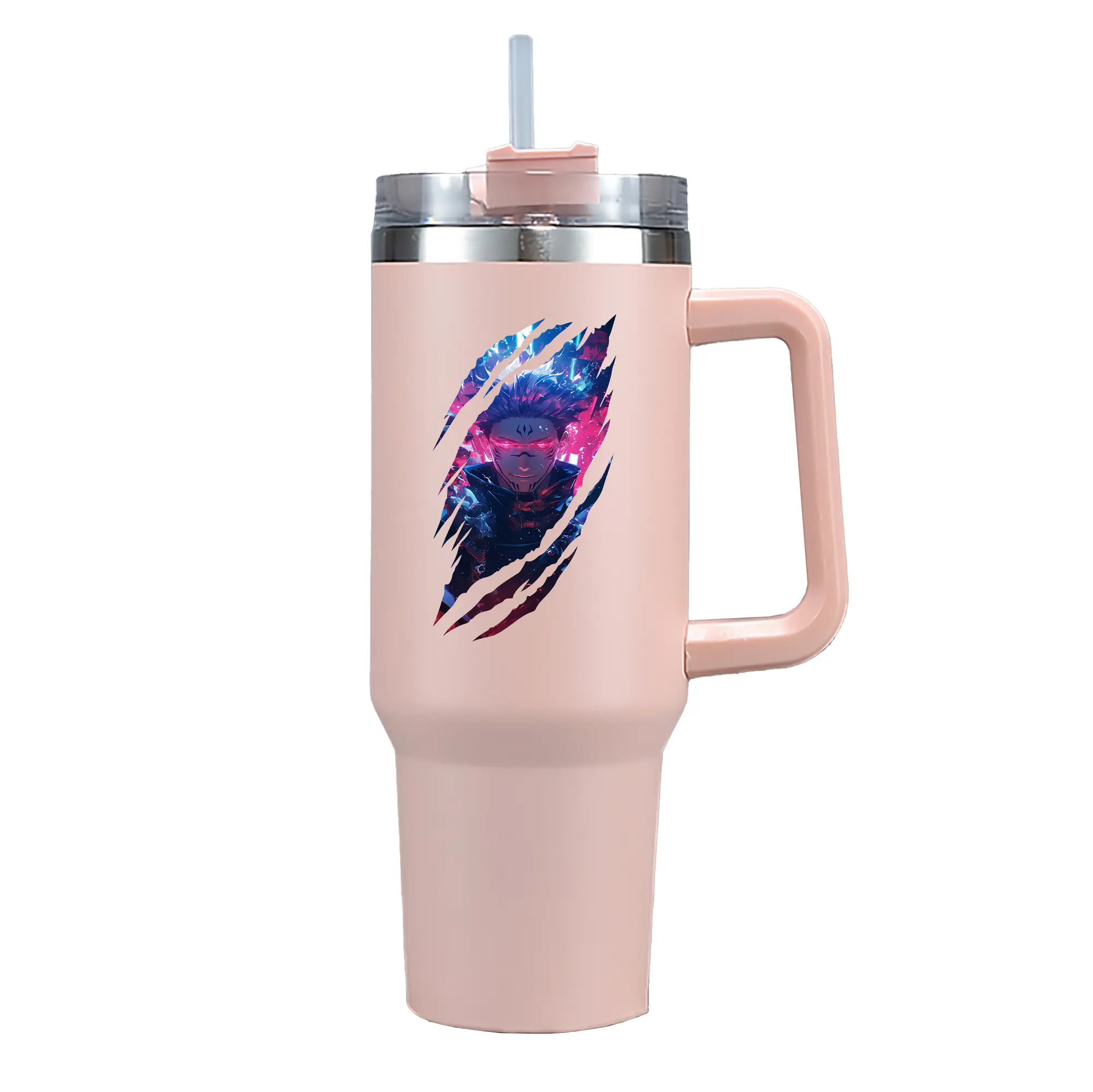 呪術廻戦 グッズ,両面宿儺 - 1200mL 車用タンブラー ・ クリスタルステッカー ・ 304ステンレス 内側 ・ 201ステンレス 外側 ・ 保温 保冷 ・ ハンドル&ストロー付き ・ 通勤 ドライブ アウトドア用