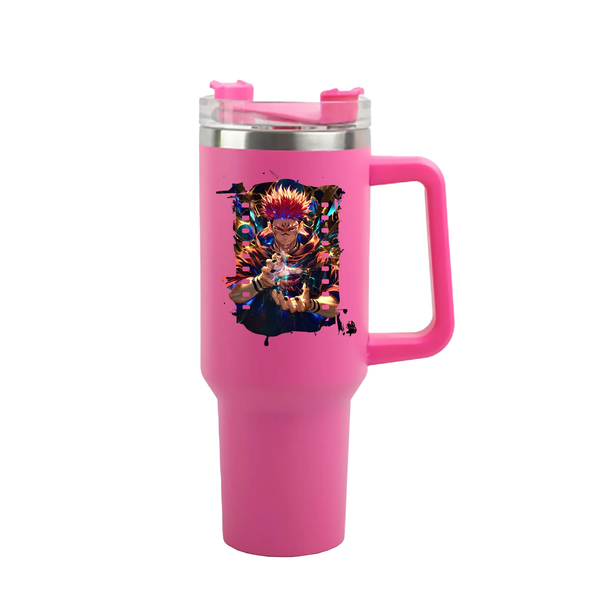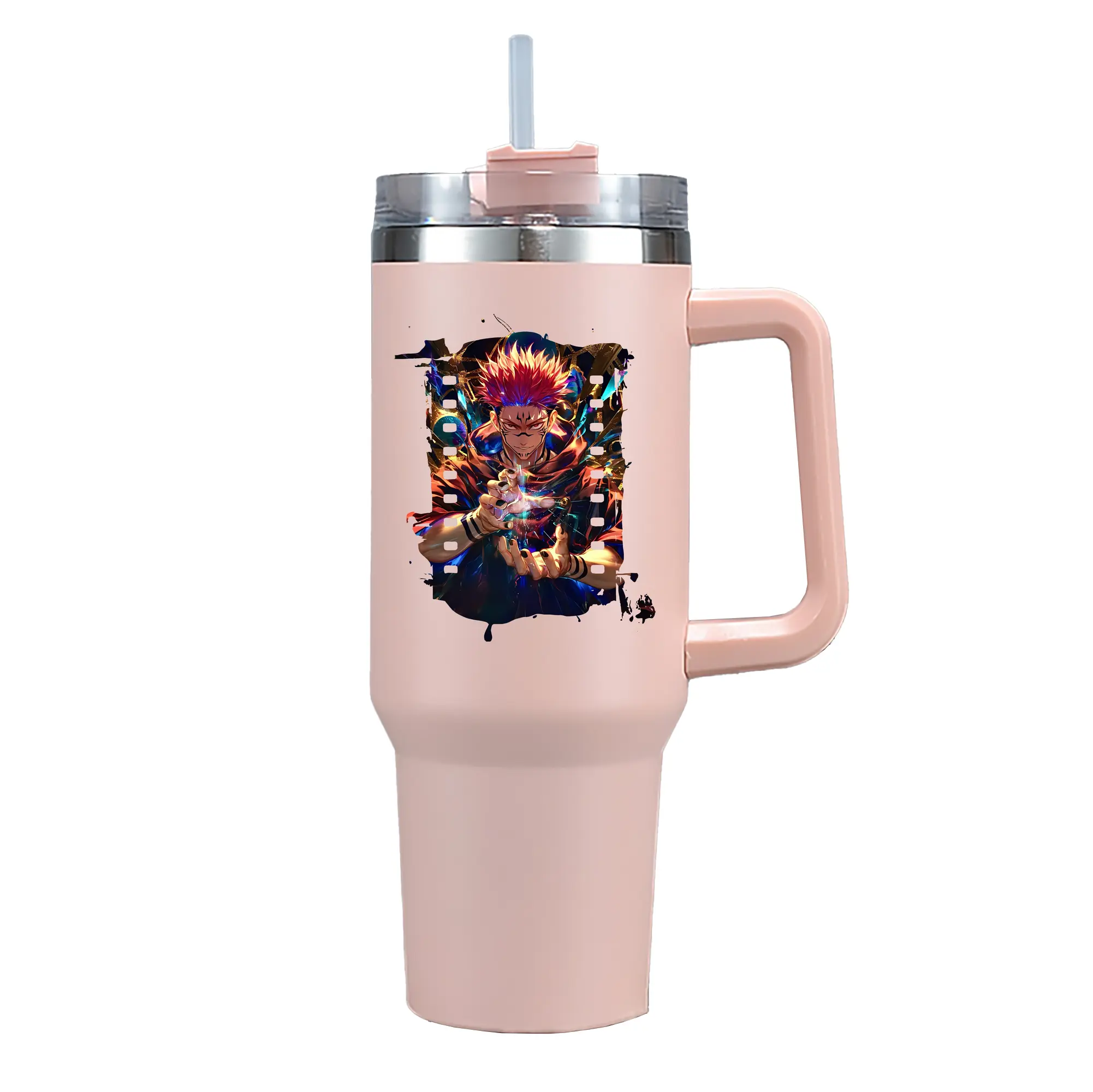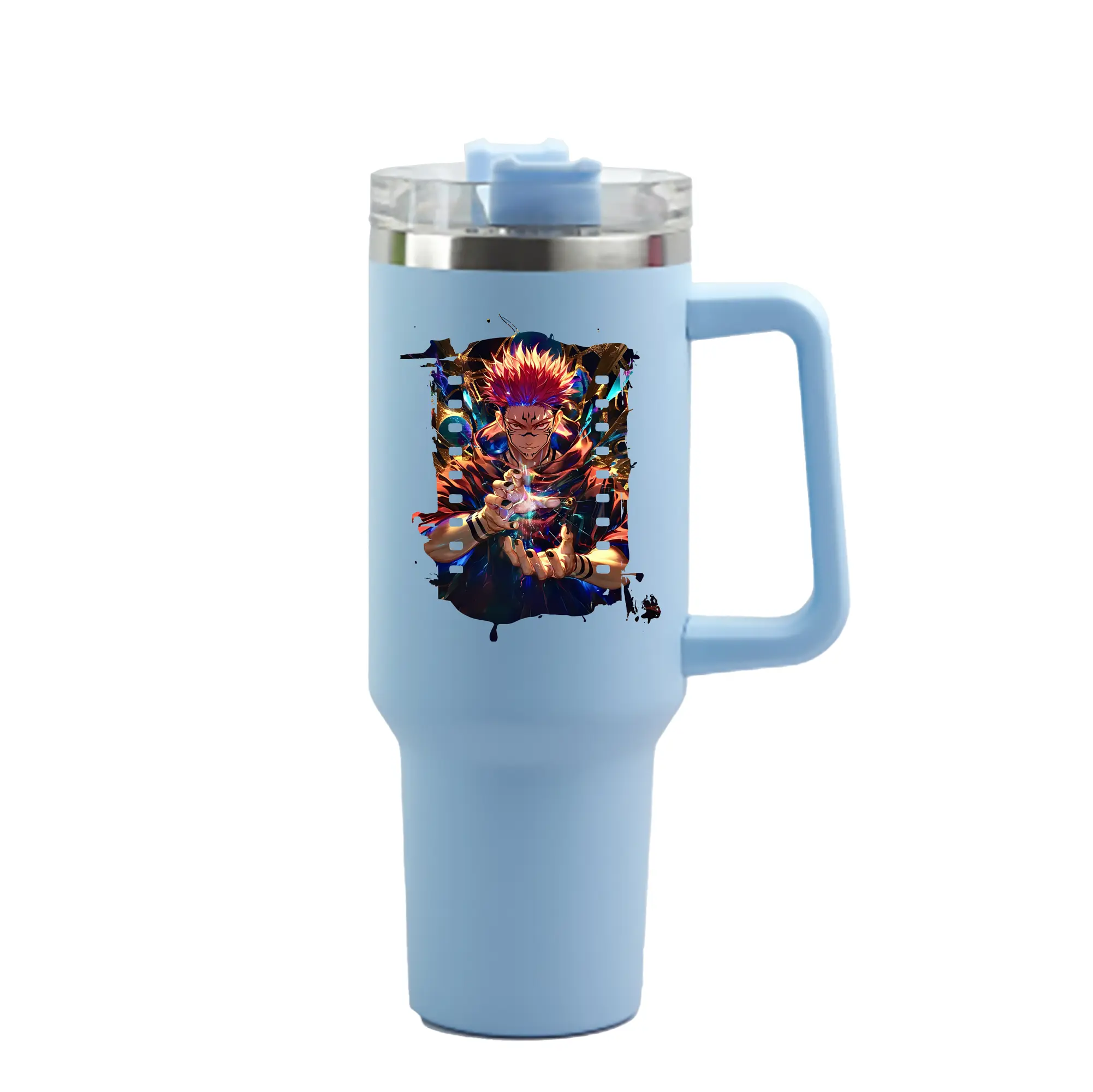 呪術廻戦 グッズ,両面宿儺 - 1200mL 車用タンブラー ・ クリスタルステッカー ・ 304ステンレス 内側 ・ 201ステンレス 外側 ・ 保温 保冷 ・ ハンドル&ストロー付き ・ 通勤 ドライブ アウトドア用