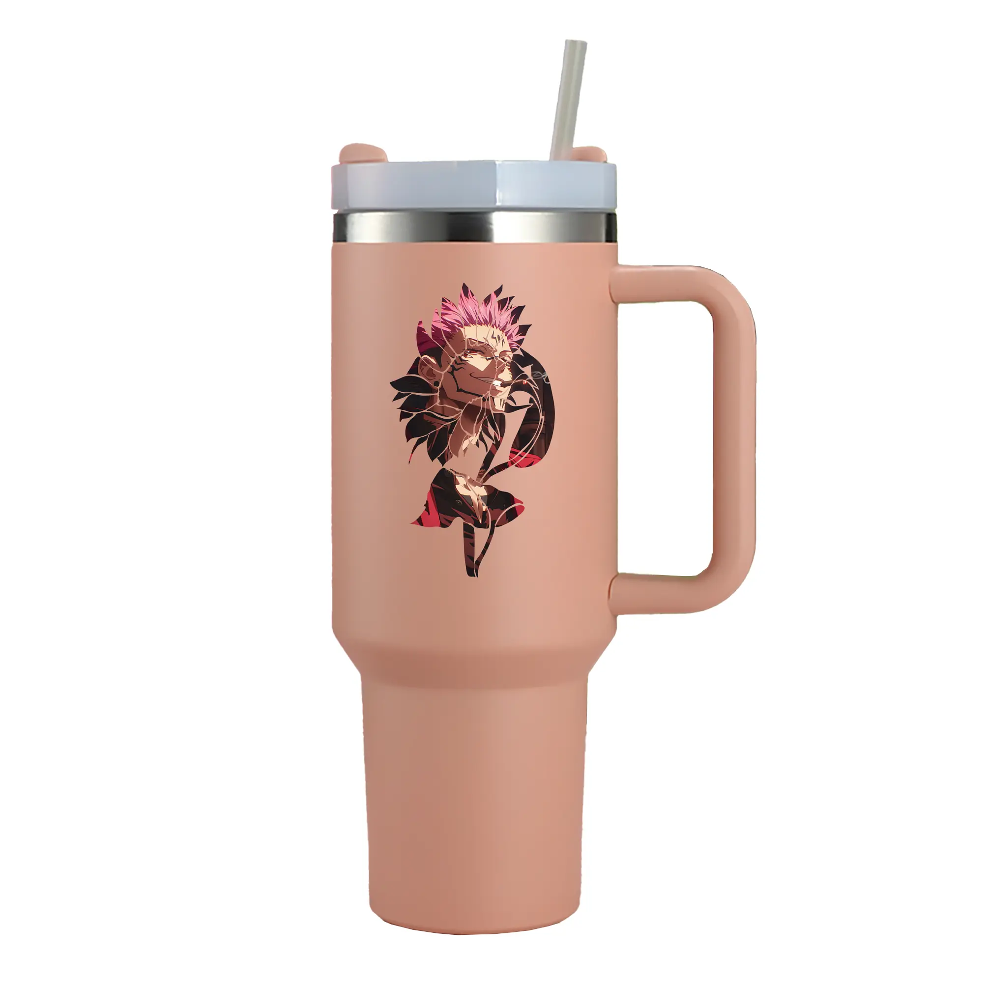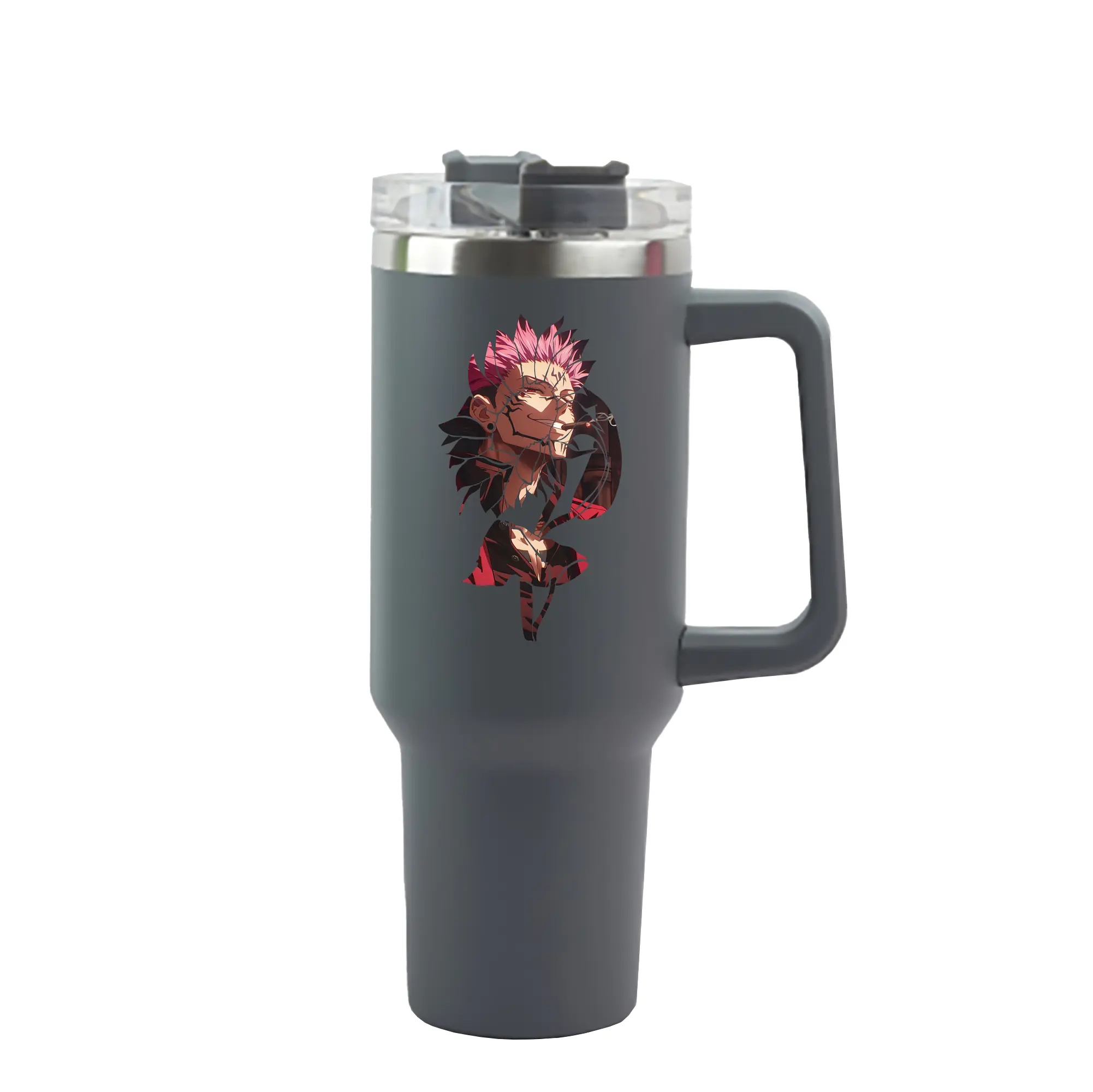 呪術廻戦 グッズ,両面宿儺 - 1200mL 車用タンブラー ・ クリスタルステッカー ・ 304ステンレス 内側 ・ 201ステンレス 外側 ・ 保温 保冷 ・ ハンドル&ストロー付き ・ 通勤 ドライブ アウトドア用