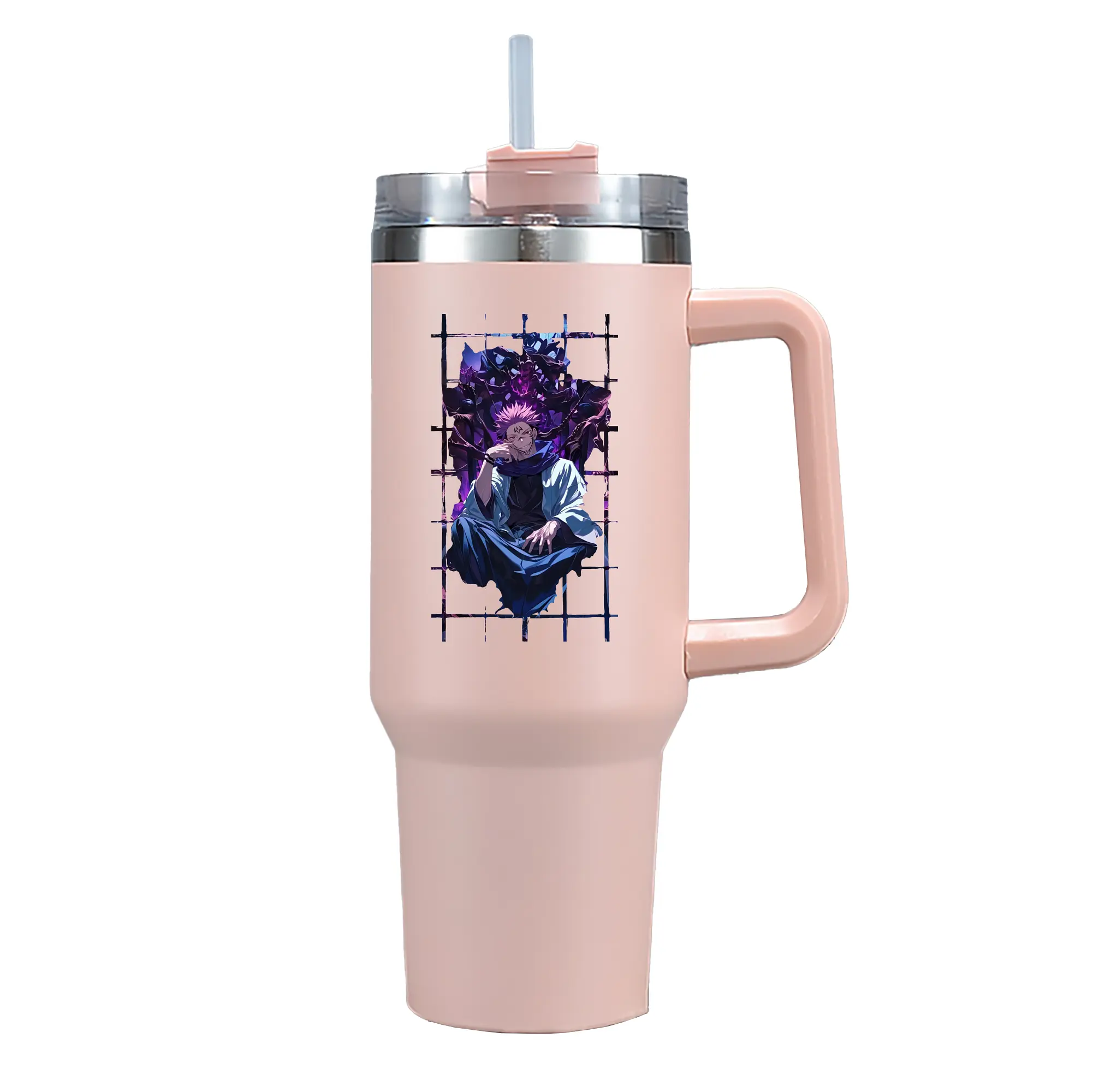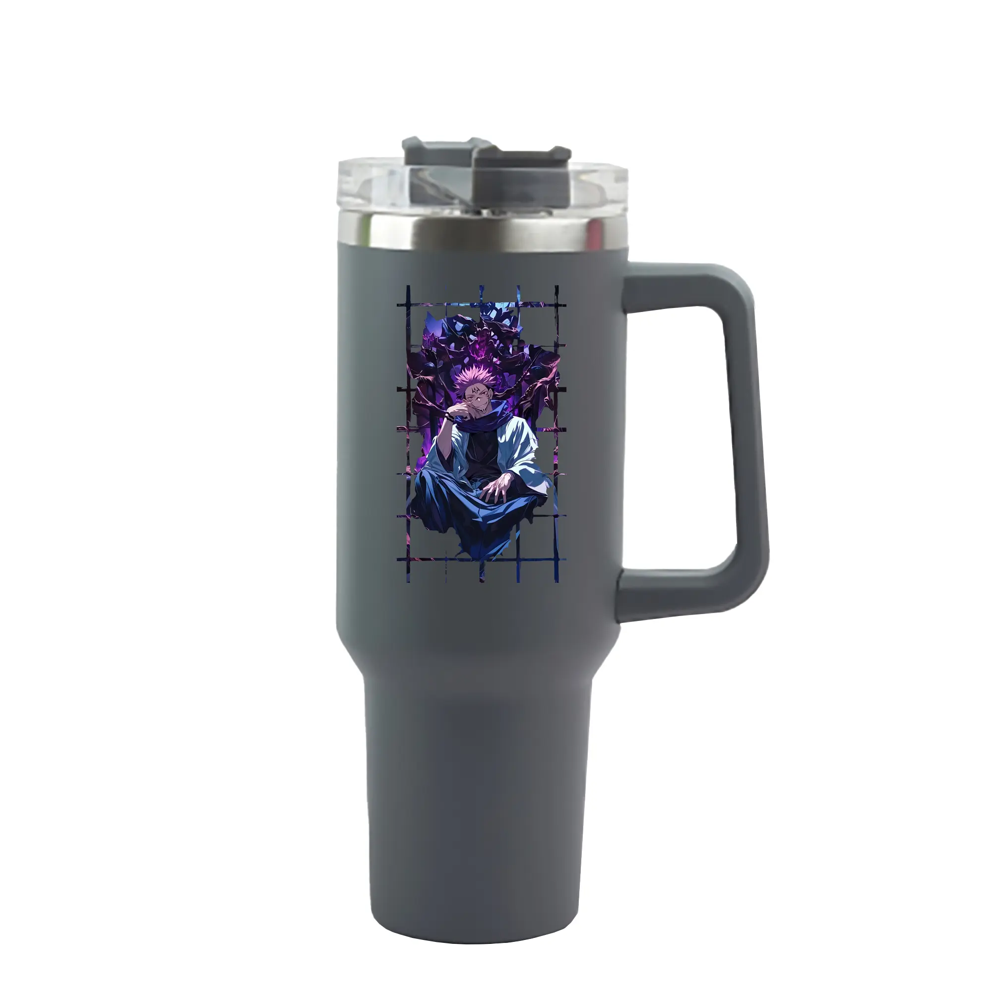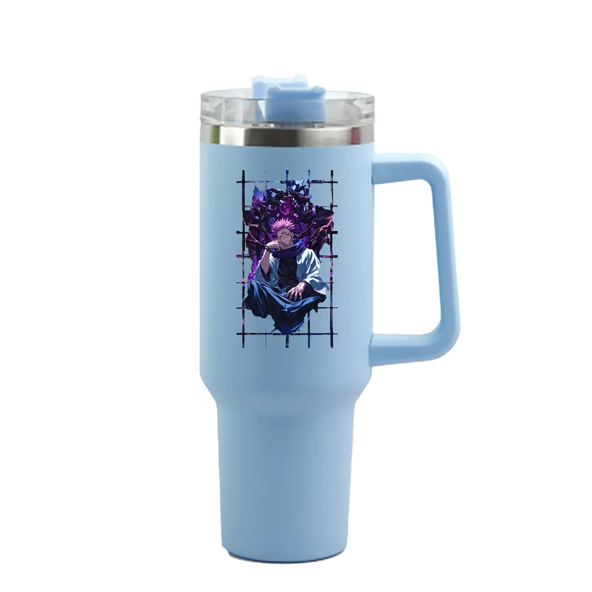 呪術廻戦 グッズ,両面宿儺 - 1200mL 車用タンブラー ・ クリスタルステッカー ・ 304ステンレス 内側 ・ 201ステンレス 外側 ・ 保温 保冷 ・ ハンドル&ストロー付き ・ 通勤 ドライブ アウトドア用