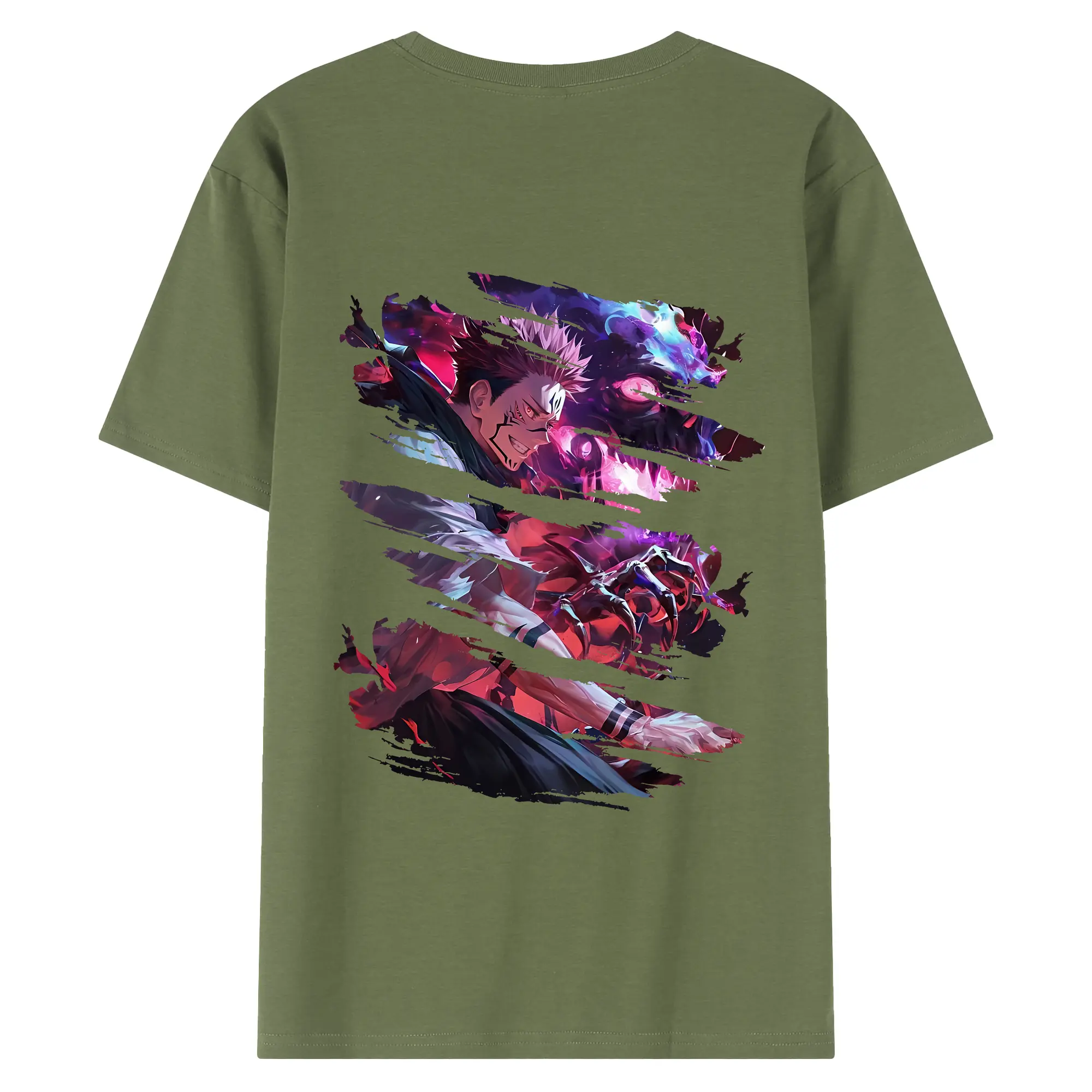 呪術廻戦 グッズ,両面宿儺 - 綿100% 半袖Tシャツ ・ フロントプリント ・ 快適 通気性 ・ 日常使い 散歩 スポーツ用