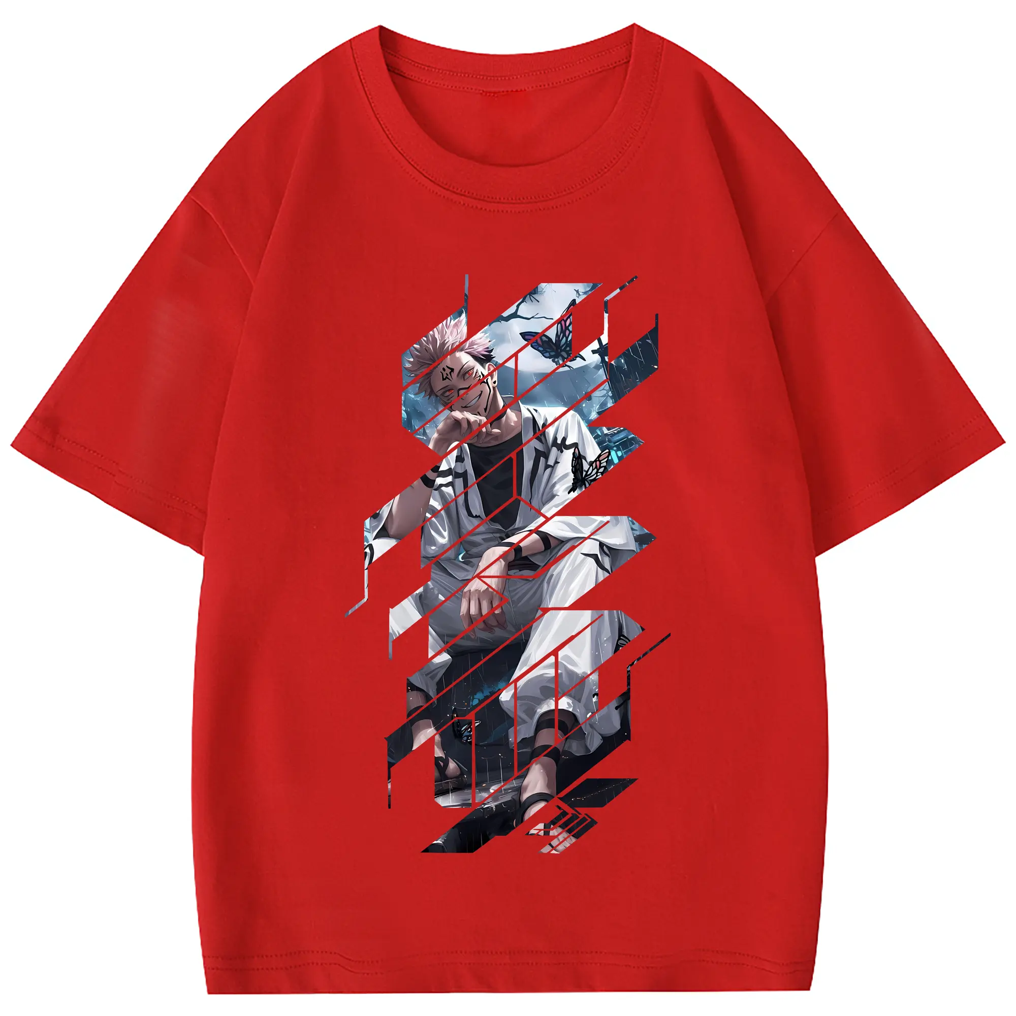 呪術廻戦 グッズ,両面宿儺 - 綿100% 半袖Tシャツ ・ フロントプリント ・ 快適 通気性 ・ 日常使い 散歩 スポーツ用