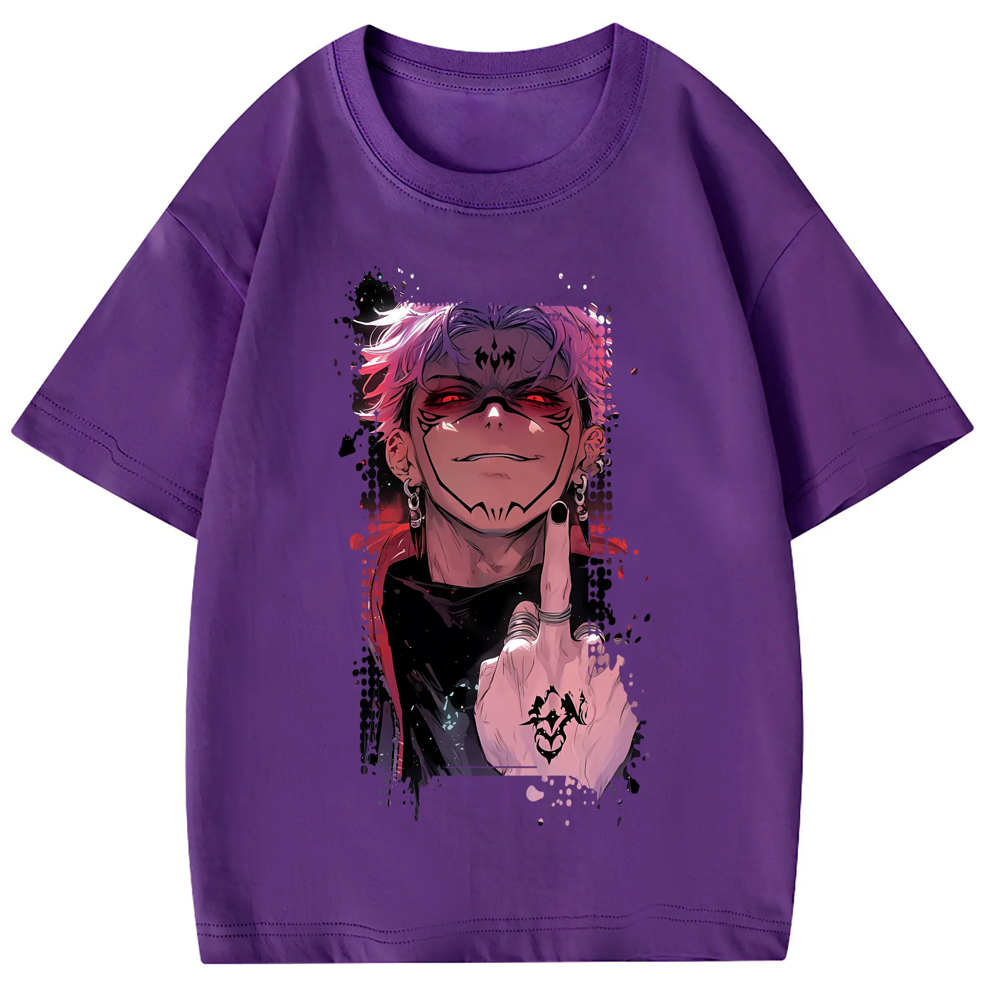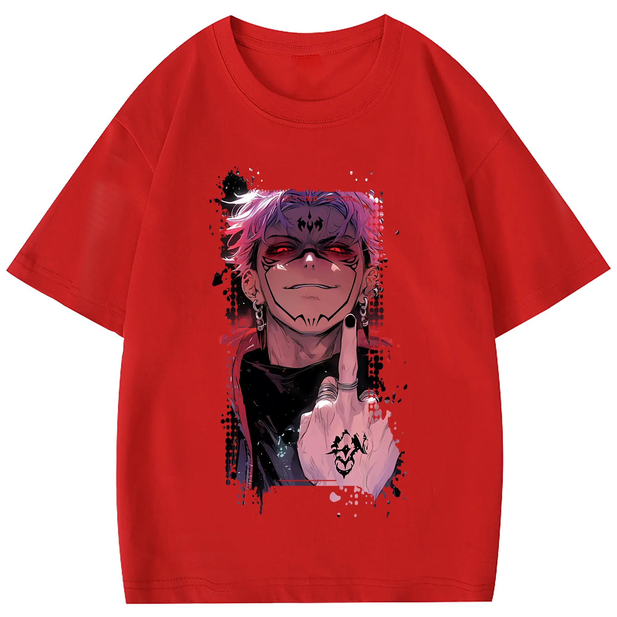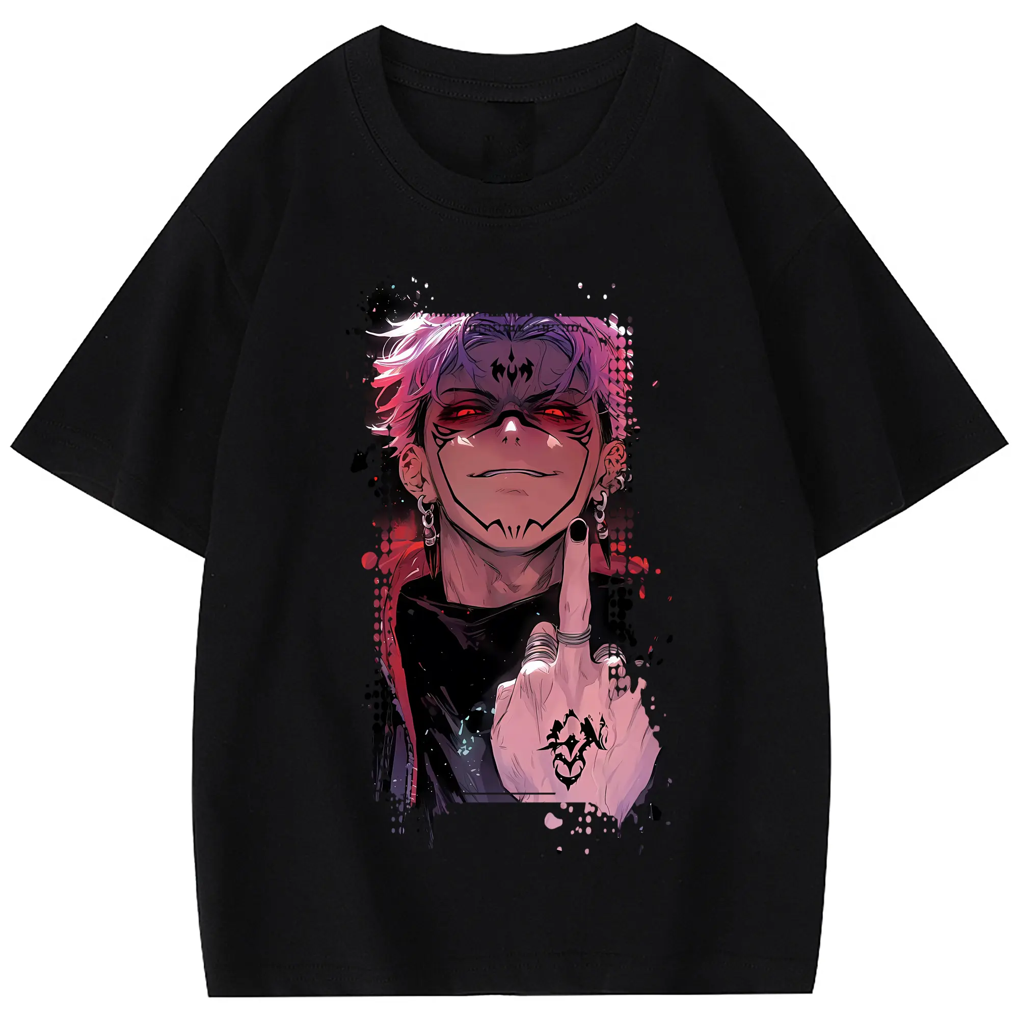 呪術廻戦 グッズ,両面宿儺 - 綿100% 半袖Tシャツ ・ フロントプリント ・ 快適 通気性 ・ 日常使い 散歩 スポーツ用