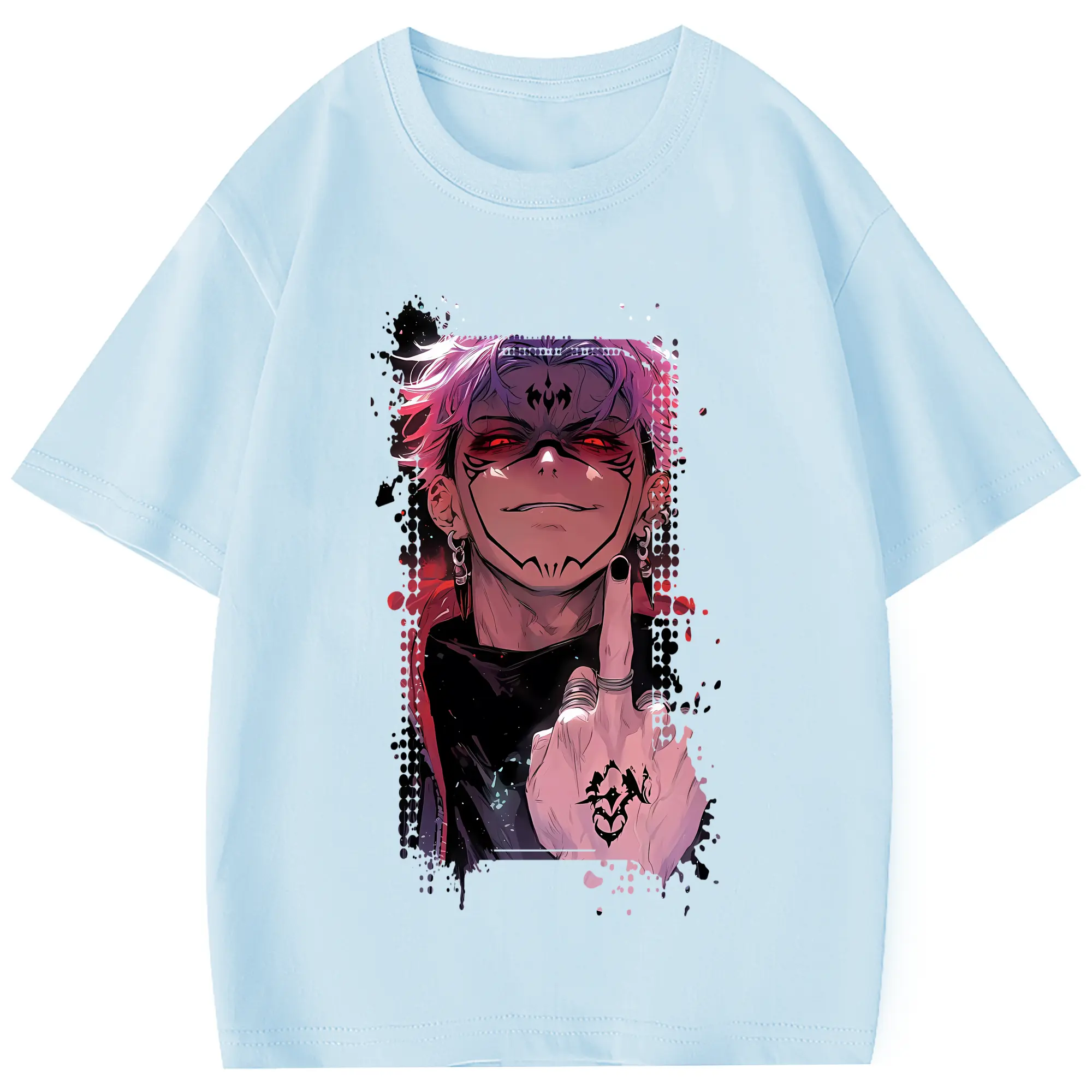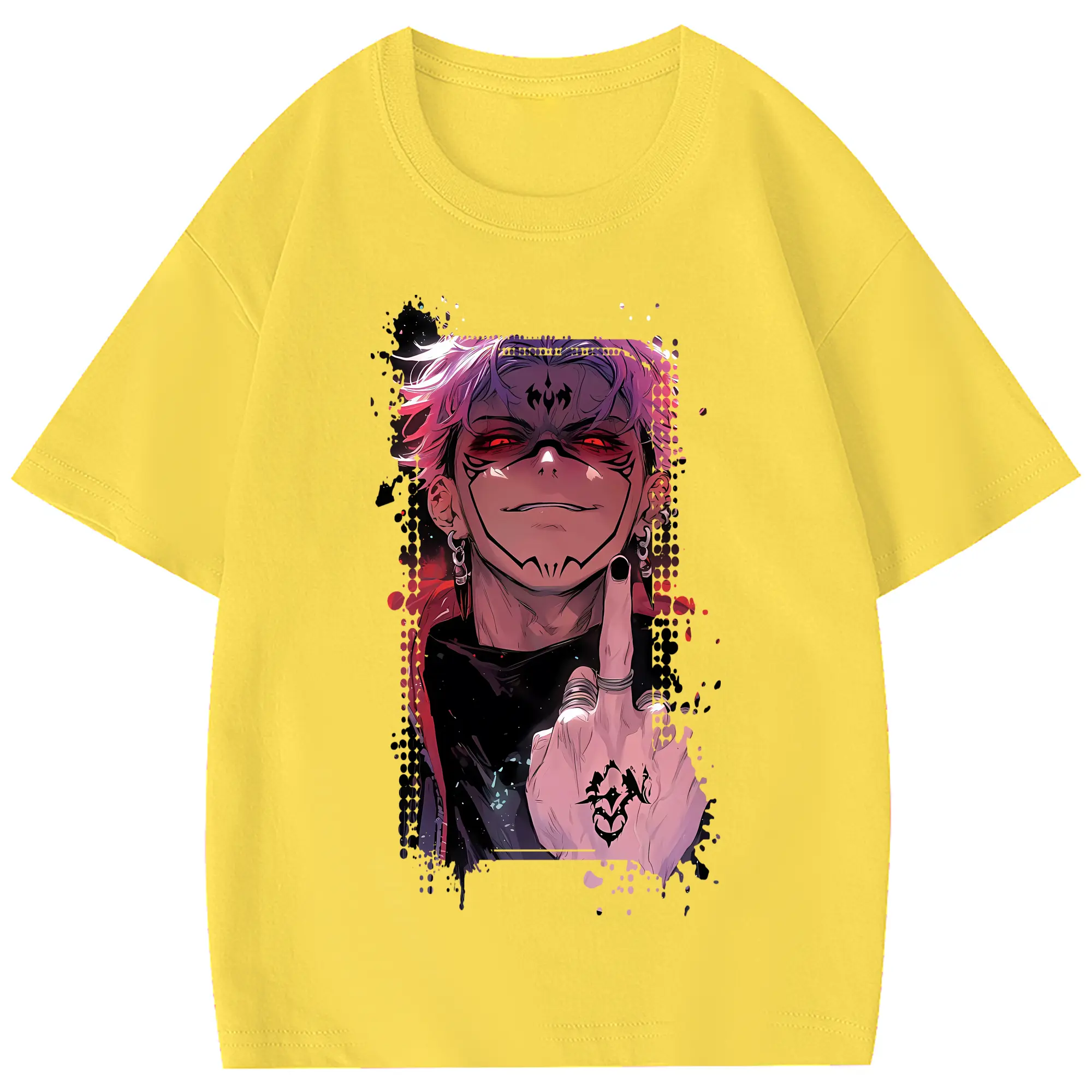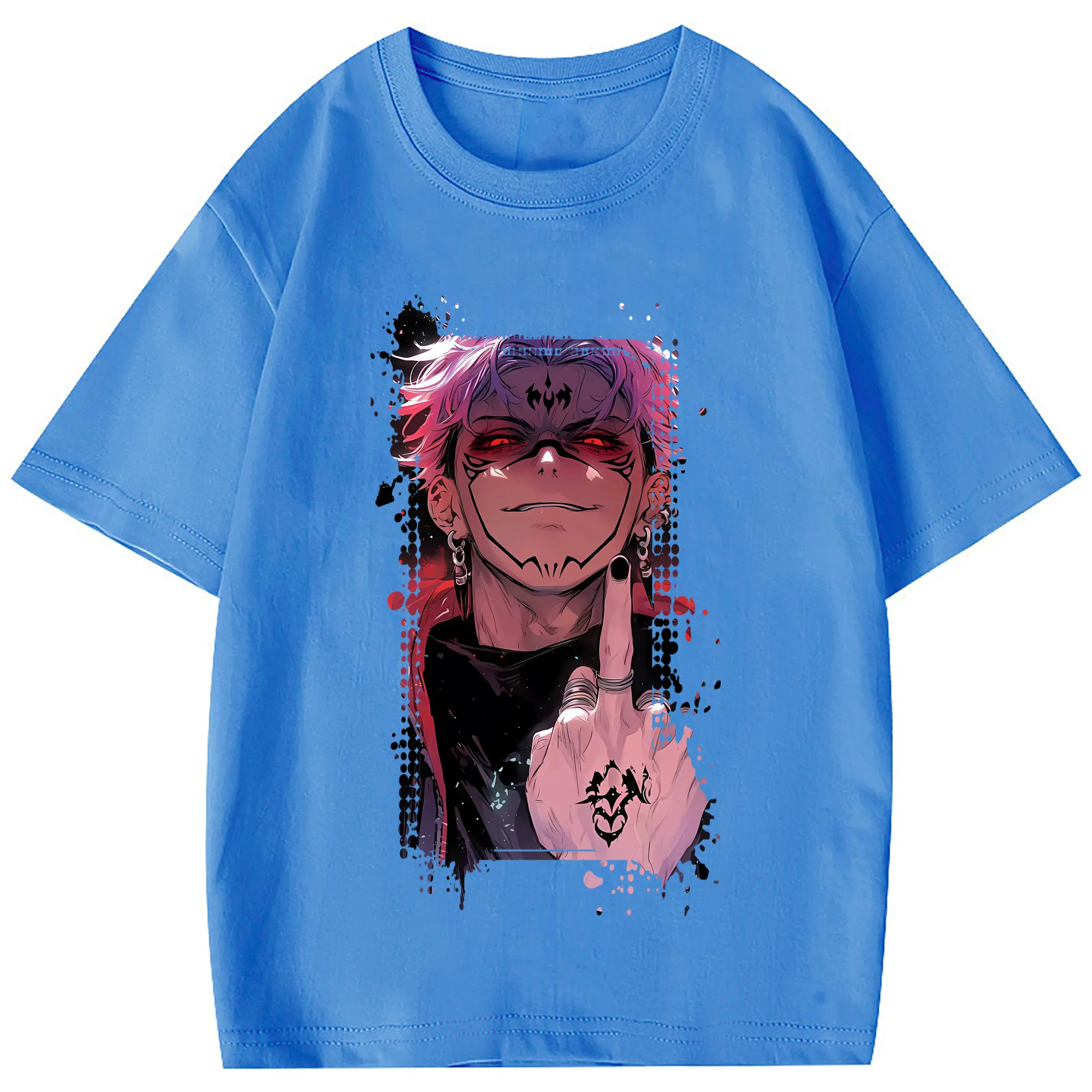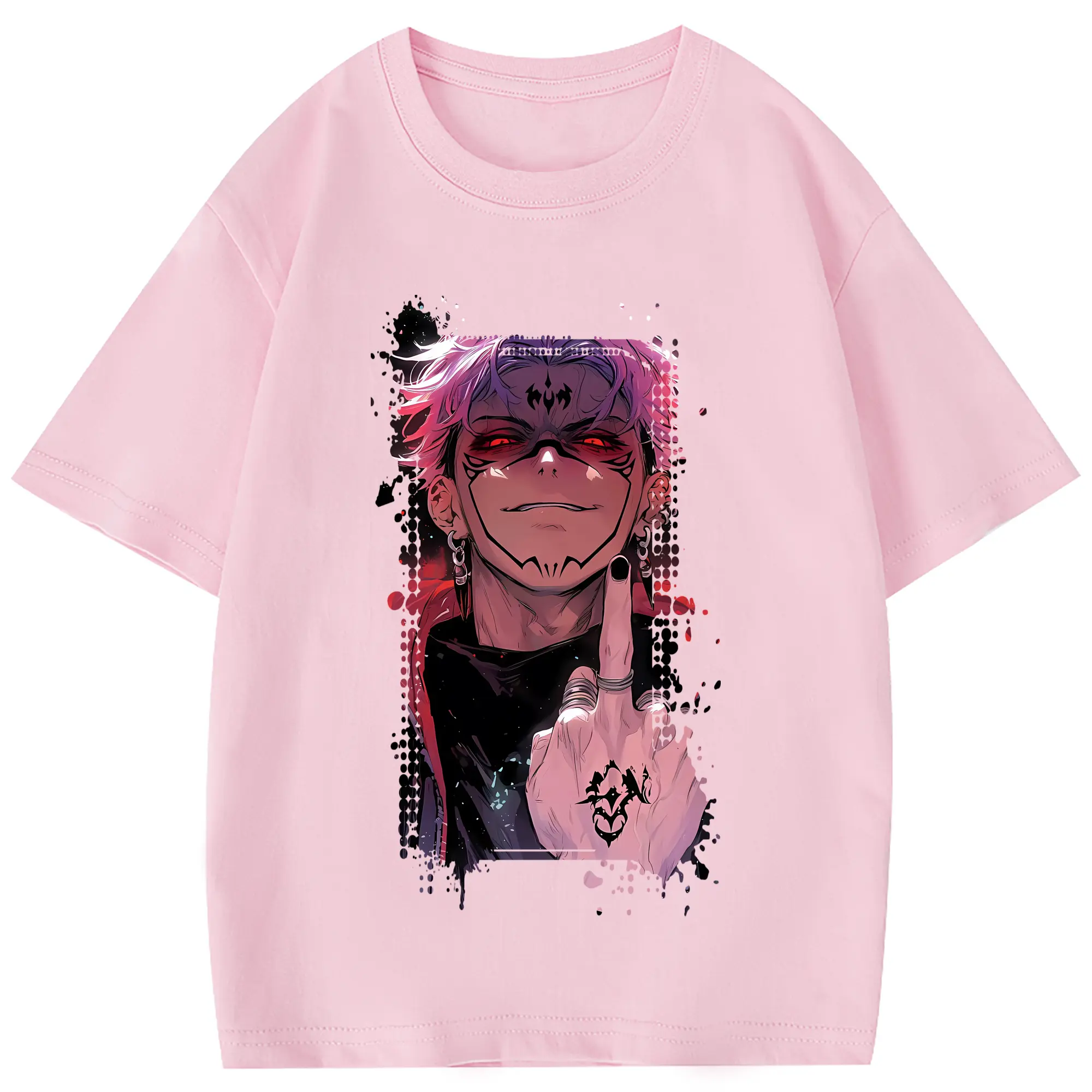 呪術廻戦 グッズ,両面宿儺 - 綿100% 半袖Tシャツ ・ フロントプリント ・ 快適 通気性 ・ 日常使い 散歩 スポーツ用