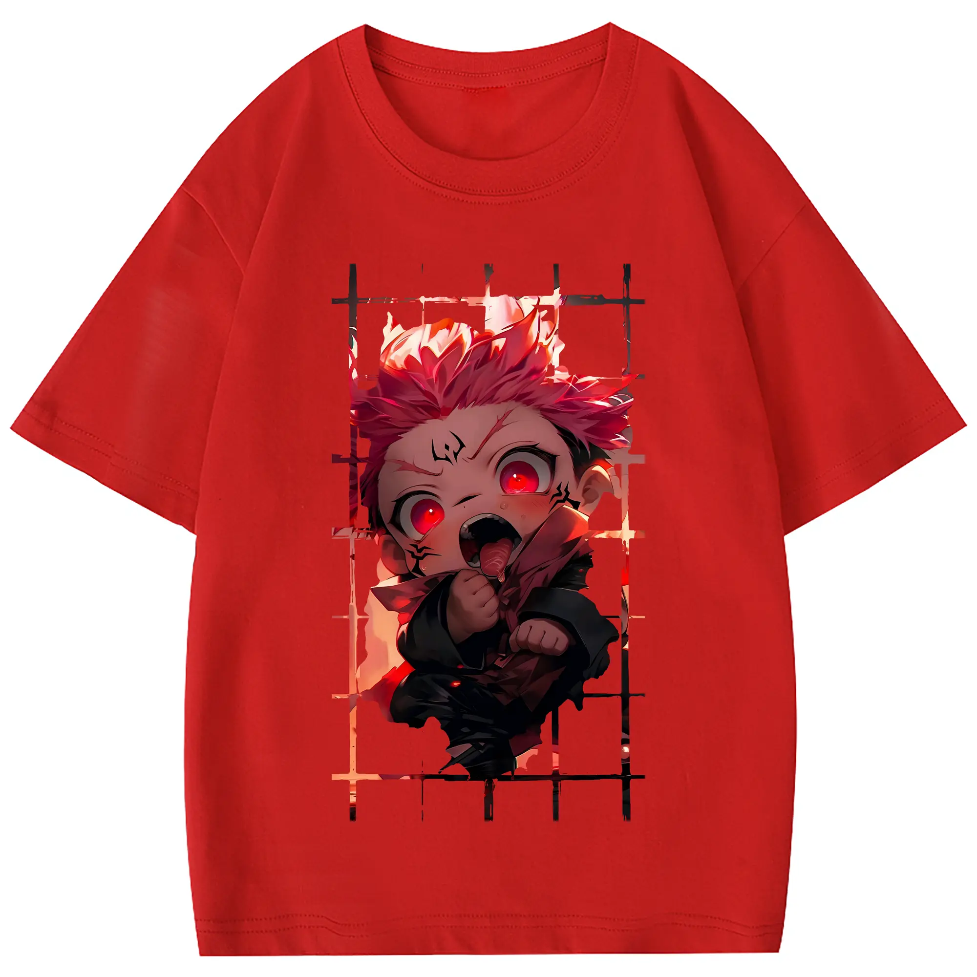 呪術廻戦 グッズ,両面宿儺 - 綿100% 半袖Tシャツ ・ フロントプリント ・ 快適 通気性 ・ 日常使い 散歩 スポーツ用