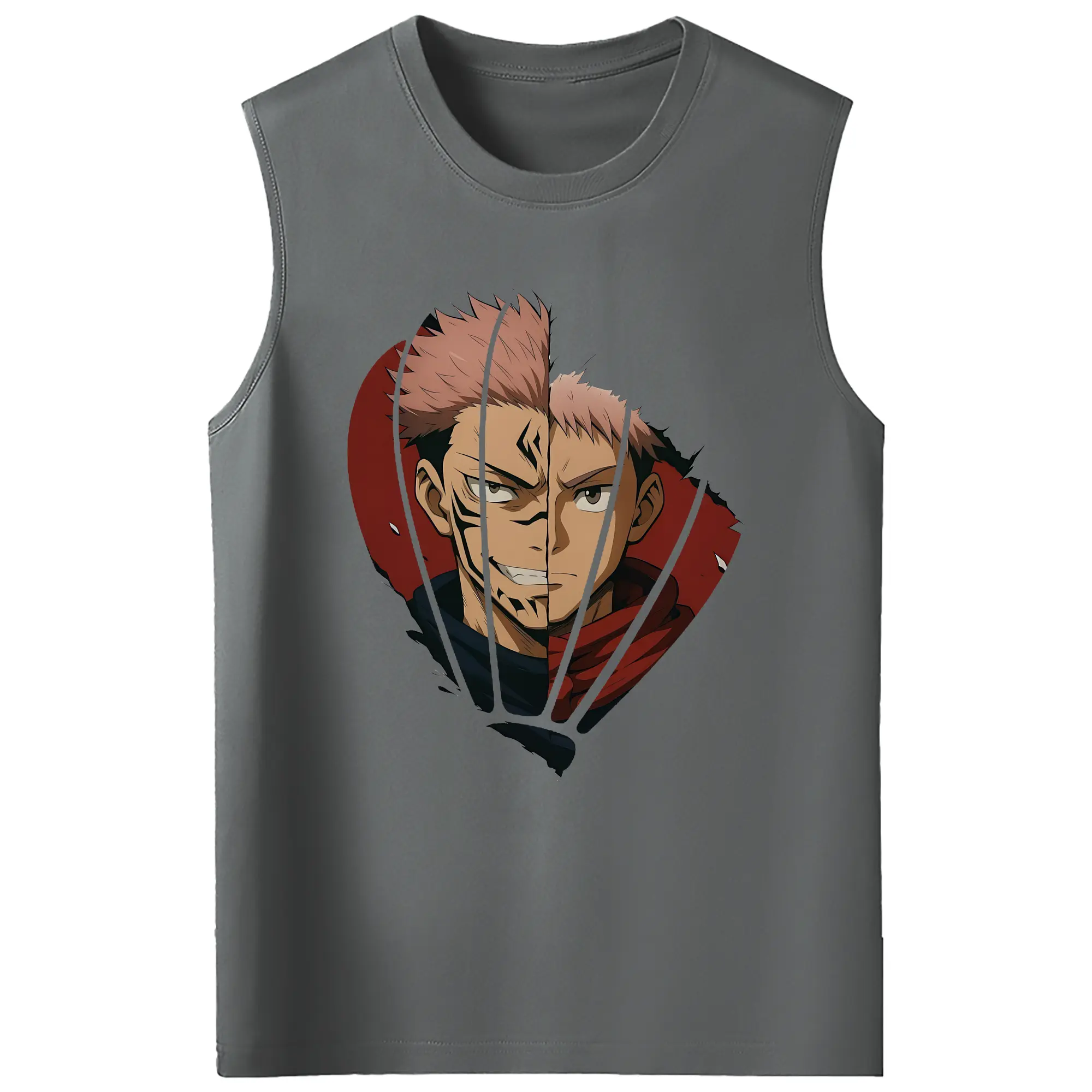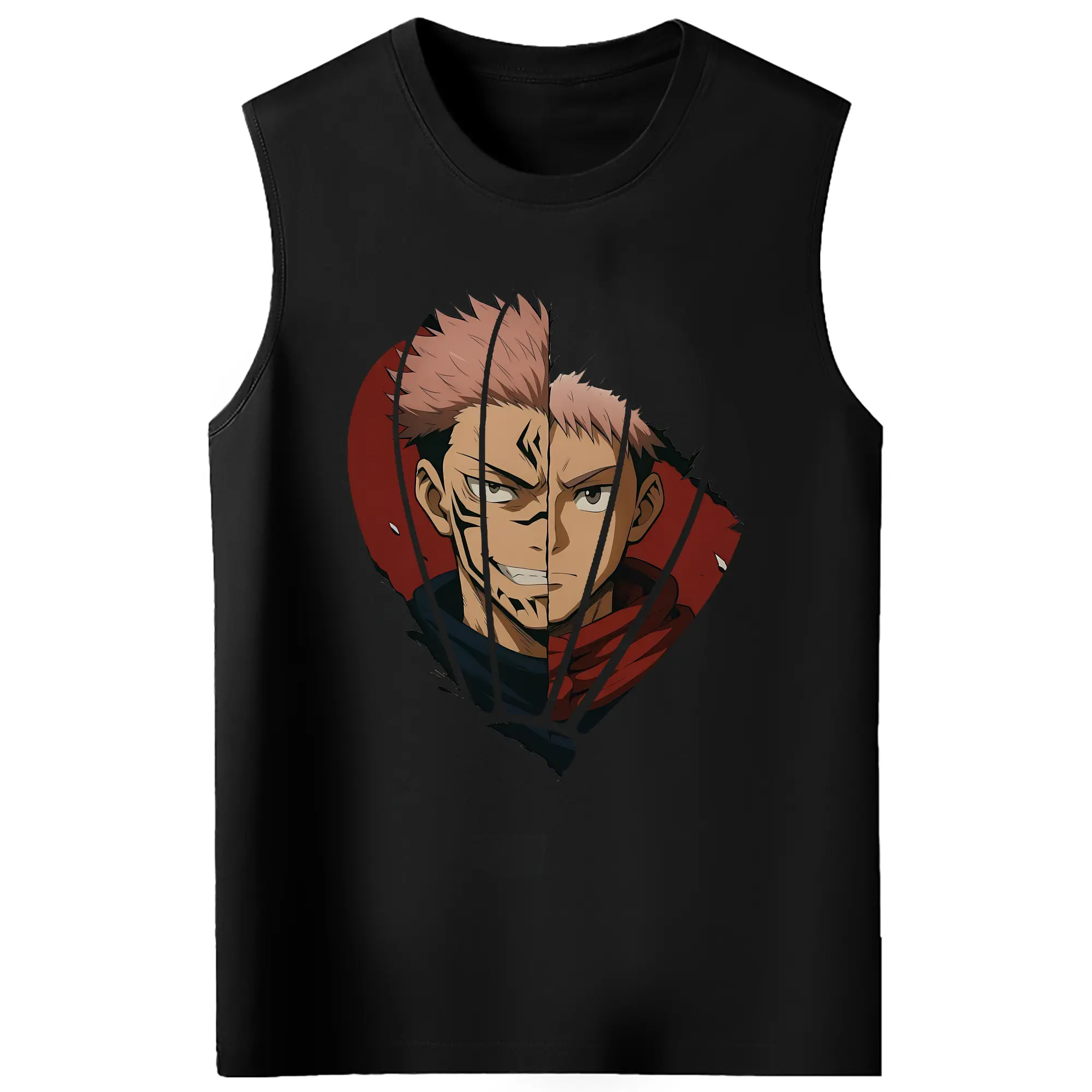 呪術廻戦 グッズ,両面宿儺 - コットン100% タンクトップ ・ フロントプリント ・ タイトフィット ・ 快適 通気性 ・ スポーツ カジュアル 散歩用