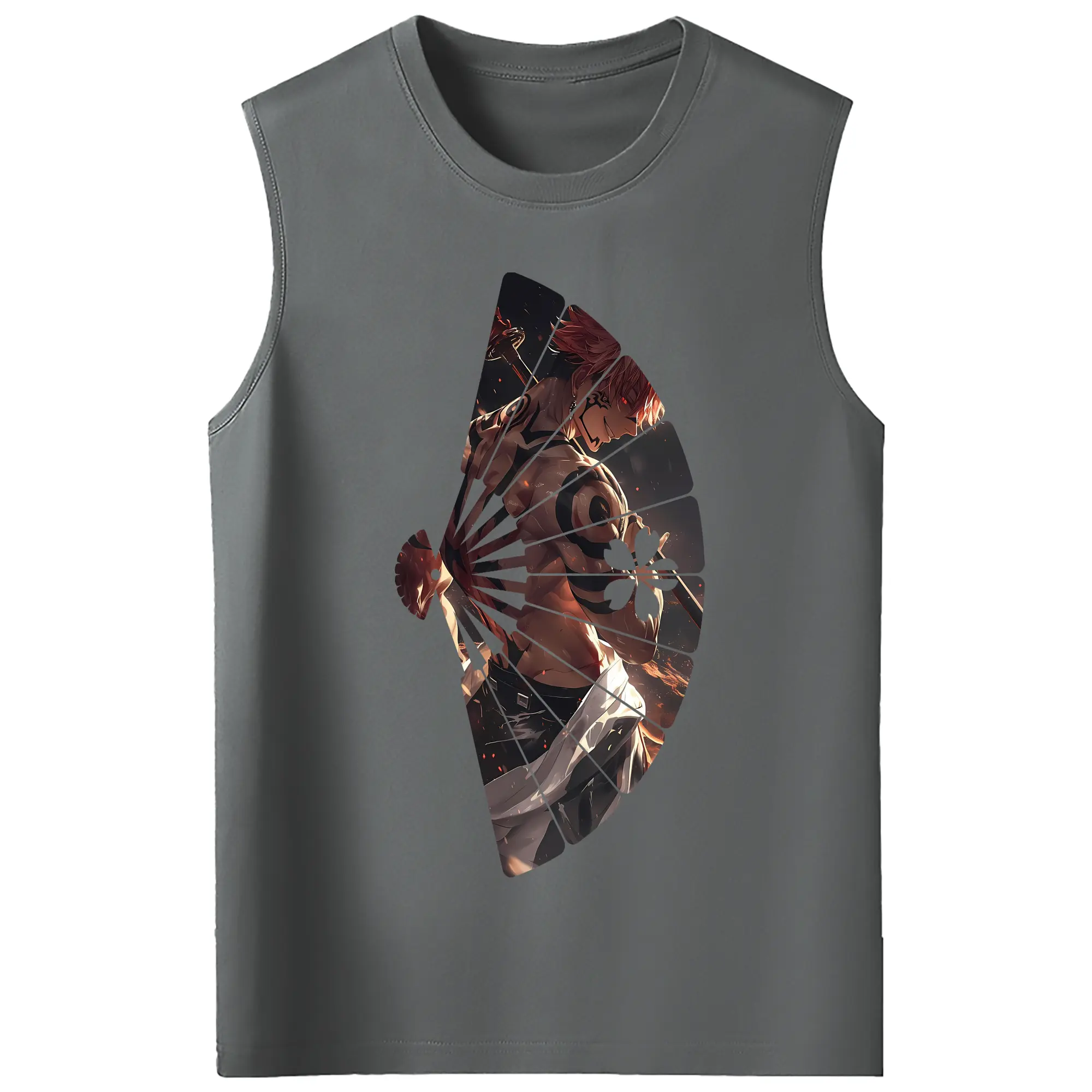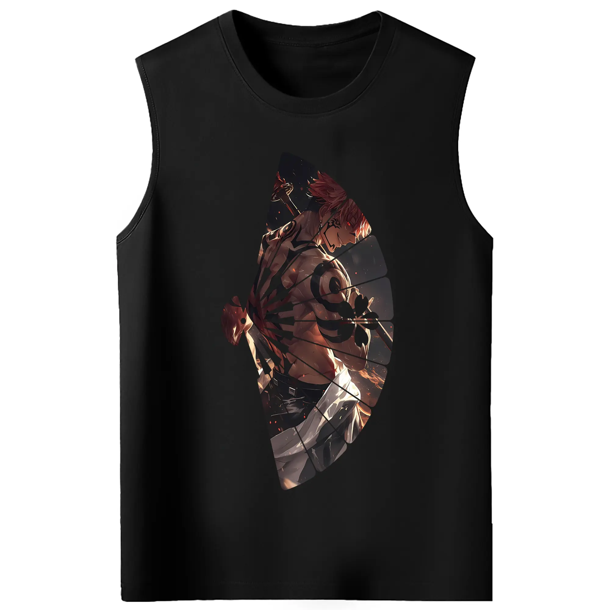 呪術廻戦 グッズ,両面宿儺 - コットン100% タンクトップ ・ フロントプリント ・ タイトフィット ・ 快適 通気性 ・ スポーツ カジュアル 散歩用